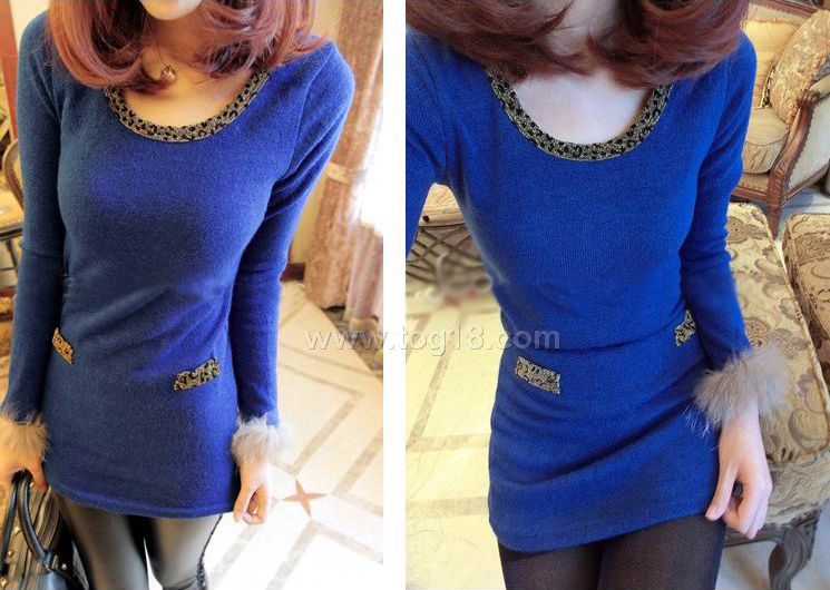 款式說明:款豹紋拼接連衣裙袖口毛裝飾連衣裙
