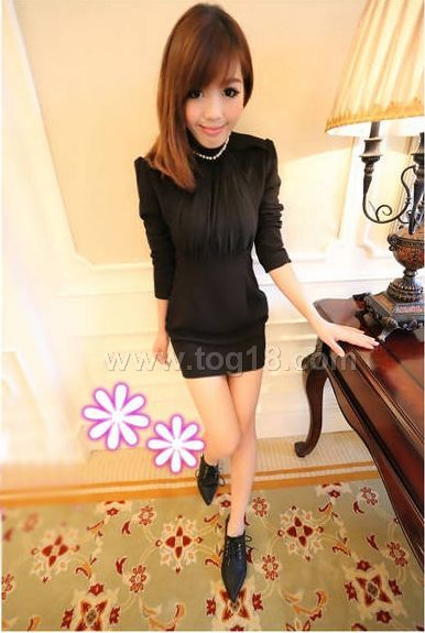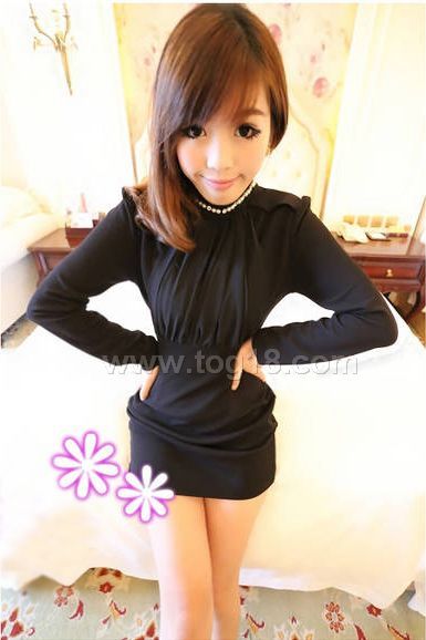 款式說明:新款高領釘珠連衣裙