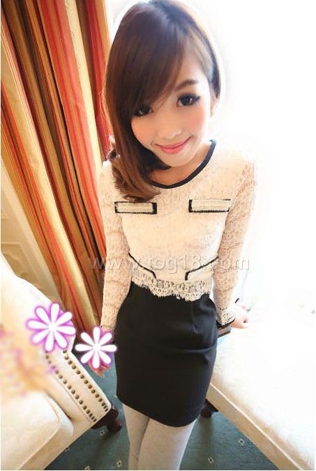 款式說明:款女裝爆款氣質款假口袋蕾絲修身超顯瘦連衣裙
