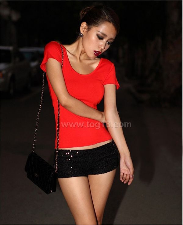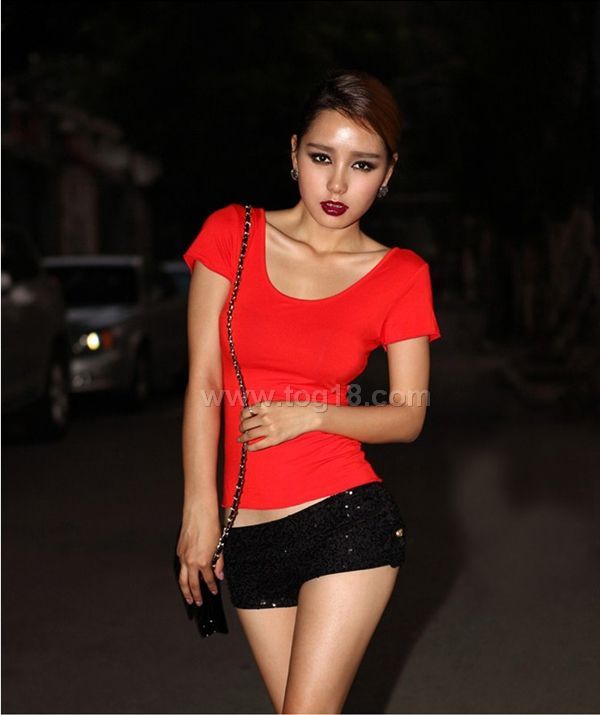 款式說明:新款 性感 夜店 百搭露背氣質純色短袖打底衫性