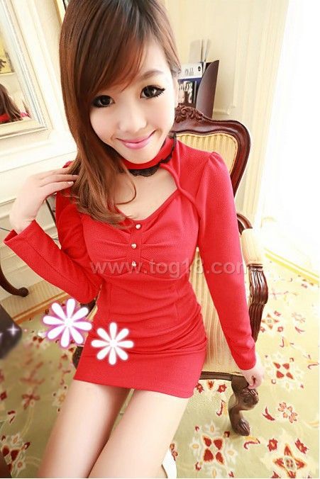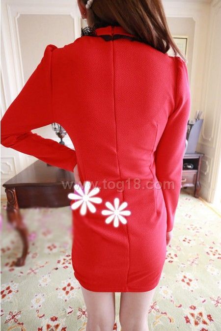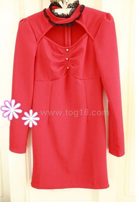 款式說明:小高領裹胸式高腰包臀連衣裙