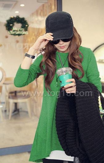 新款韩版女装宽松潮大码长款打底衫修身长袖T恤