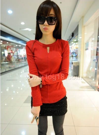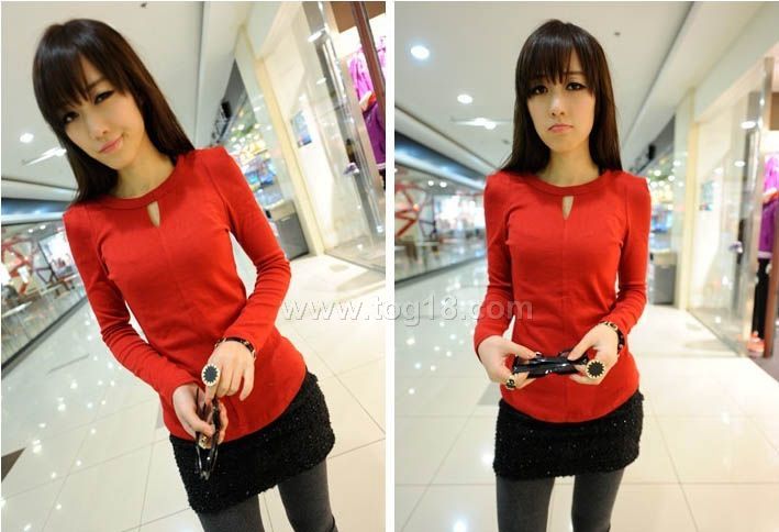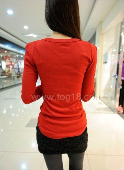 款式說明:新款女裝打底衫 設計款修身長袖t恤