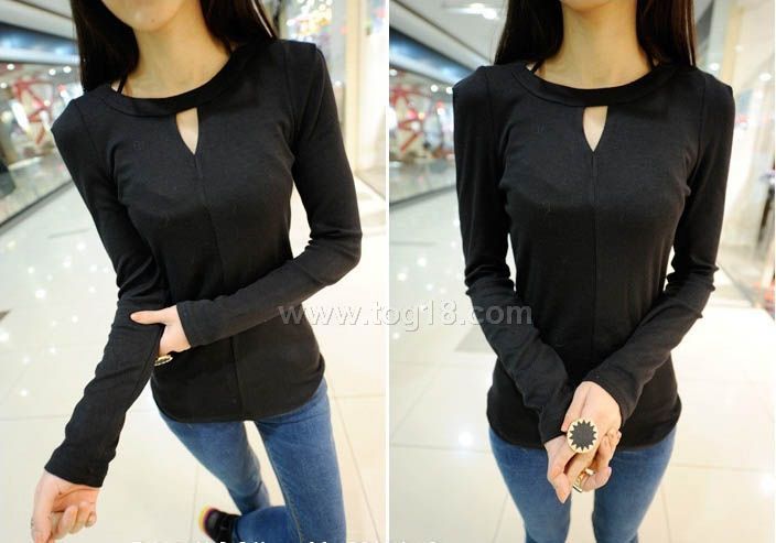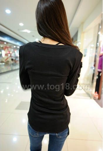 款式說明:新款女裝打底衫 設計款修身長袖t恤