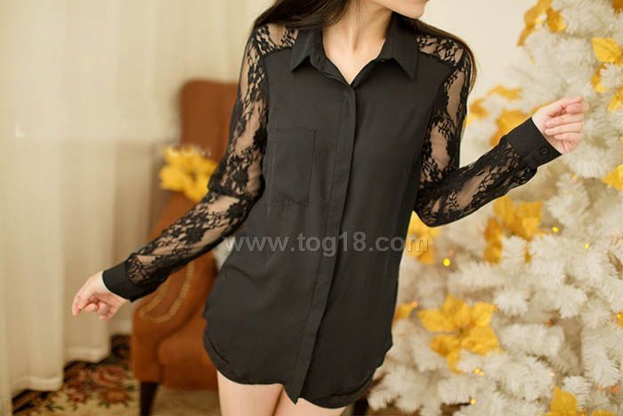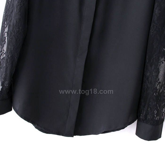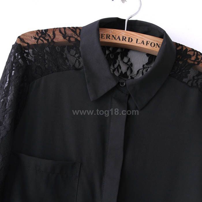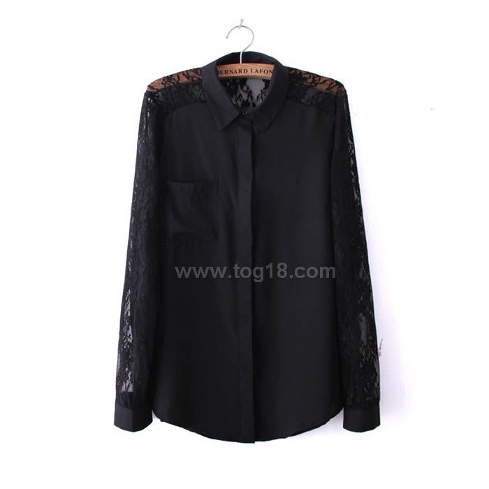 款式說明:2013春季新款雪紡蕾絲拼接長袖襯衫