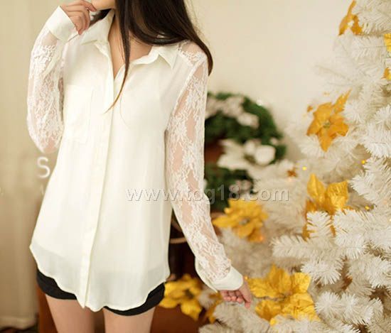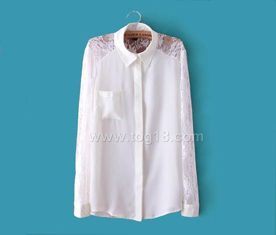款式說明:2013春季新款雪紡蕾絲拼接長袖襯衫