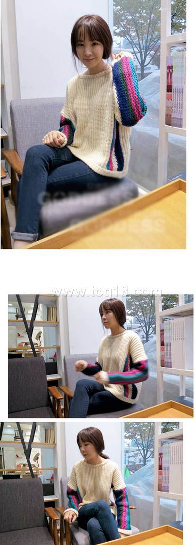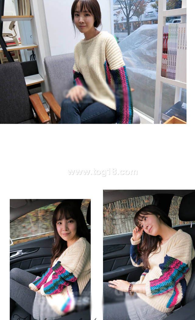 款式說明:新款名媛彩線袖子拼接針織毛衣