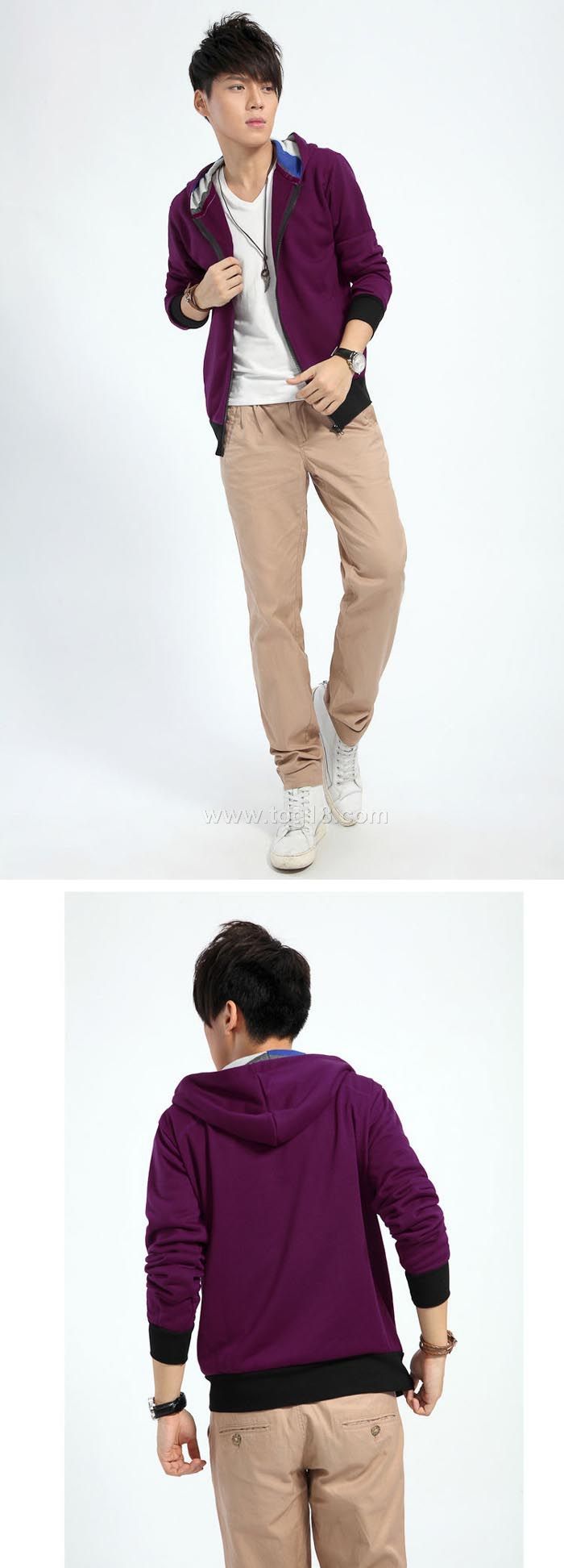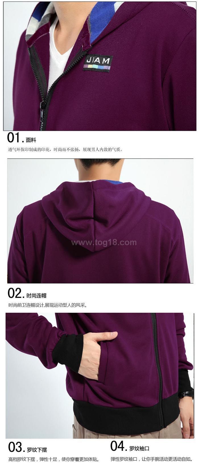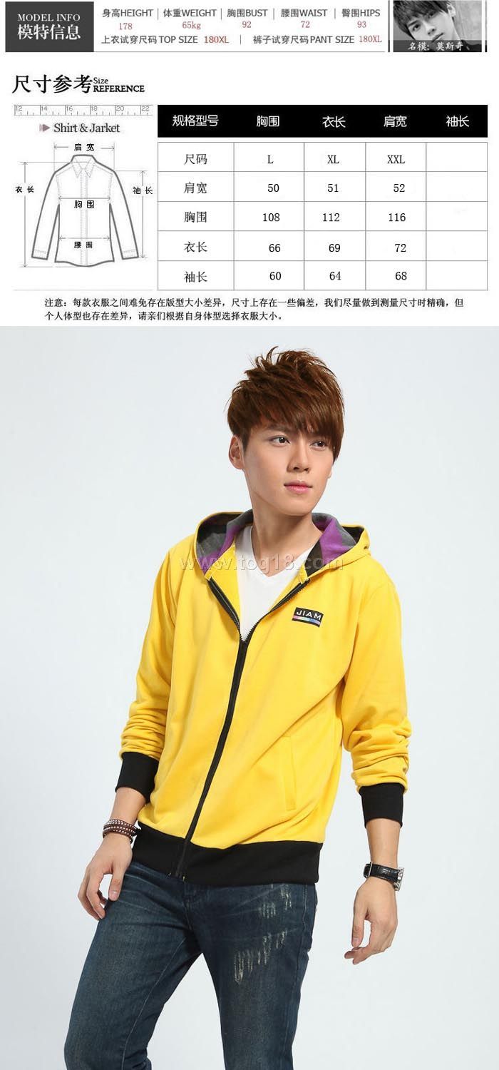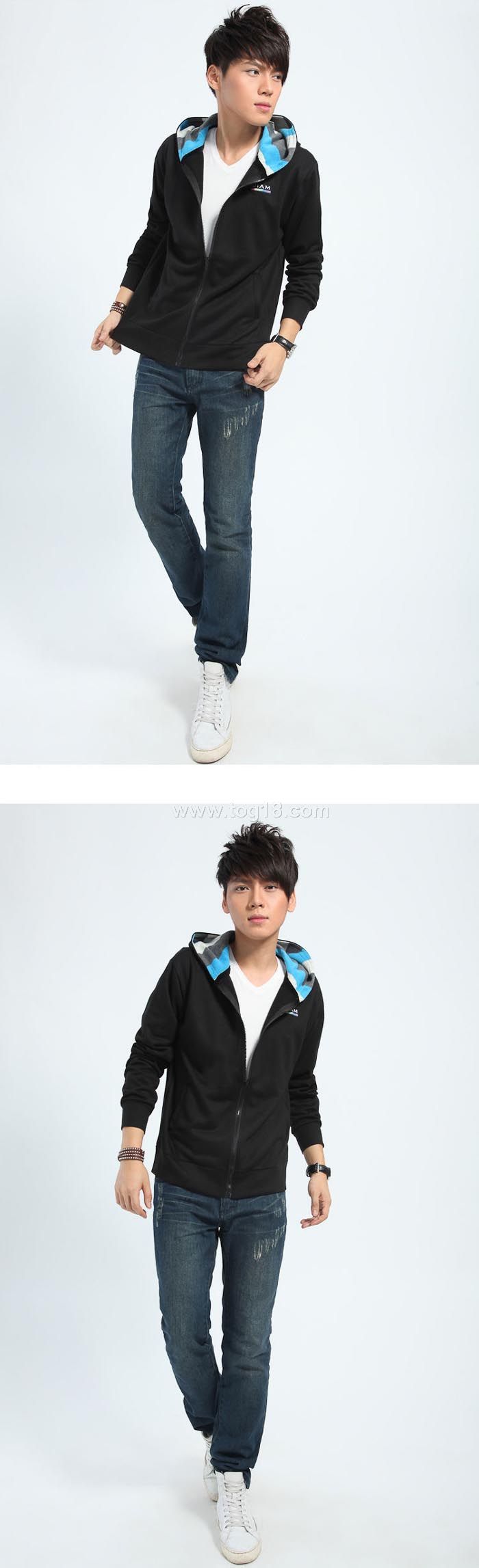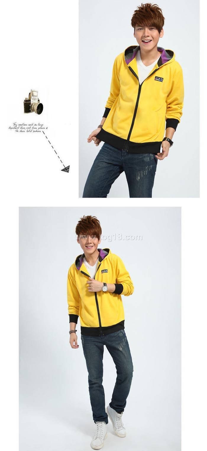 款式說明:時尚青年男士衛衣開衫條紋帽子字母拼接