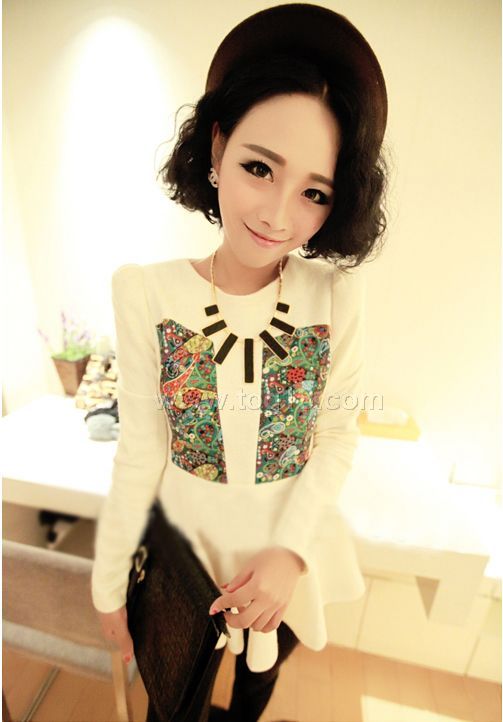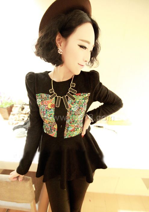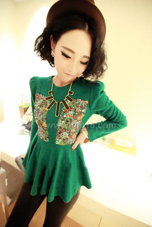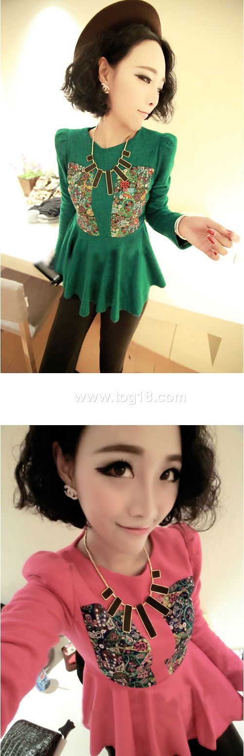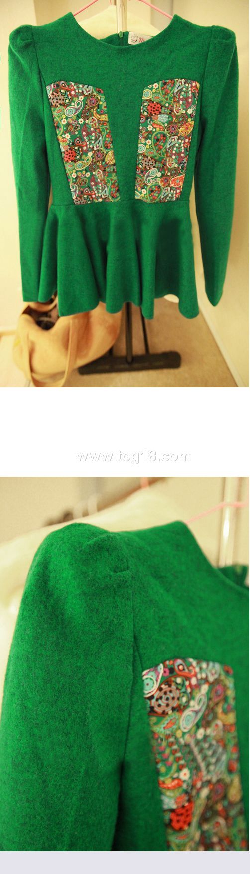 款式說明:2013初春最新裝 下擺碎花呢子上衣小洋裝