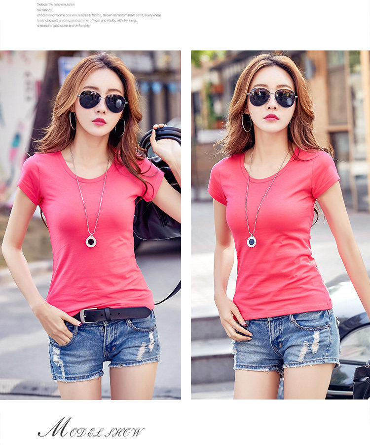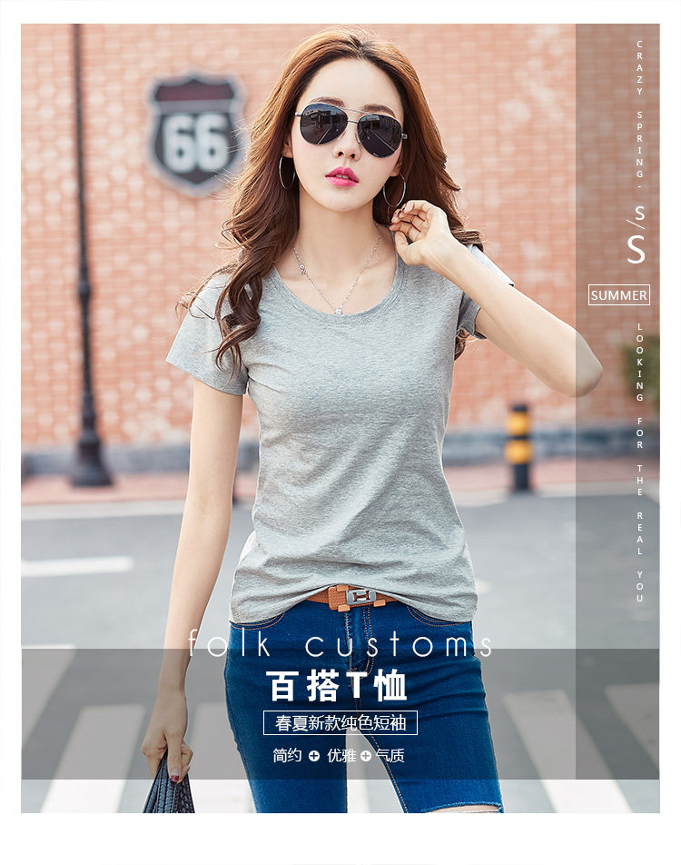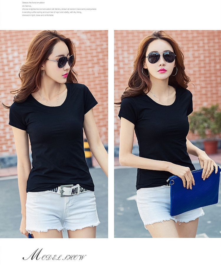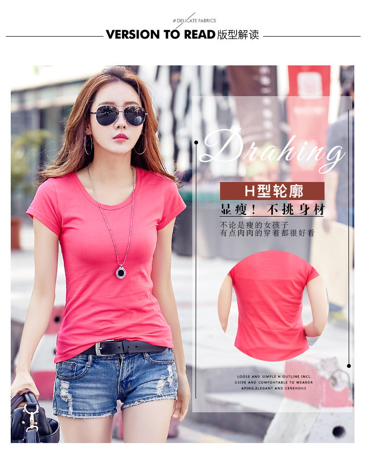 >> 實拍#2018夏裝新款韓版女裝修身上衣純色百搭純棉短袖T恤女夏