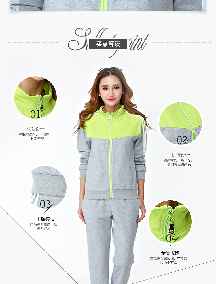 >> 實拍#2018春秋新款情侶休閒運動套裝立領長袖衛衣套裝大碼女