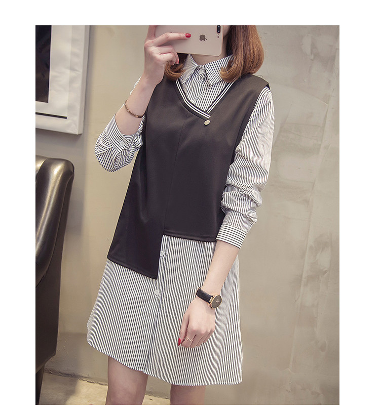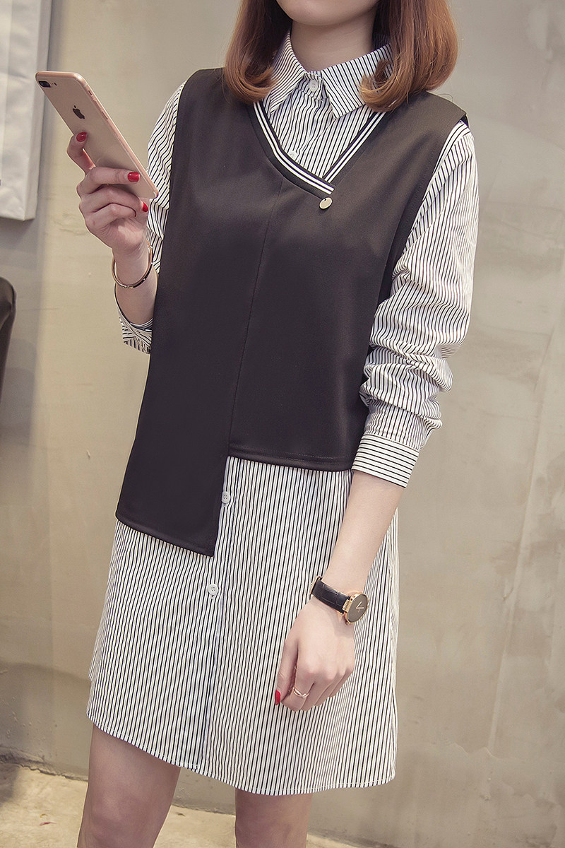 >> 實拍 大碼女裝 胖mm加肥加大2018春新款不規則兩件套襯衣