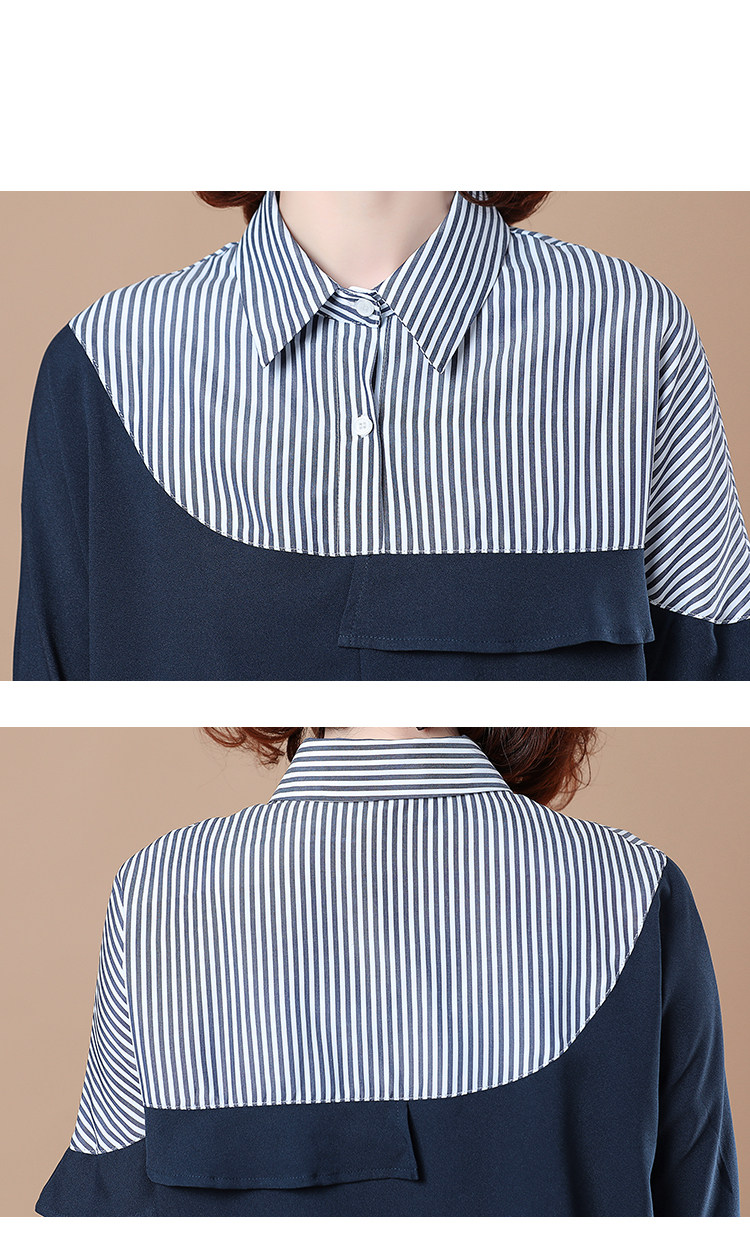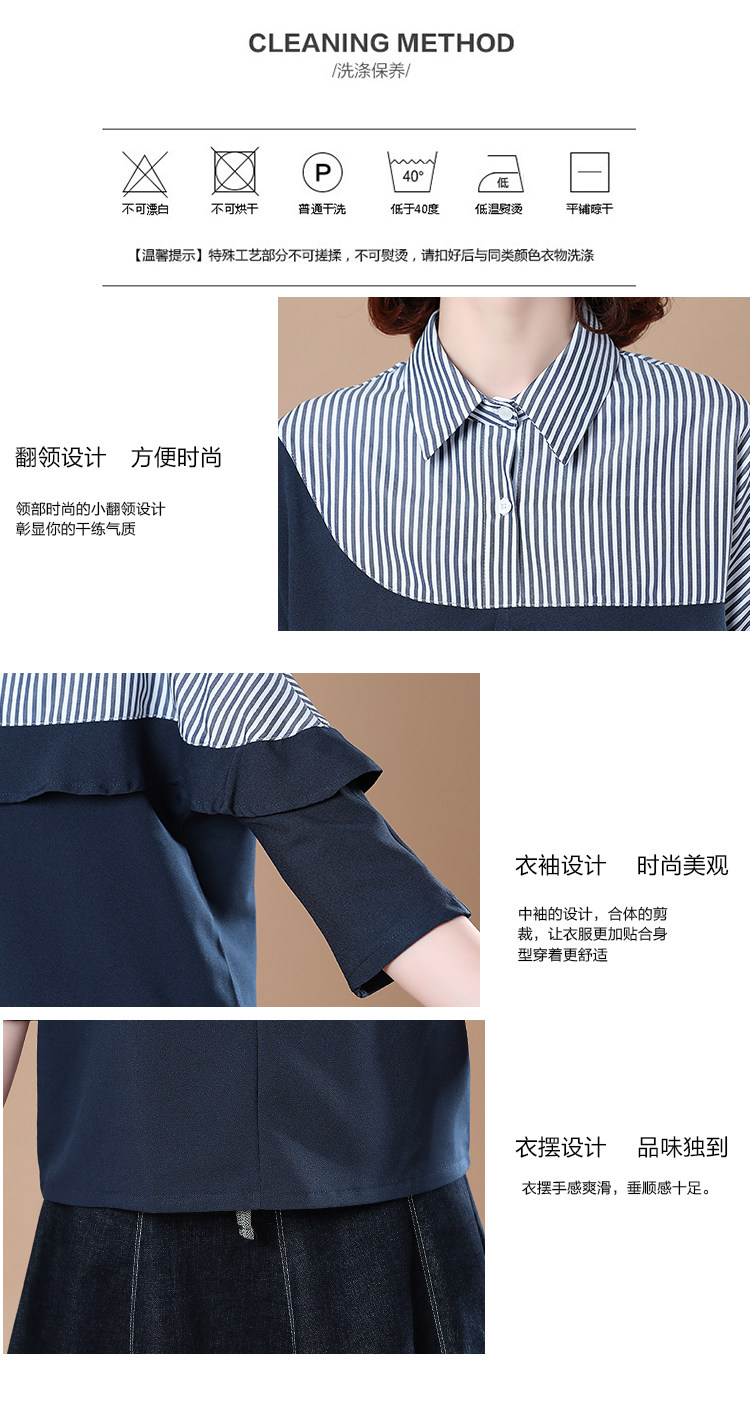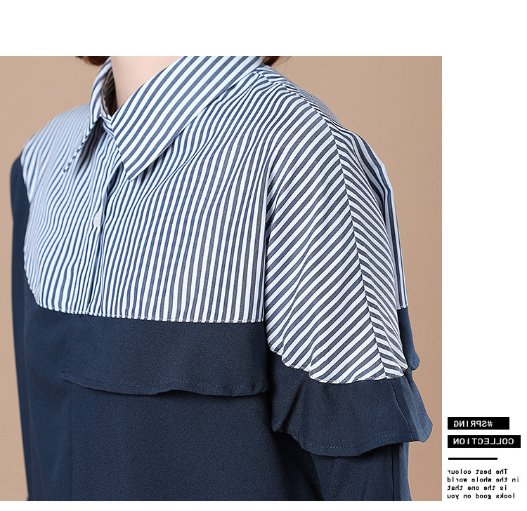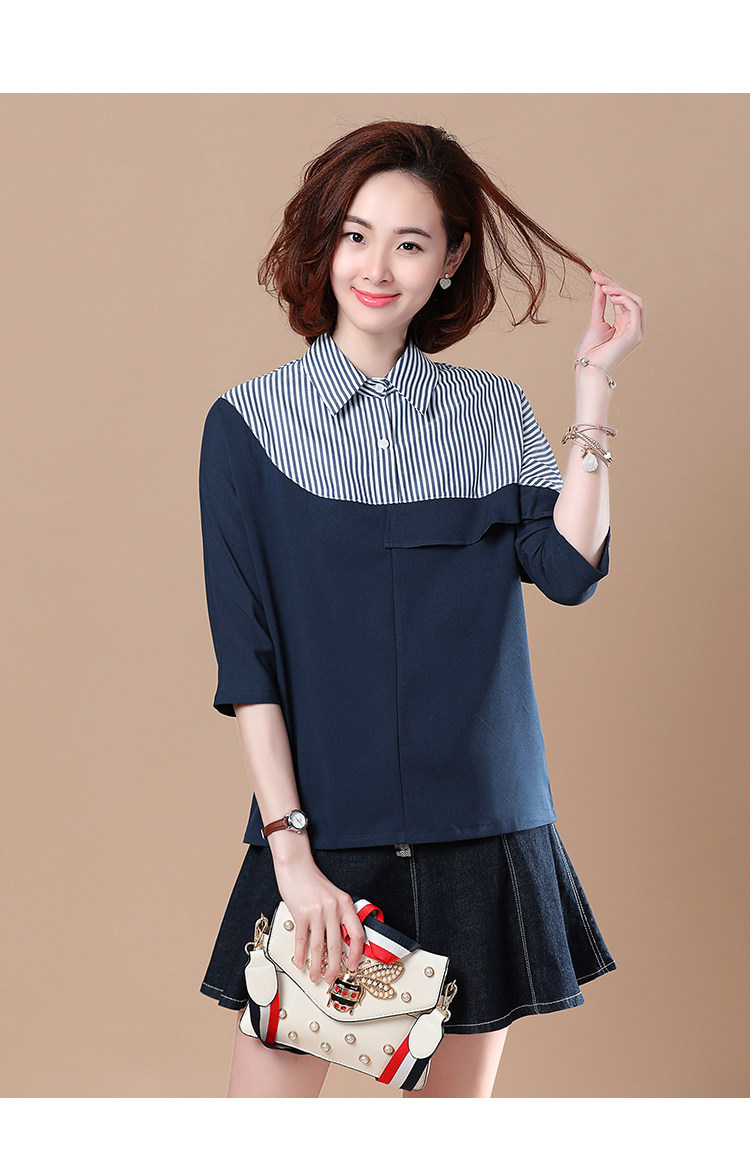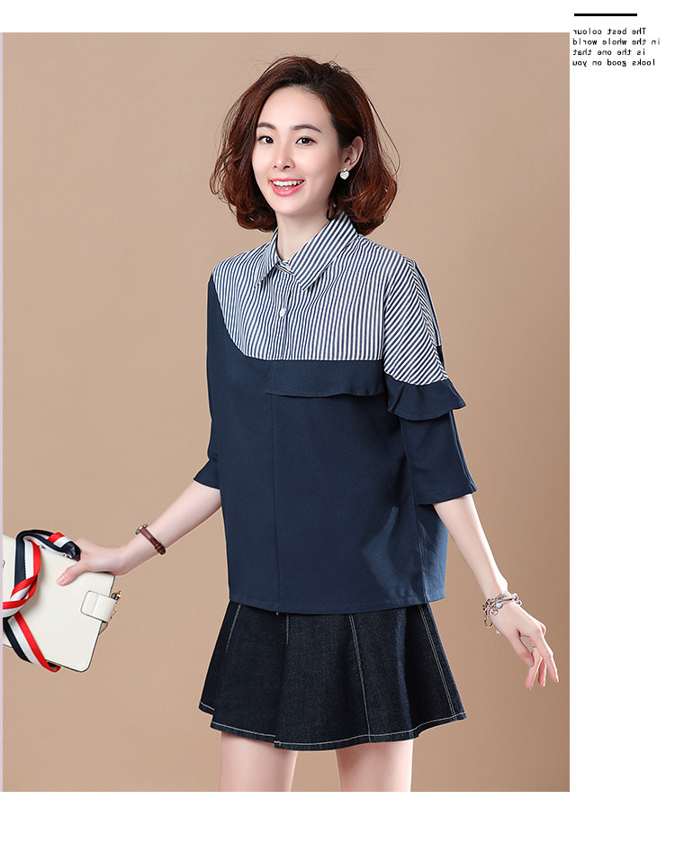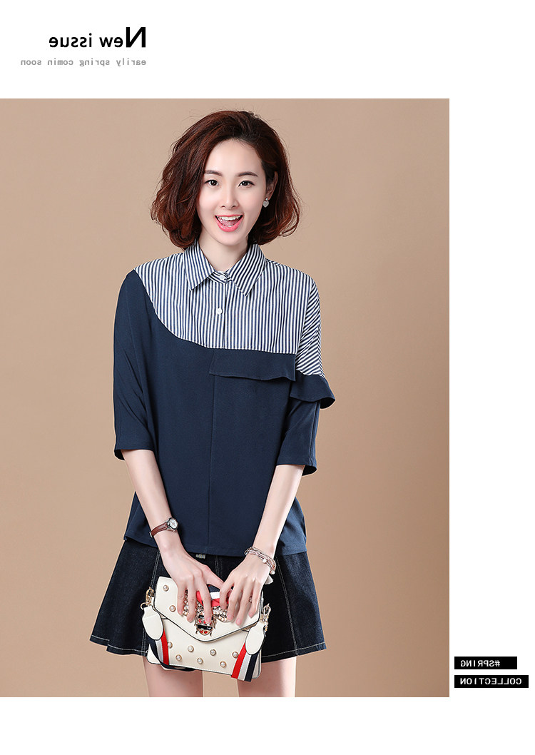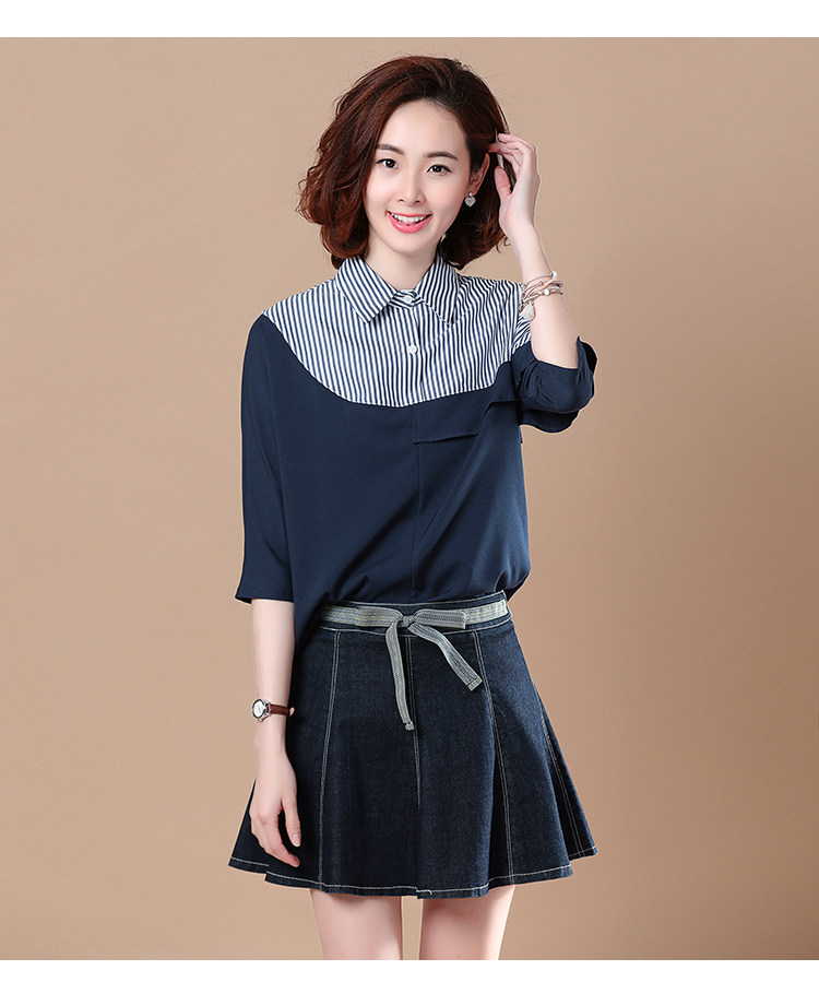 >> 實拍現貨胖mm大碼女裝夏季新款條紋拼接雪紡襯衣短袖t恤