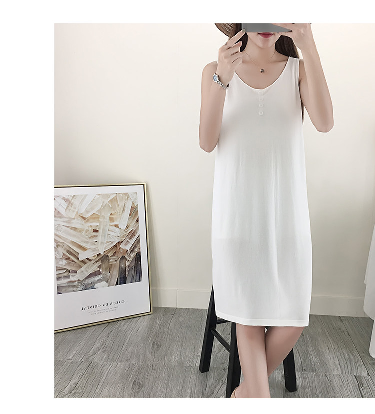 >> 大碼女裝夏季加大加肥胖MM針織冰絲薄款扣子背心連衣裙