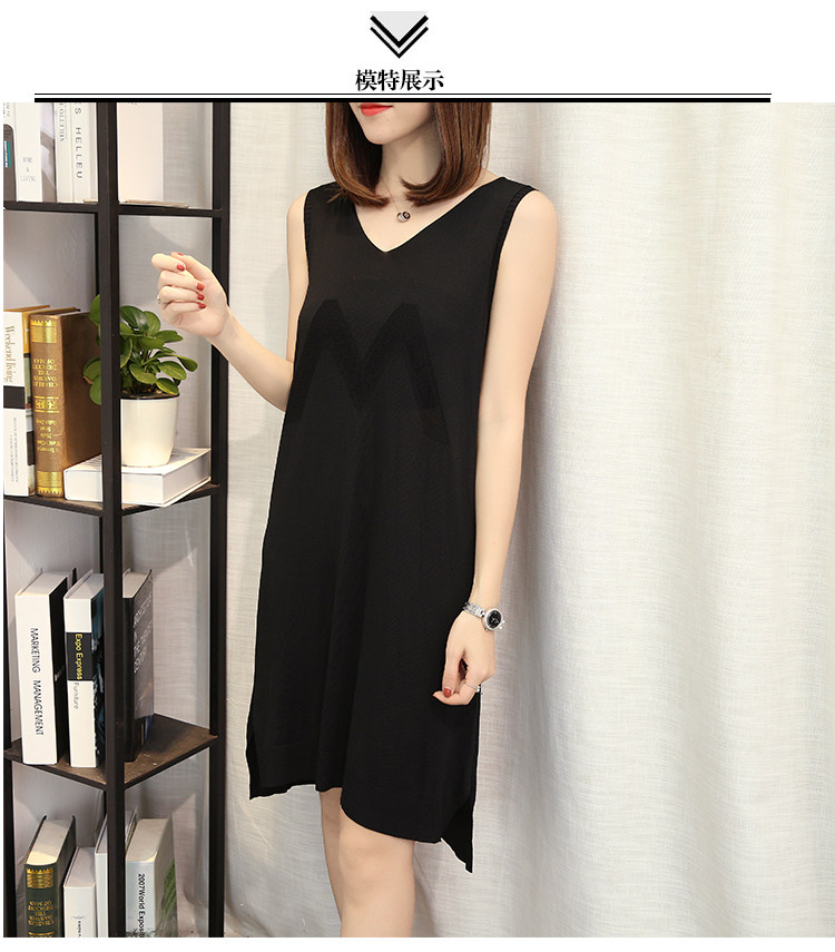 >> 大碼女夏季加大加肥胖MM針織冰絲純色中長款背心連衣裙孕婦裝