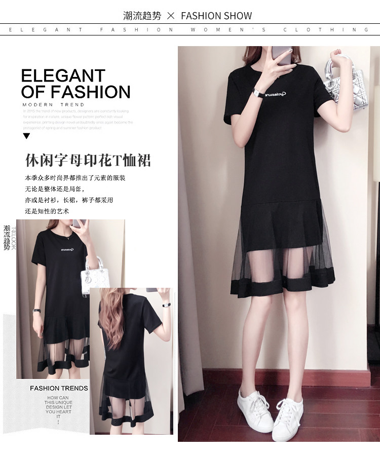 >> 實拍大碼女裝加肥加大寬鬆顯瘦時尚燙畫減齡顯瘦連衣裙