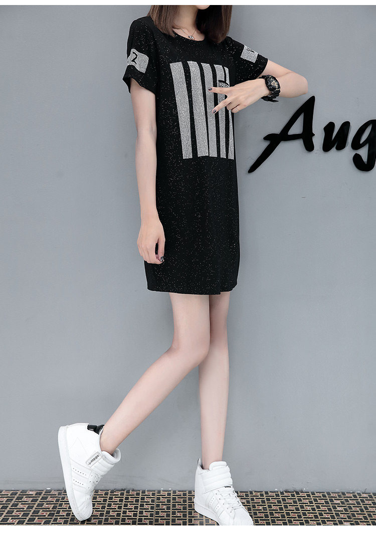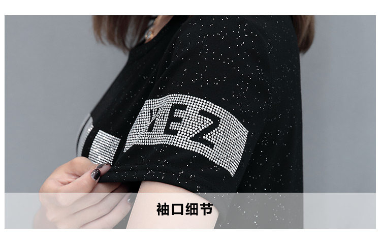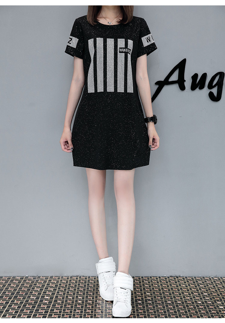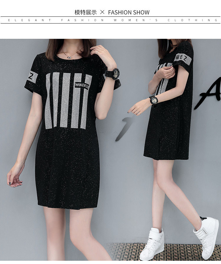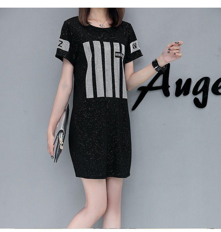 >> 實拍 大碼女裝 2018新款加肥加大寬鬆顯瘦珠光面料燙鑽連衣裙