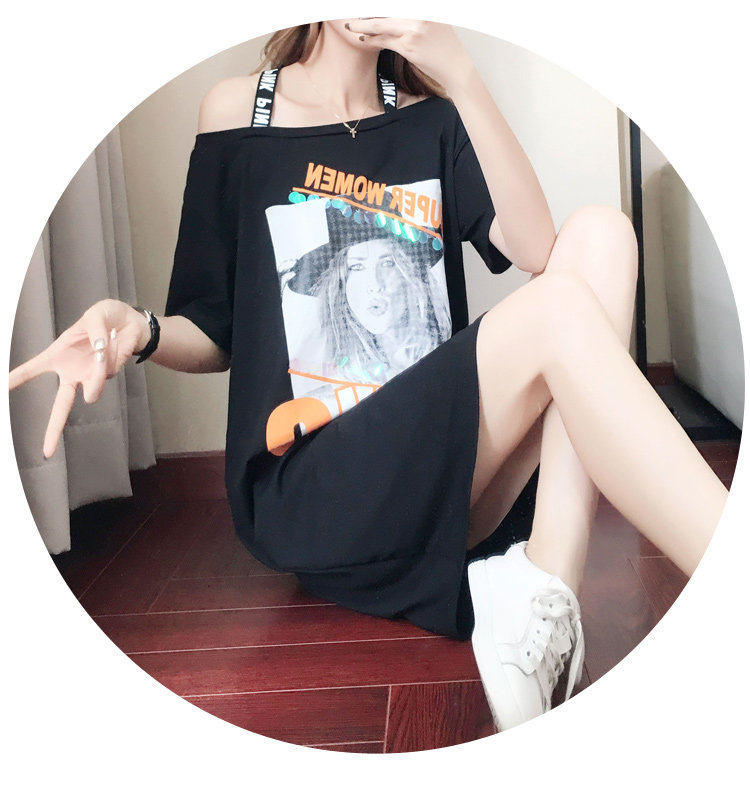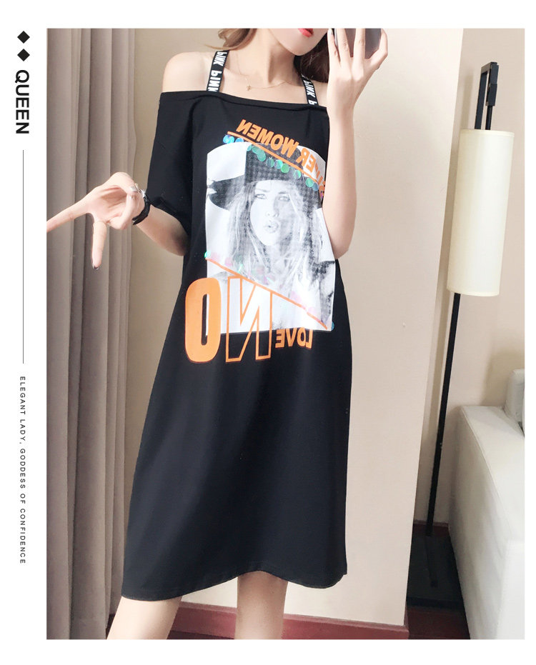 >> 實拍大碼女裝胖mm加肥加大寬鬆時尚減齡露肩長款連衣裙