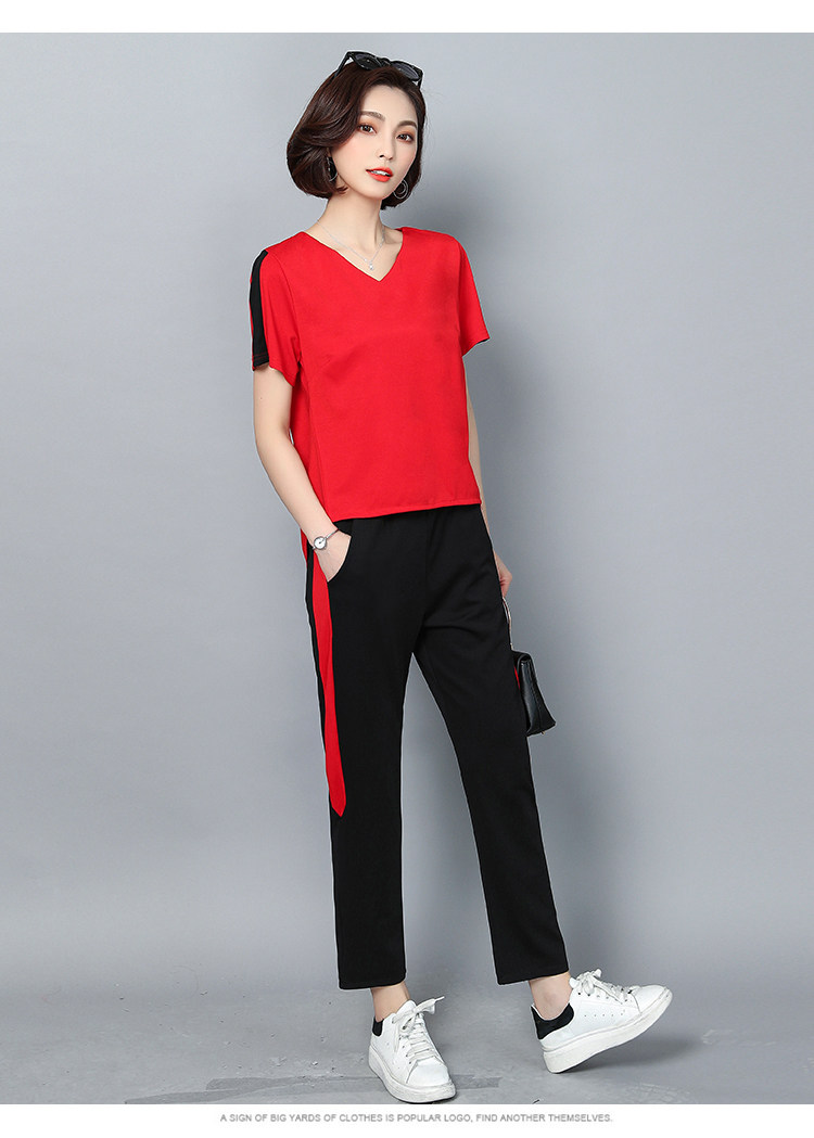 >> 實拍2018胖MM加肥加大顯瘦拼色時尚運動套裝