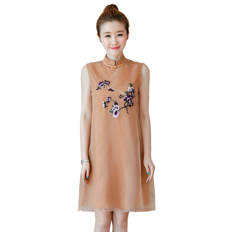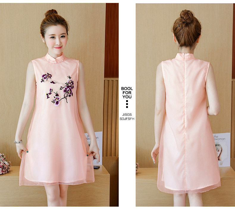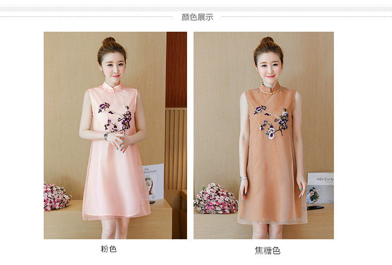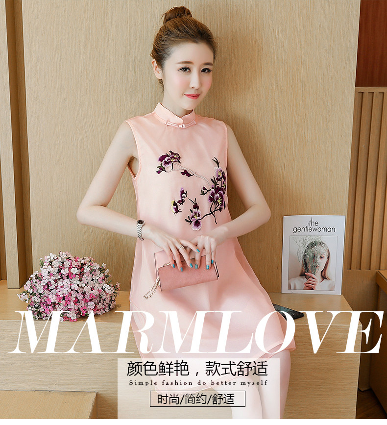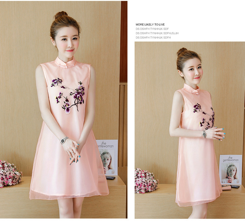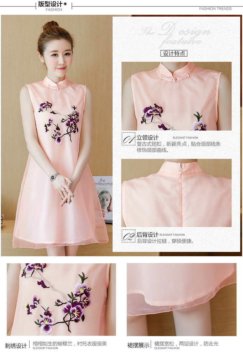 >> 實拍夏裝民族風改良版旗袍新款少女復古刺繡中國風無袖連衣裙