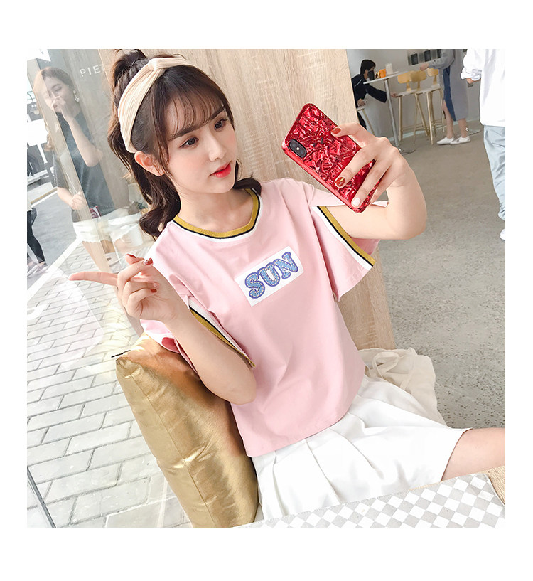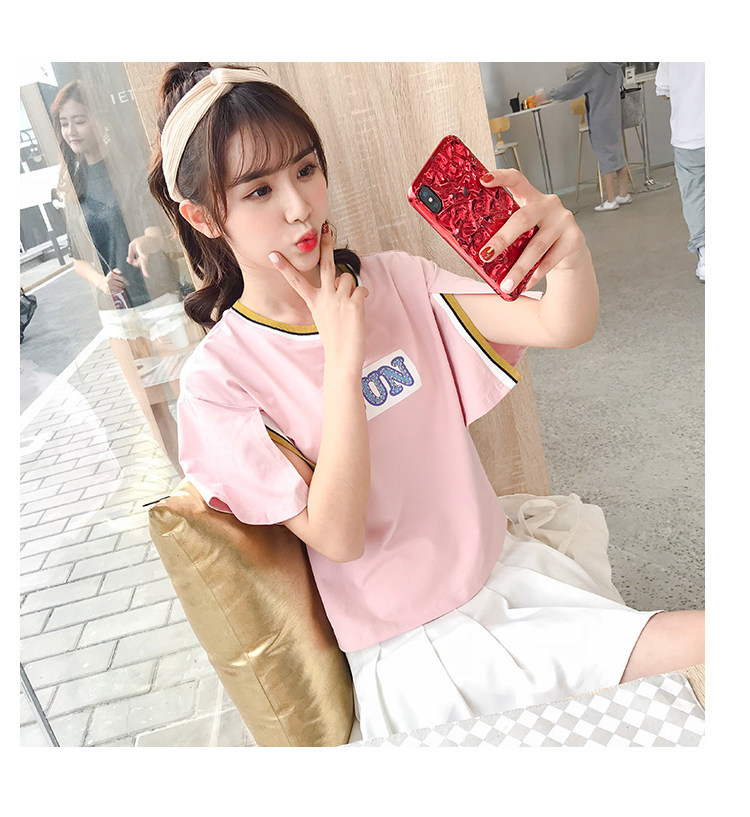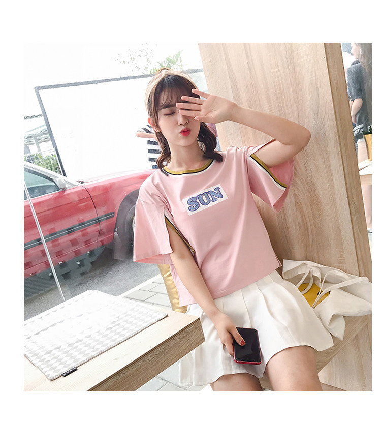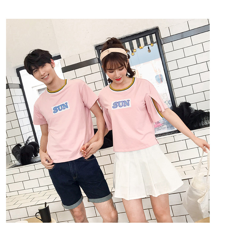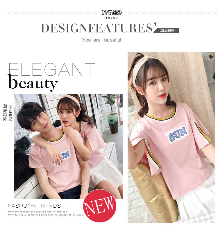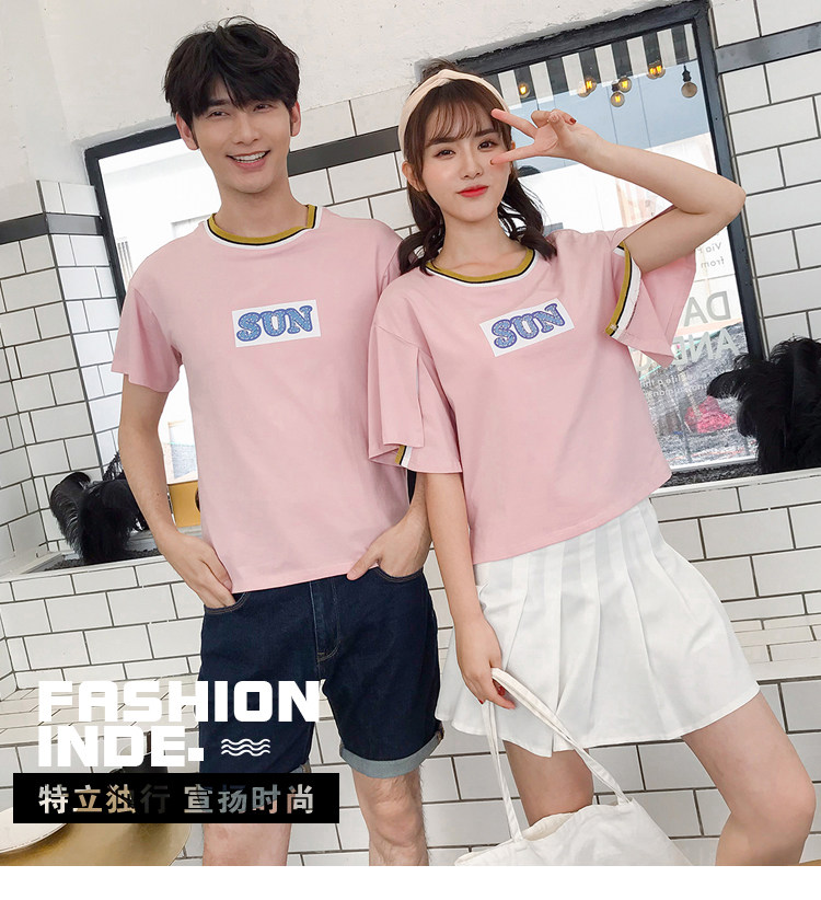 >> 實拍qlz情侶裝夏裝飛飛袖2018新款短袖T恤韓范氣質半袖寬鬆