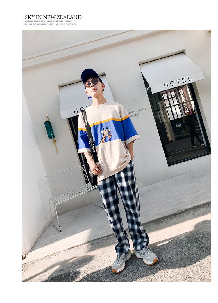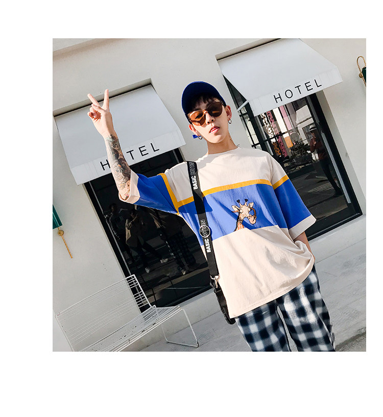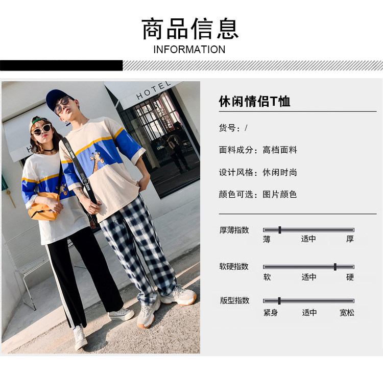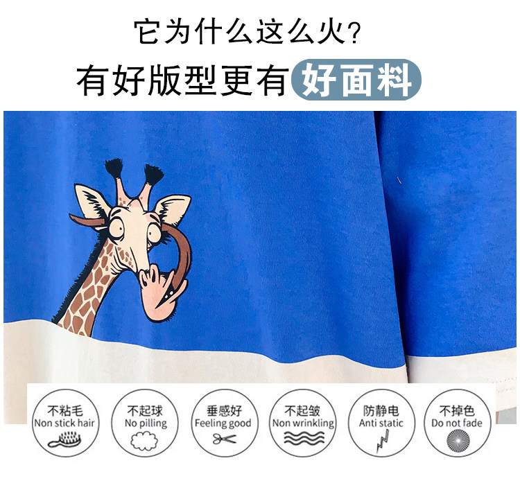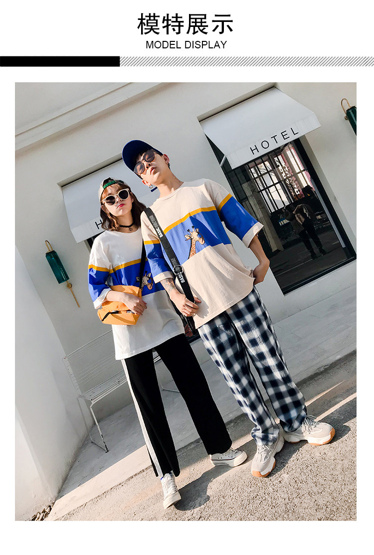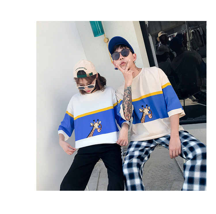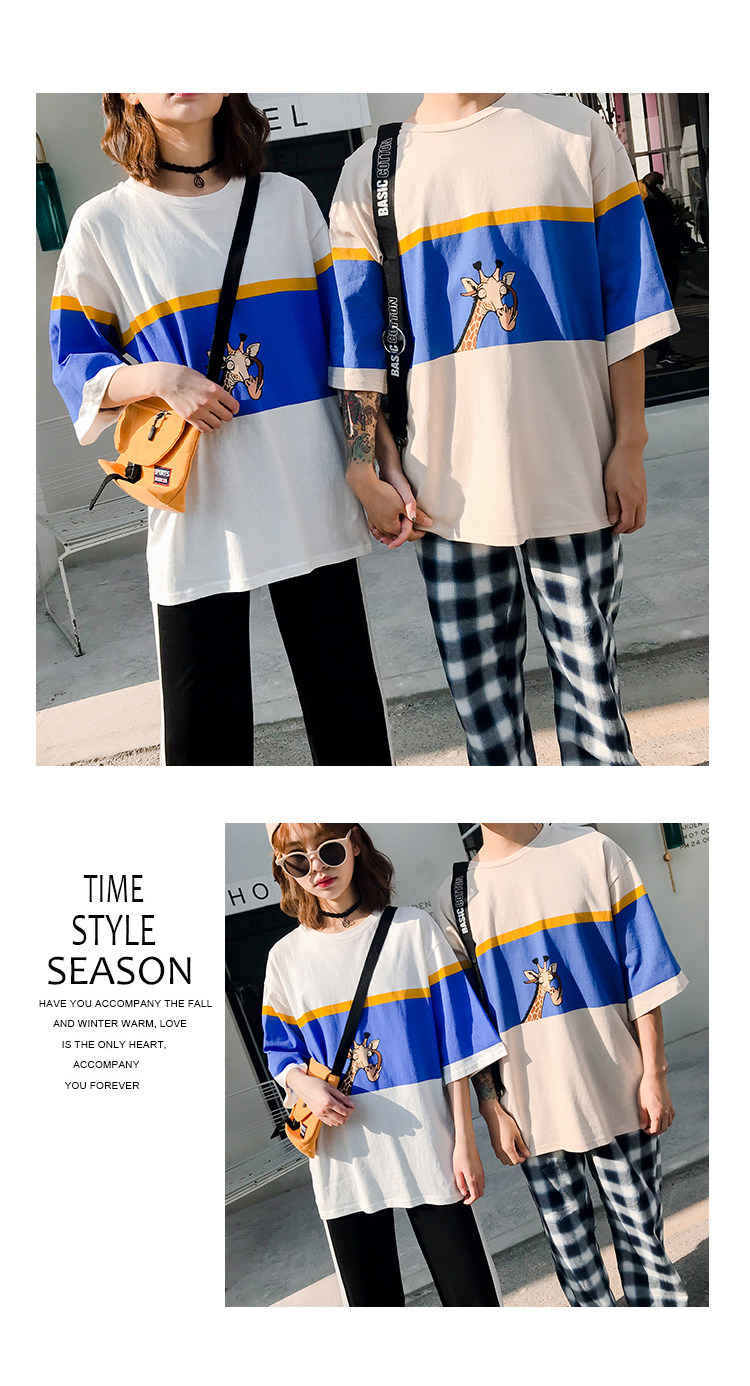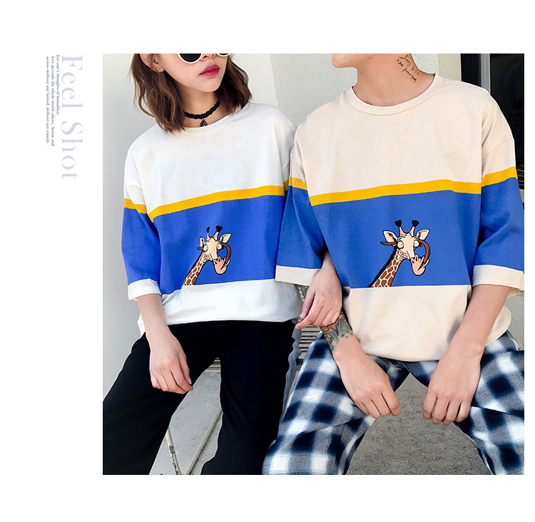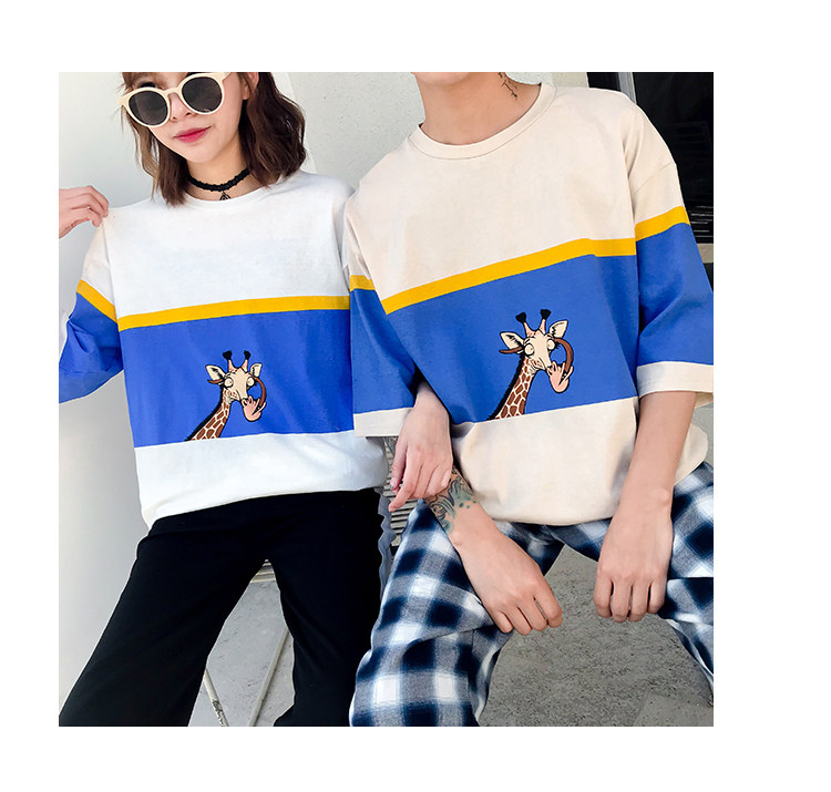 >> 實拍2018新款情侶裝夏裝氣質長頸鹿印花短袖T恤韓學生女上衣