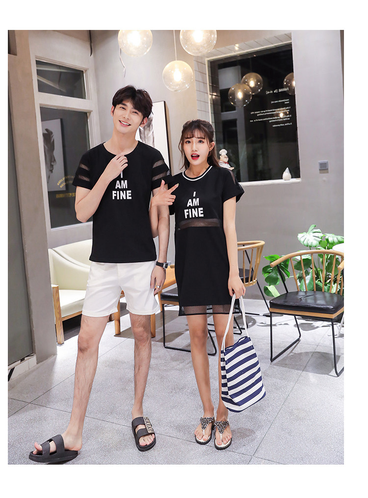 >> 實拍情侶裝夏裝2018新款韓版短袖t恤半袖寬鬆顯瘦女連衣裙潮
