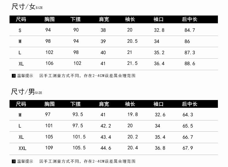 · 商品尺碼:
