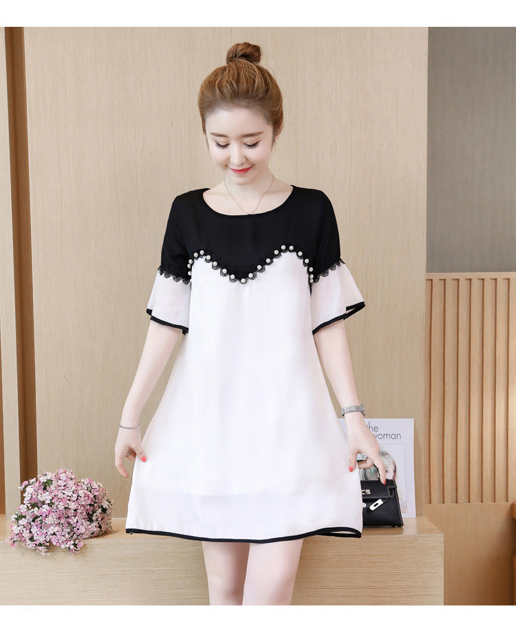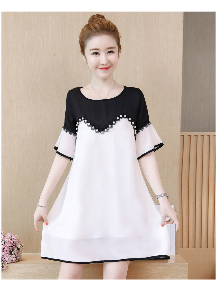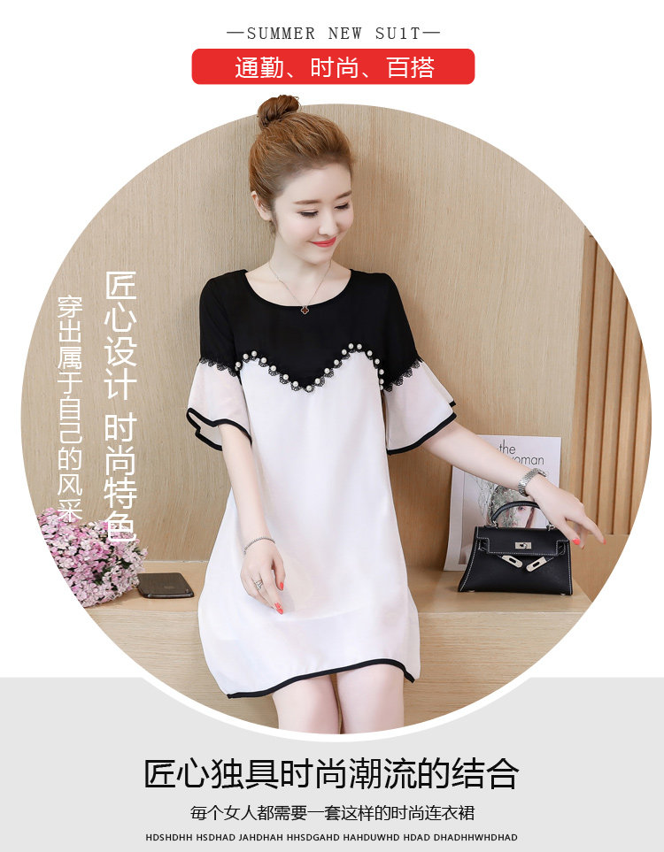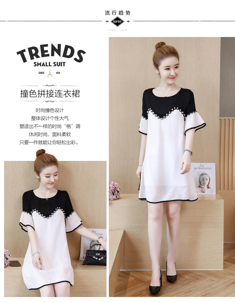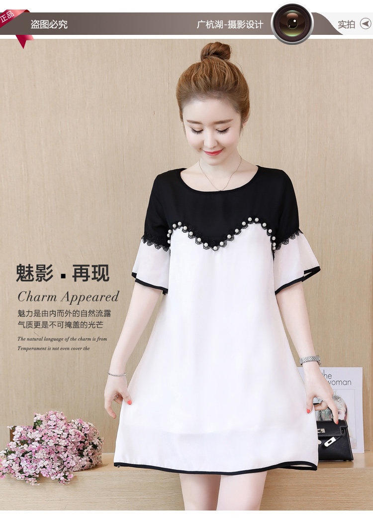 >> 實拍大碼女裝200斤胖mm雪紡連衣裙胖仙女短袖顯瘦藏肉減齡裙子夏