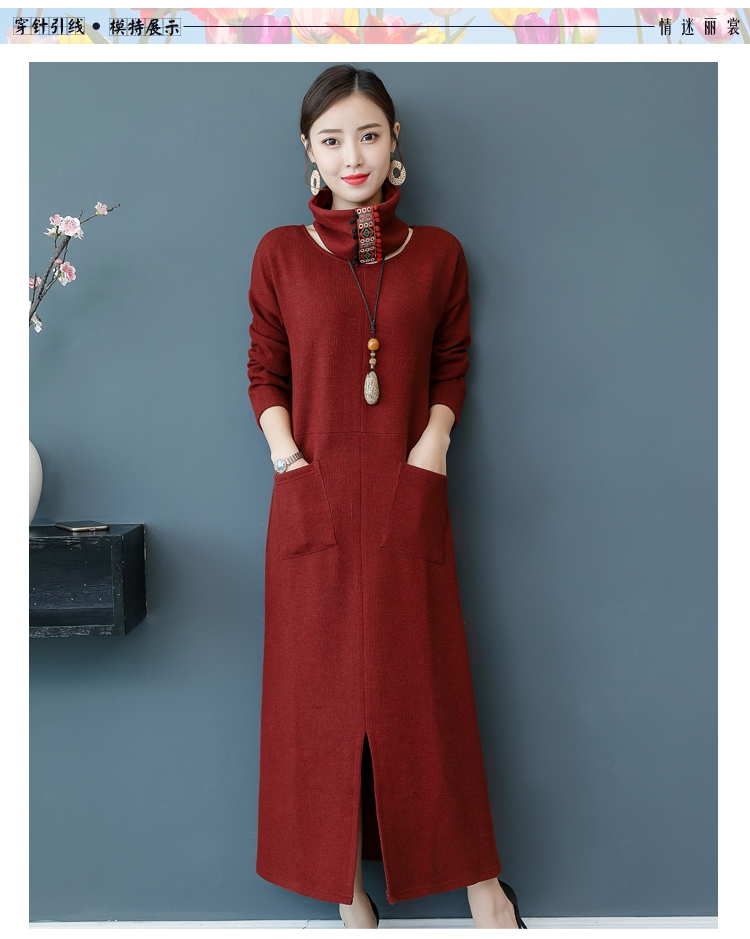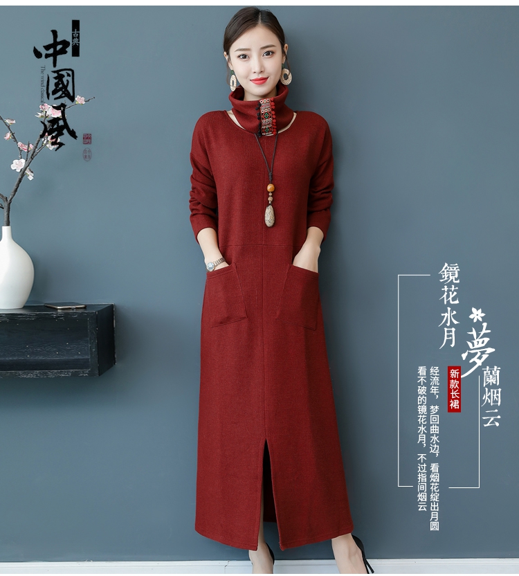>> 原創設計女裝長款針織連衣裙2018秋冬款民族風打底裙女
