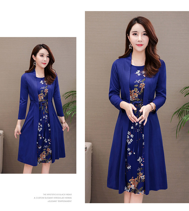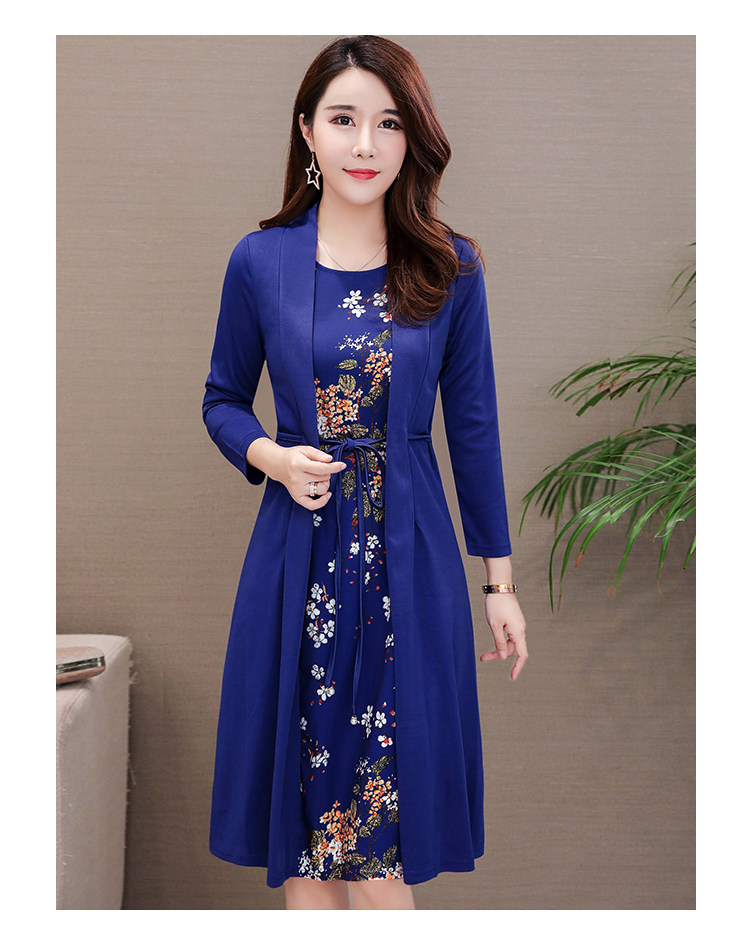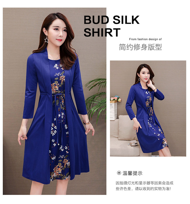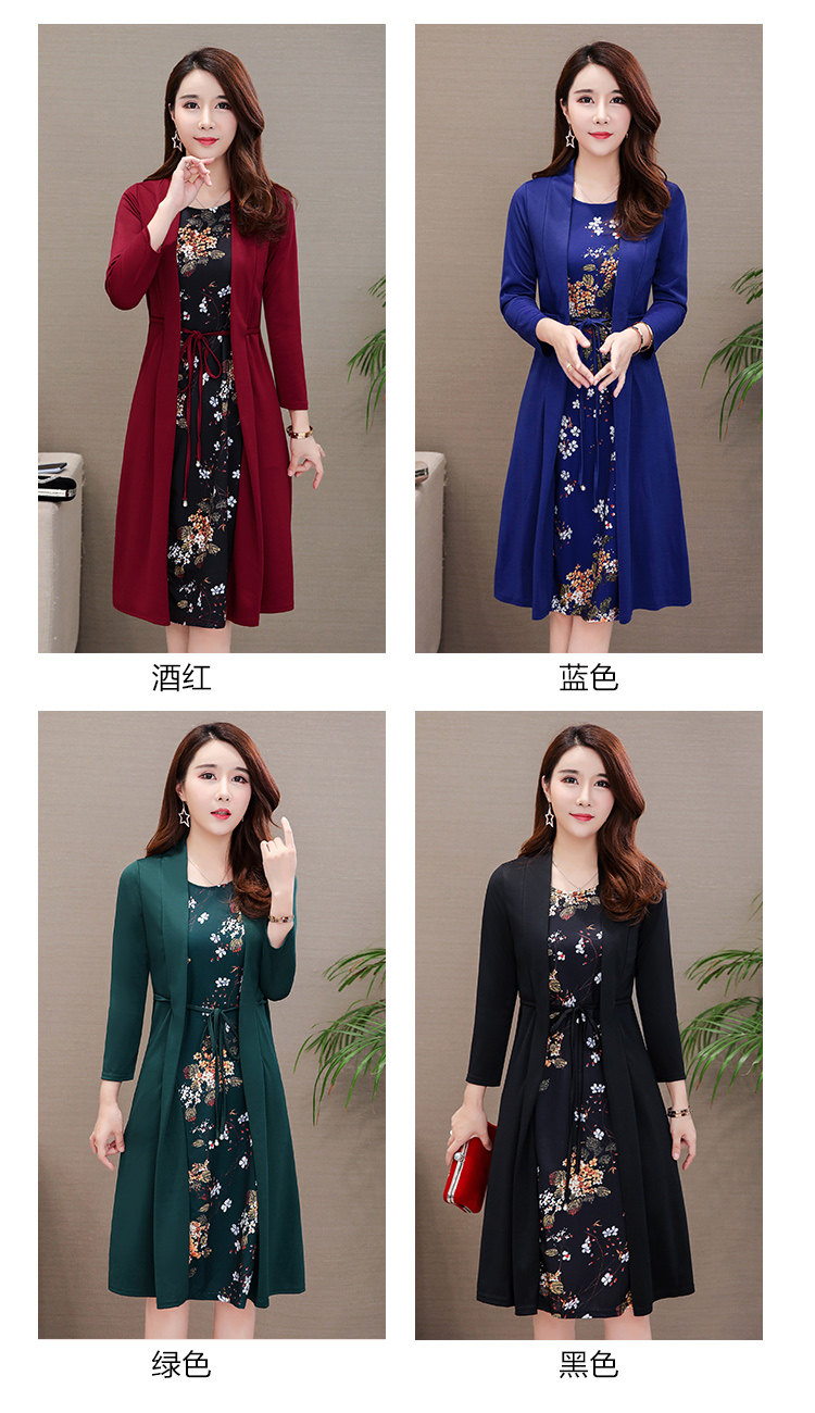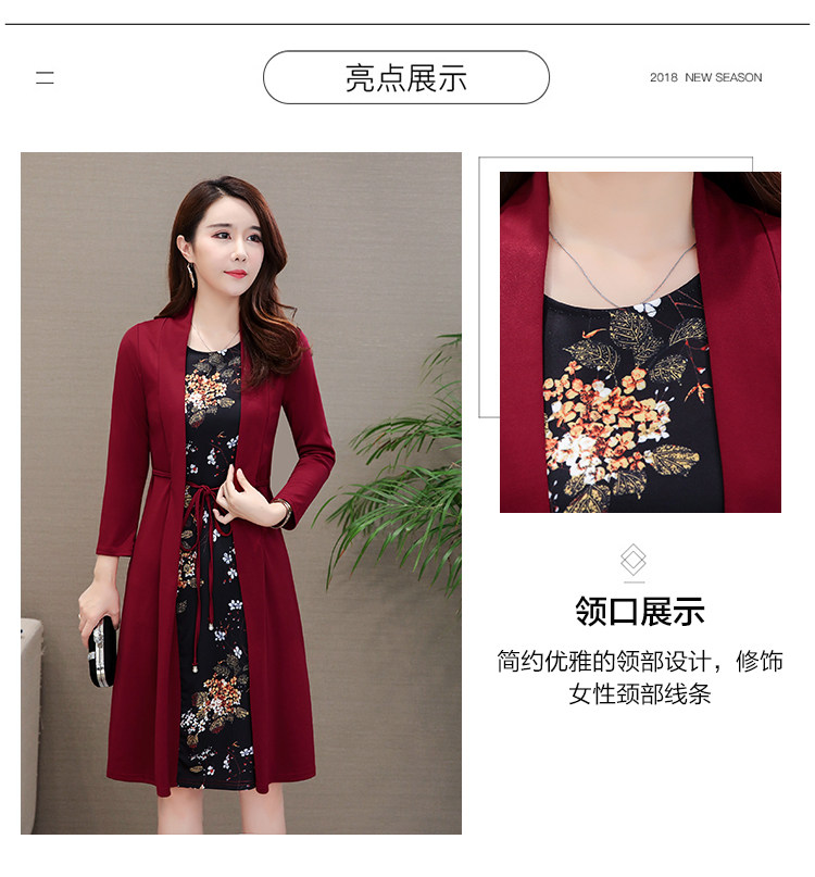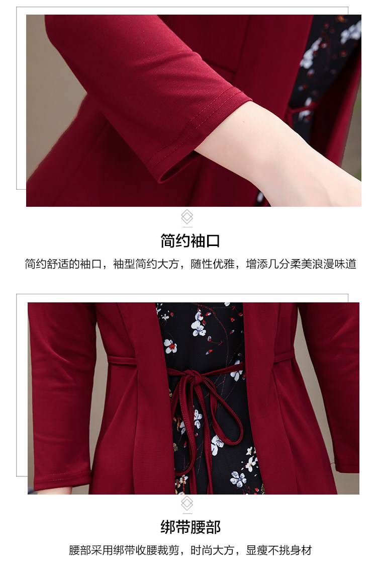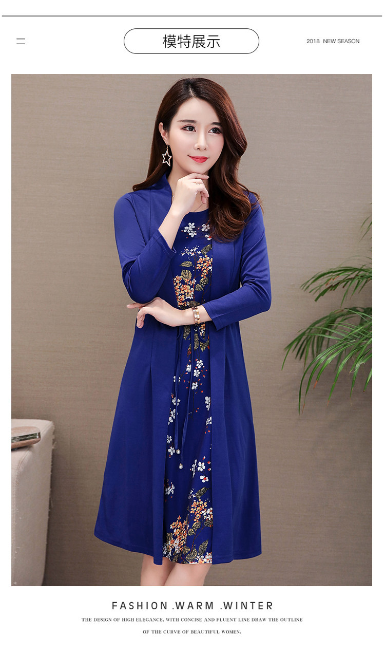 >> 實拍 2018秋裝新款大碼媽媽裝假兩件套裝長袖連衣裙女中長款裙子