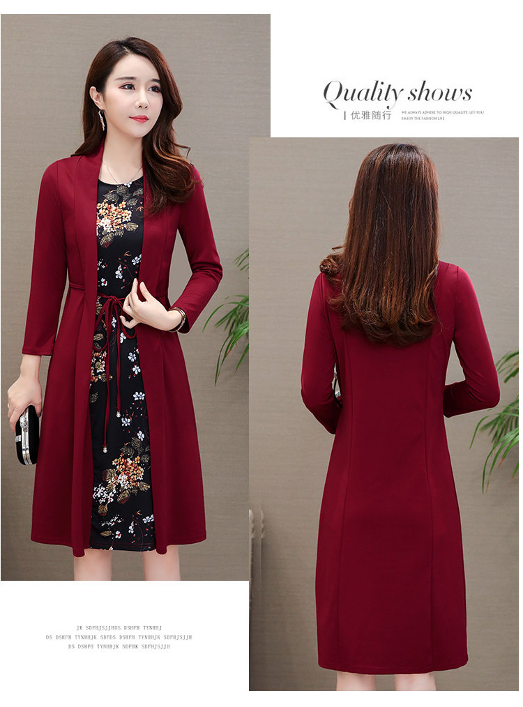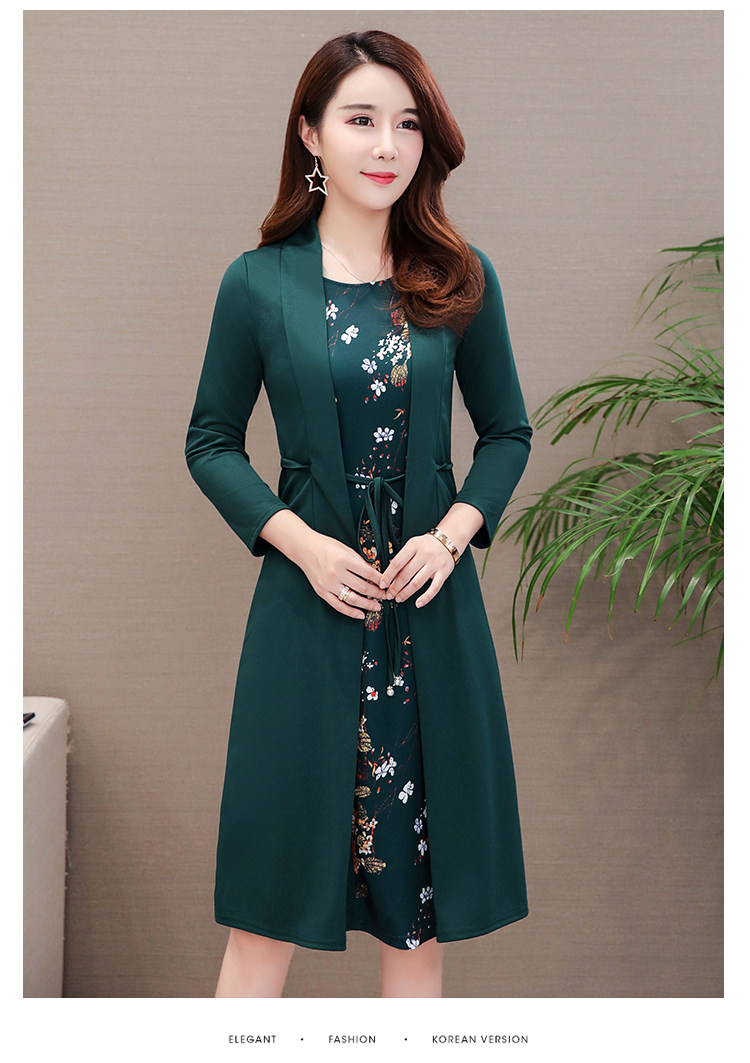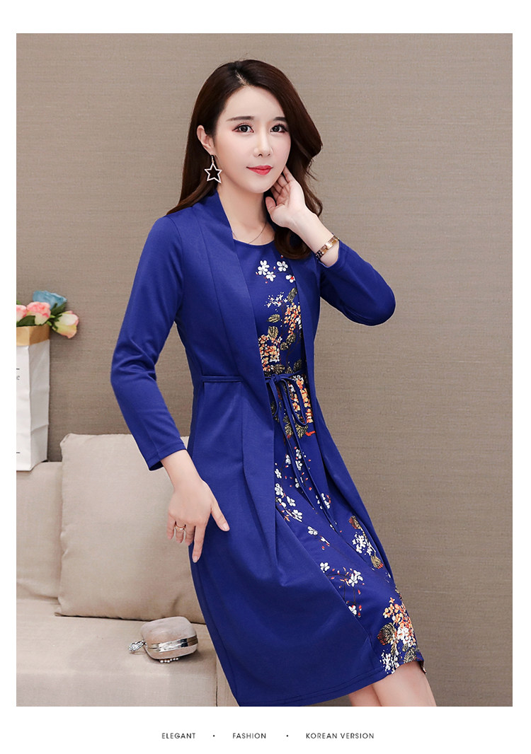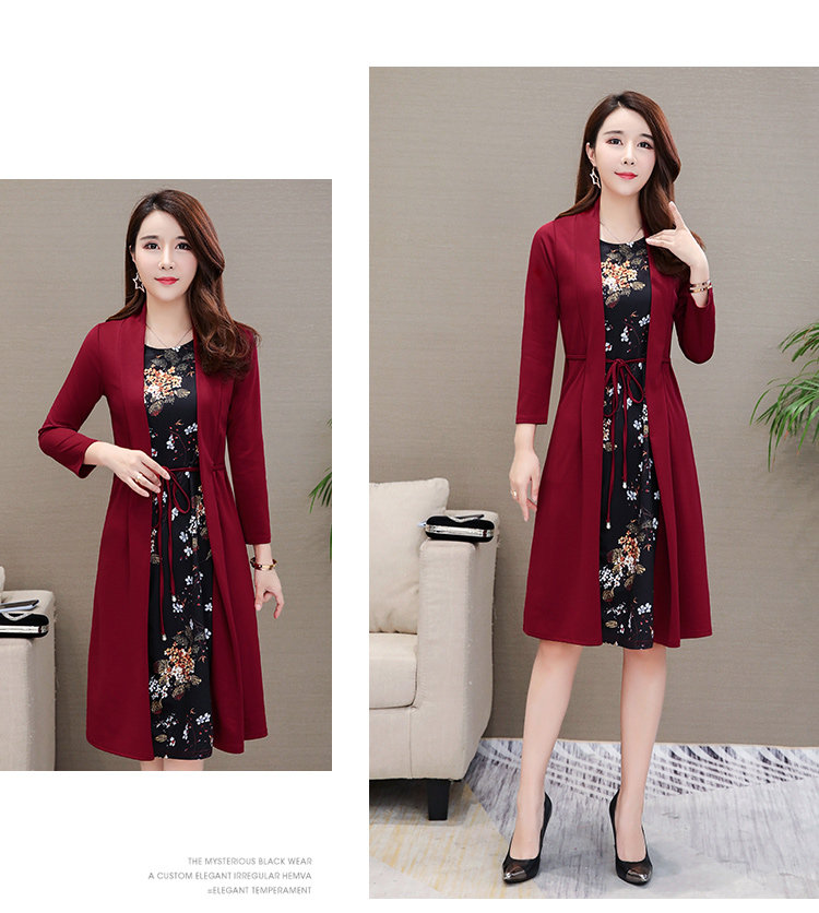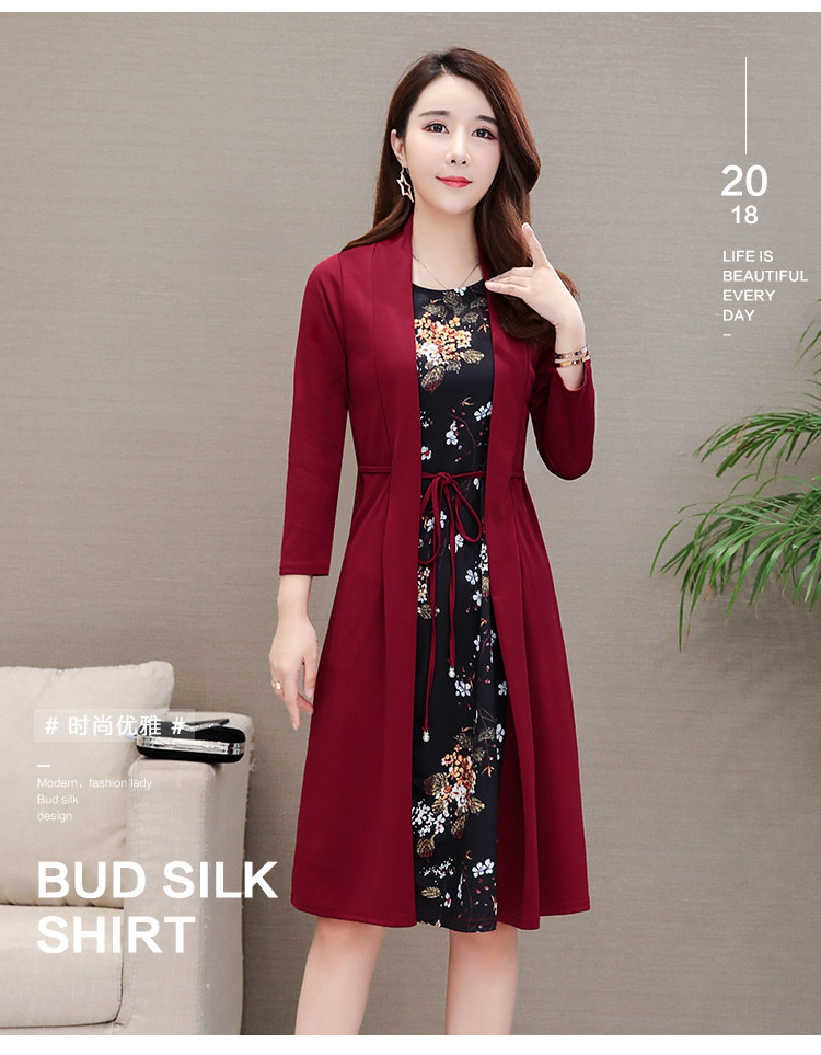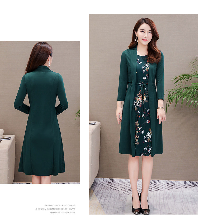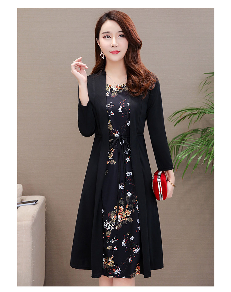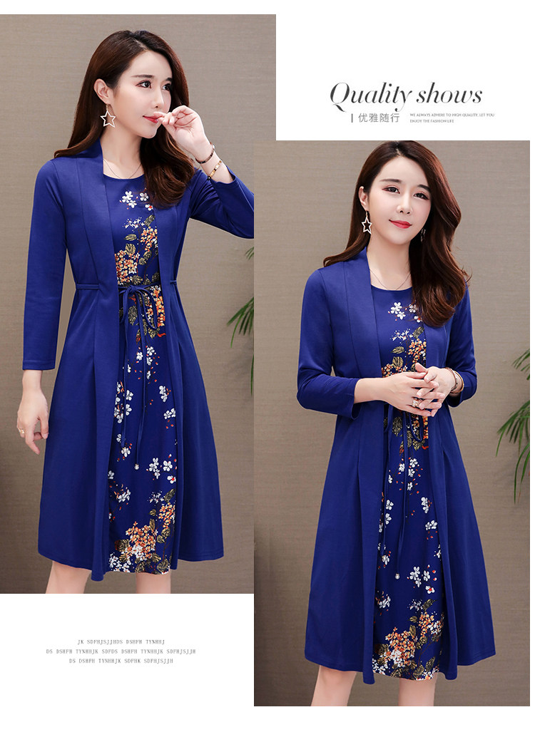 >> 實拍 2018秋裝新款大碼媽媽裝假兩件套裝長袖連衣裙女中長款裙子