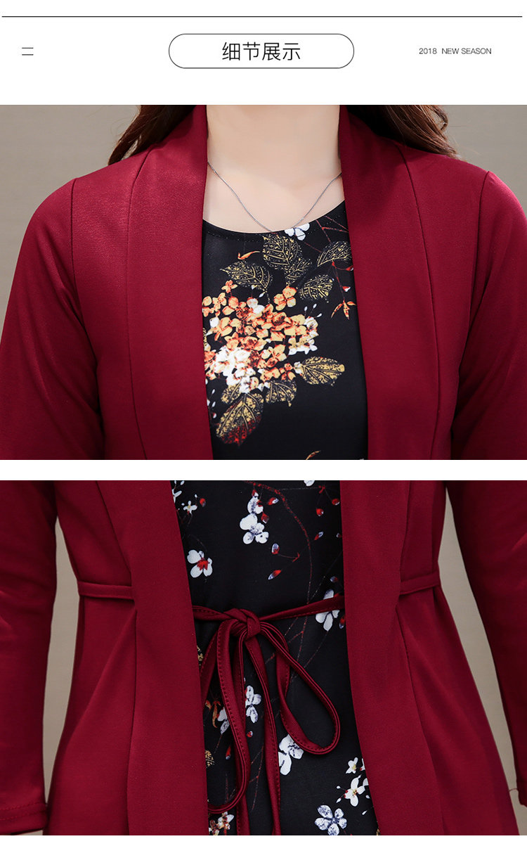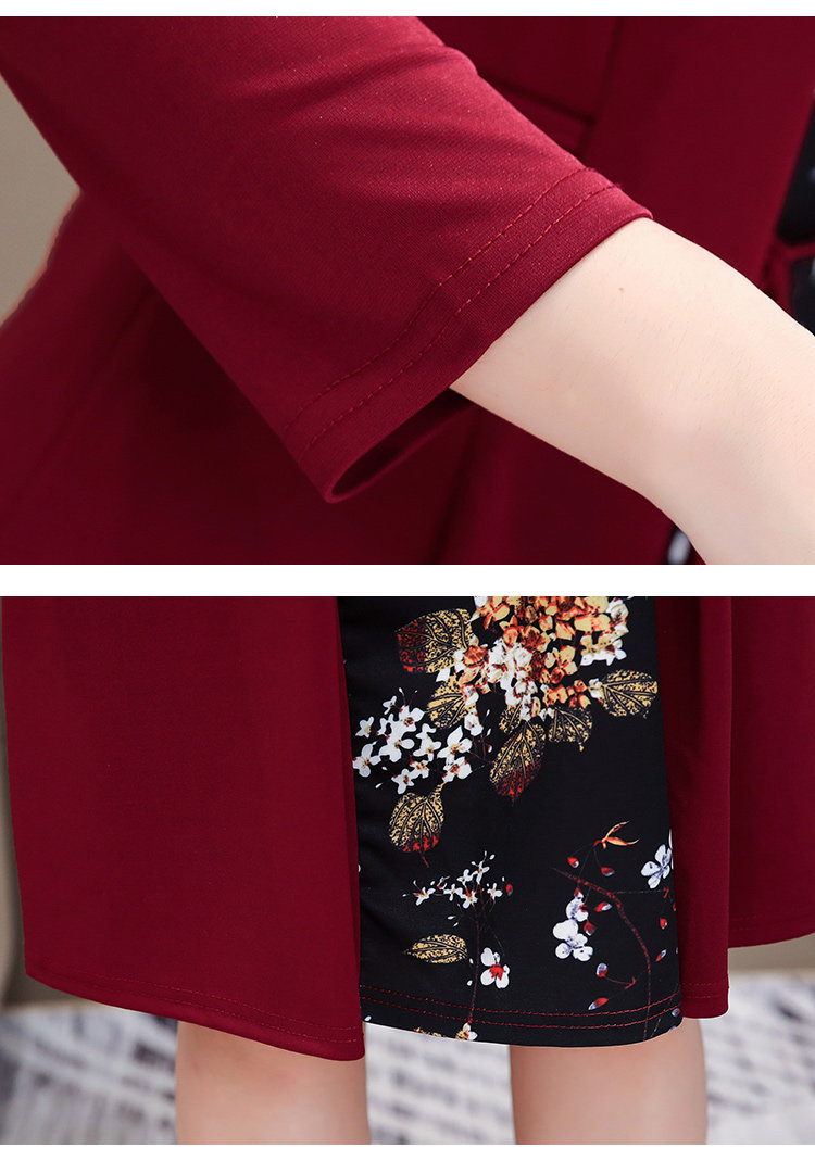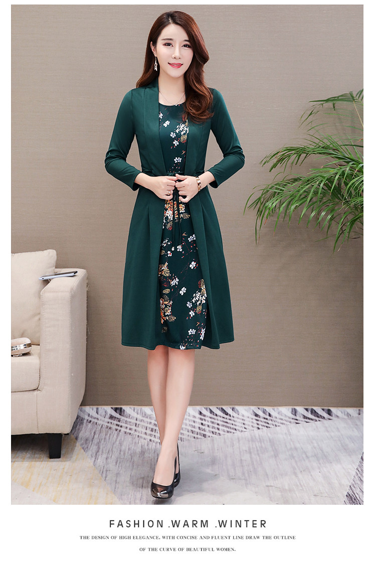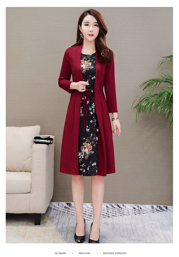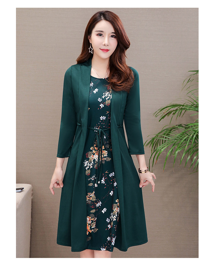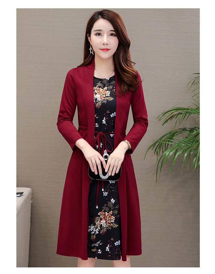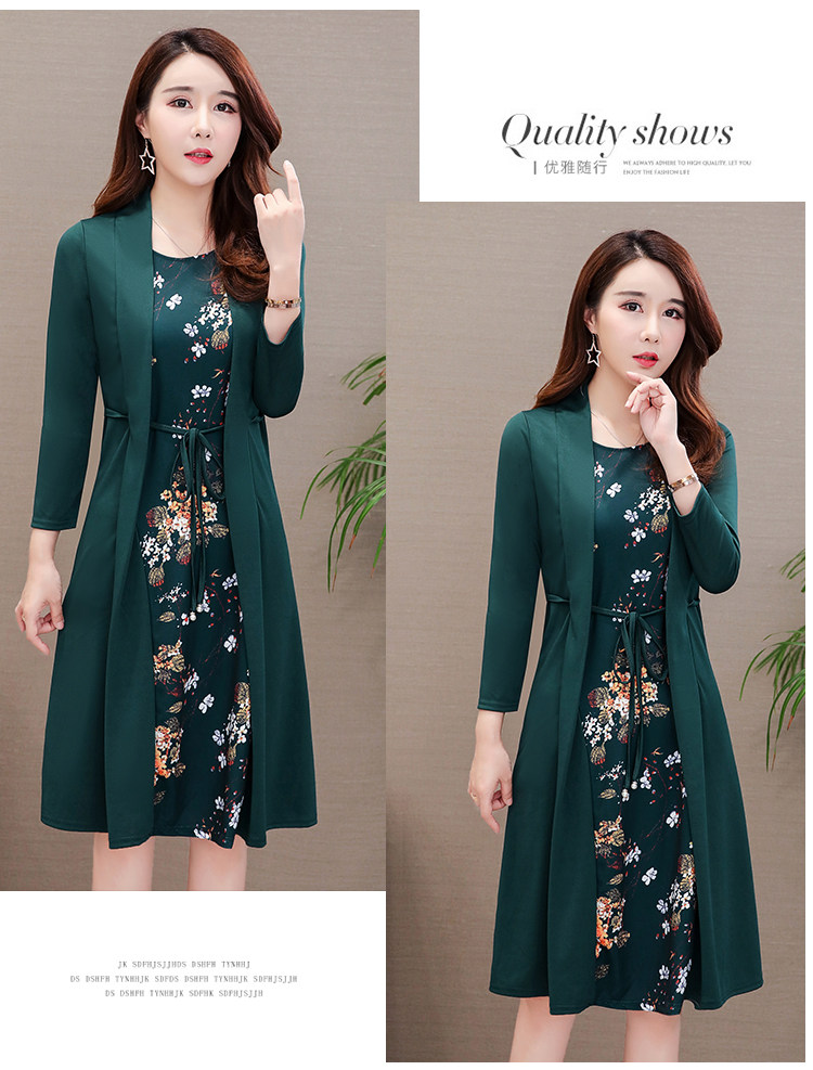 >> 實拍 2018秋裝新款大碼媽媽裝假兩件套裝長袖連衣裙女中長款裙子
