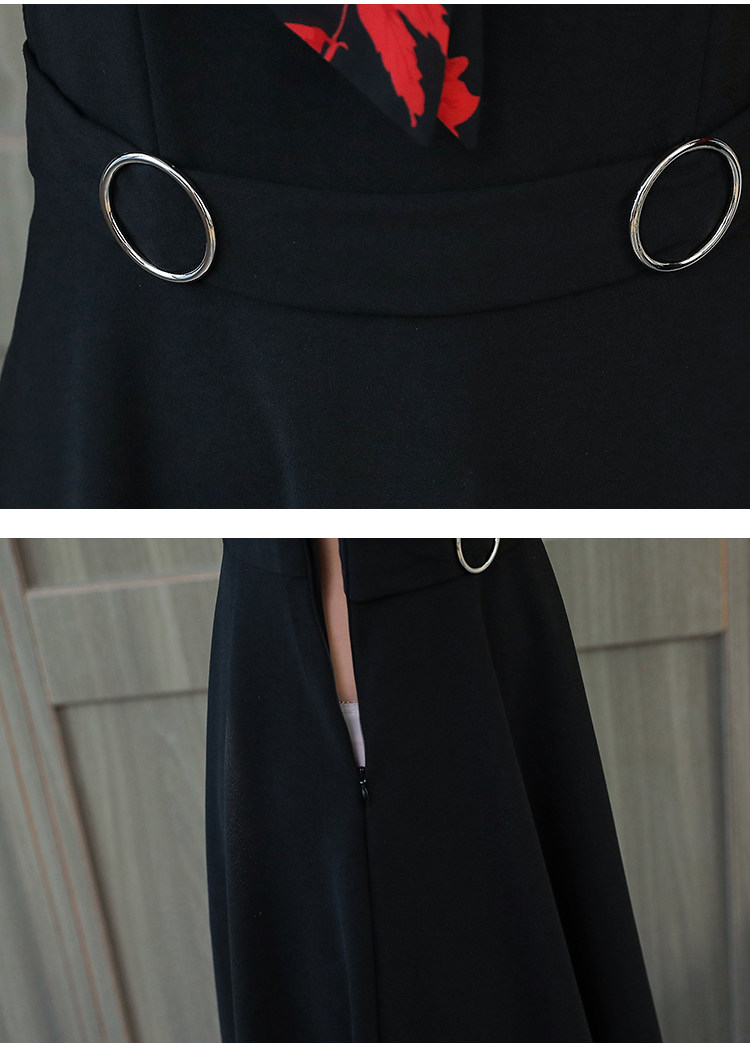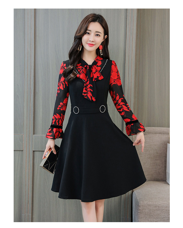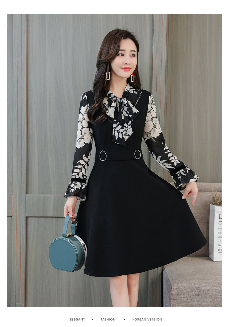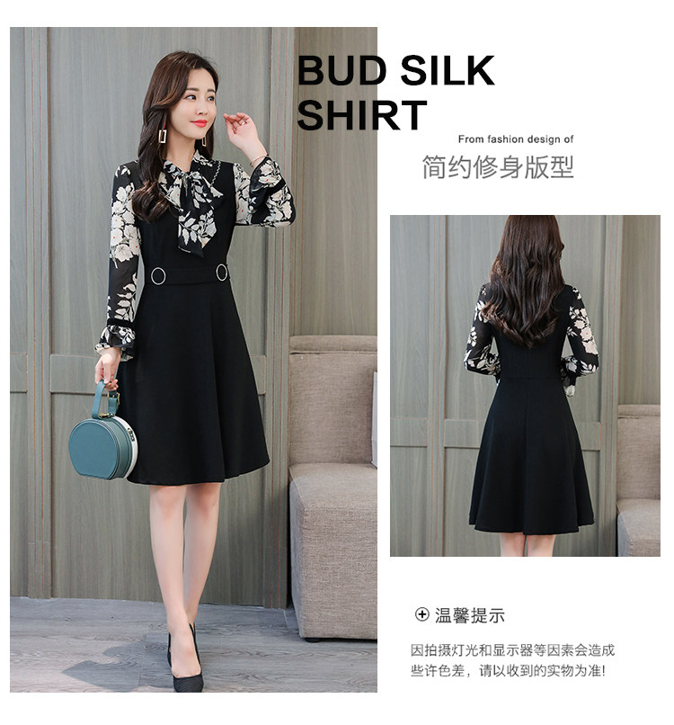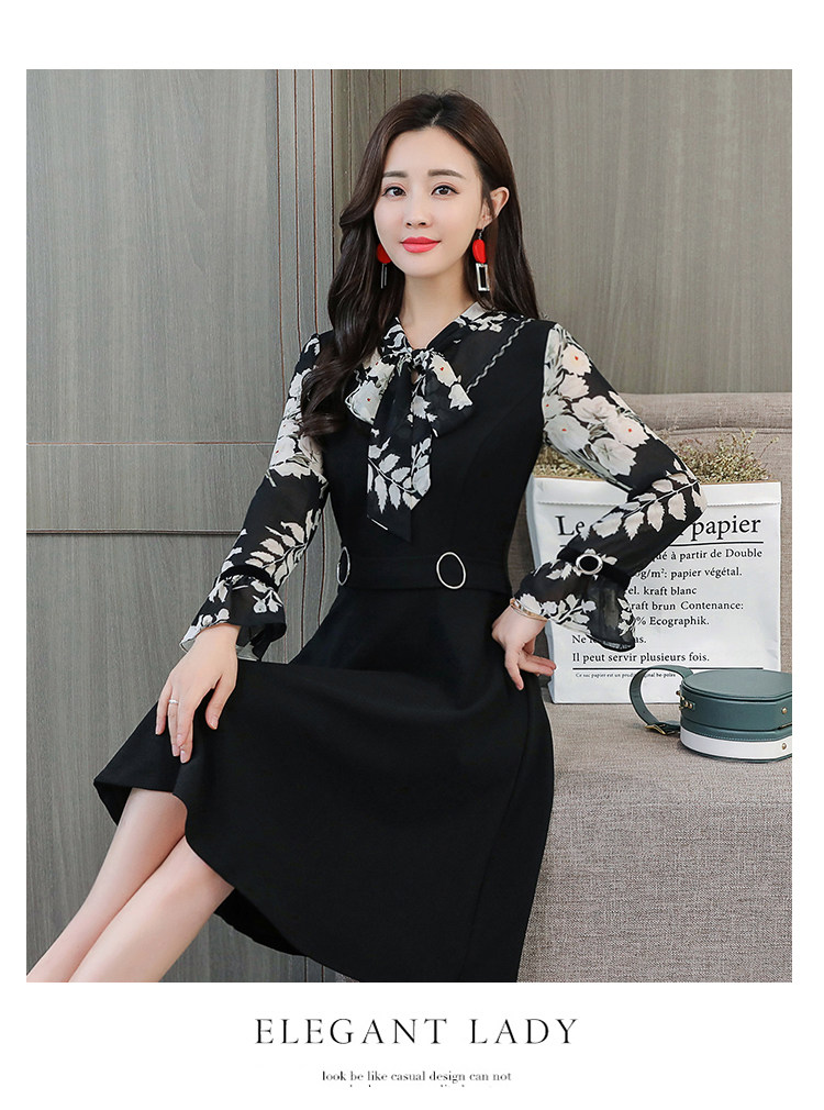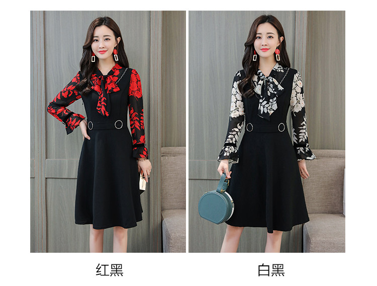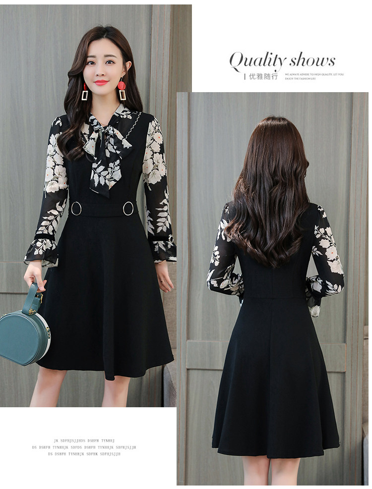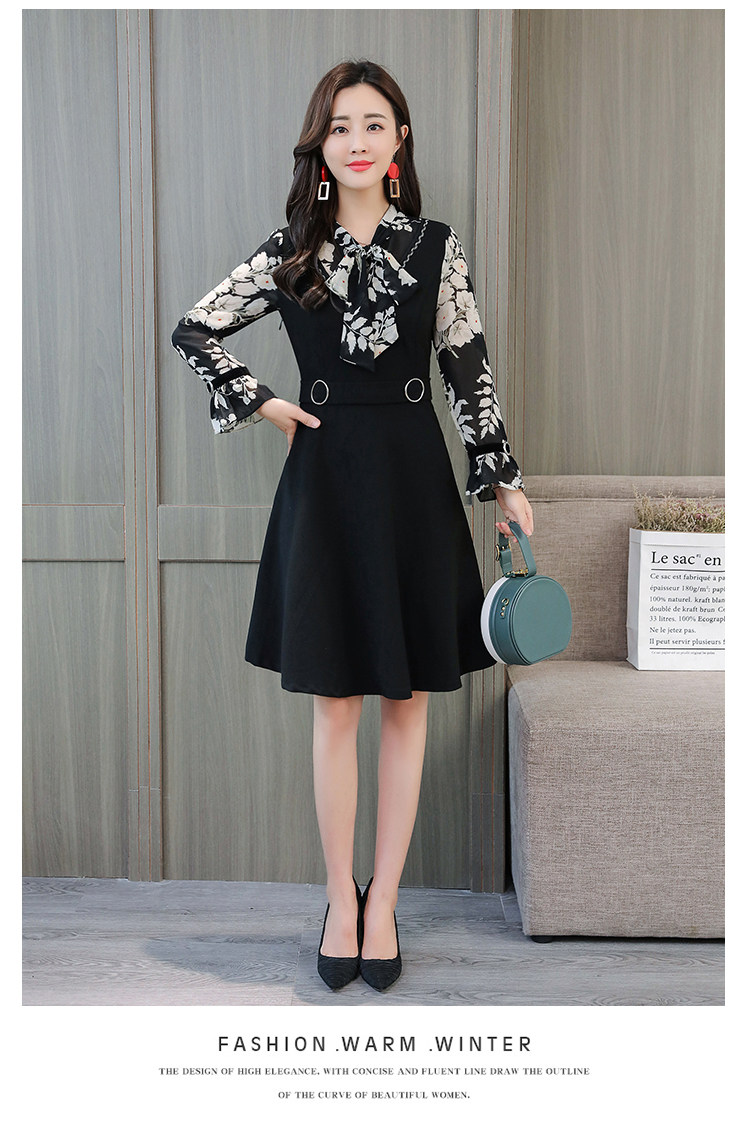 >> 實拍中長款修身v領連衣裙秋冬季女裝2018新款韓版印花氣質裙子潮