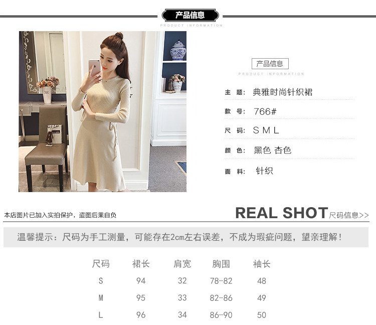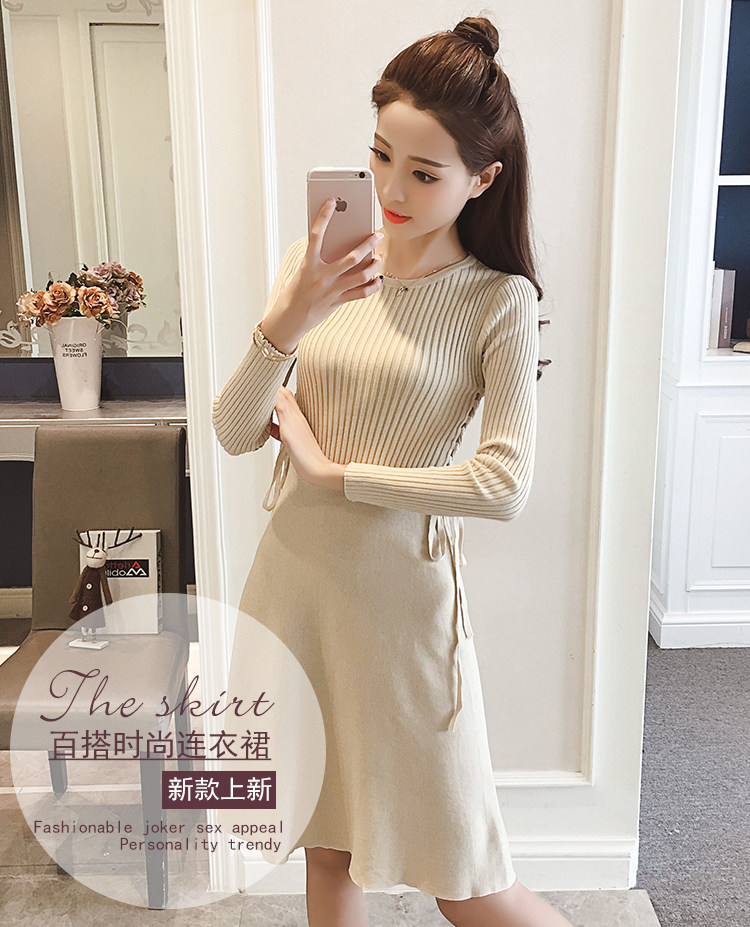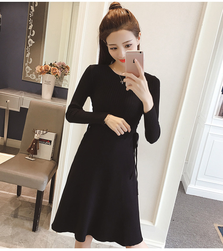 >> 韓版氣質淑女腰部繫帶收腰針織打底連衣裙潮