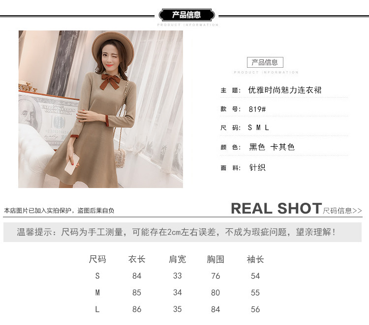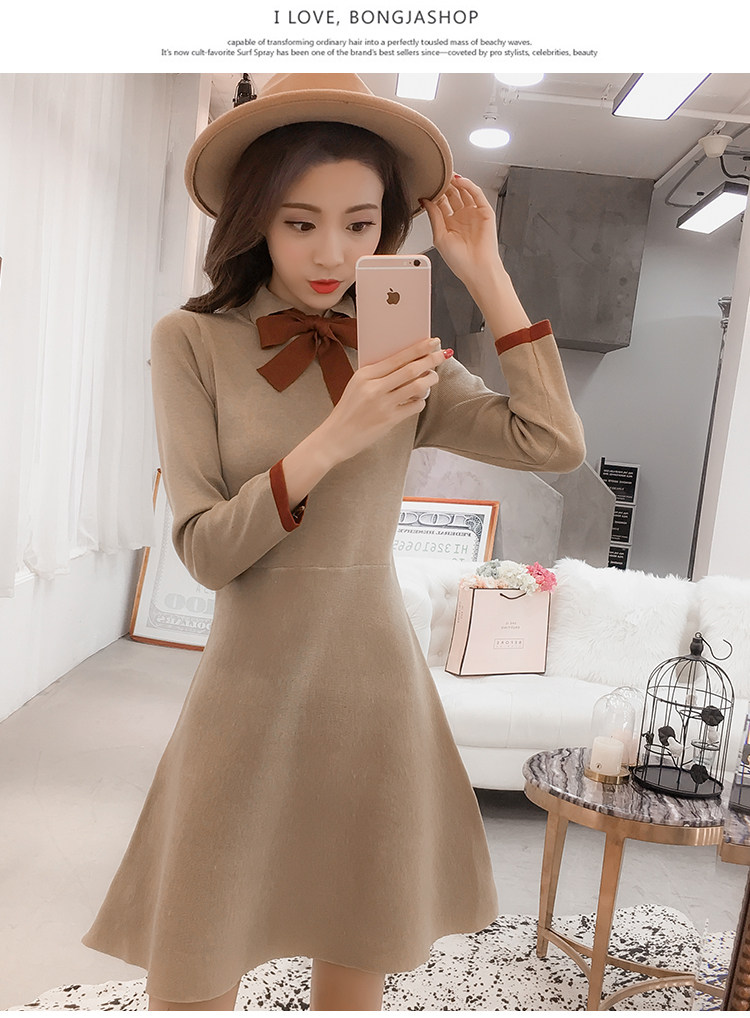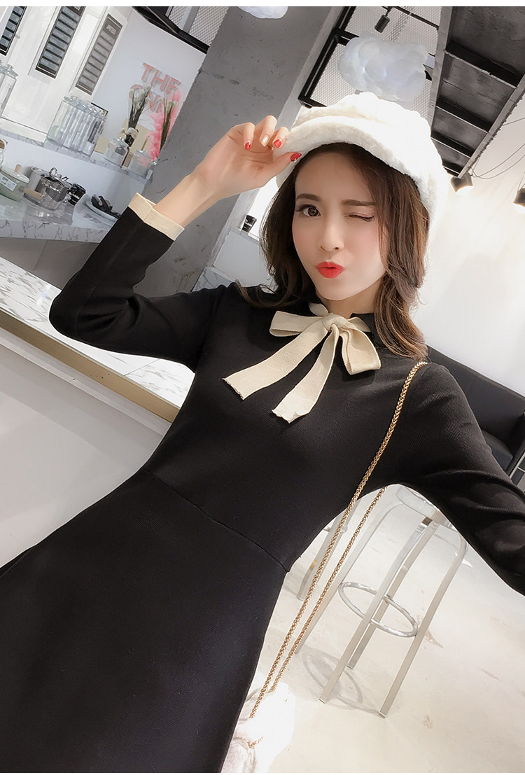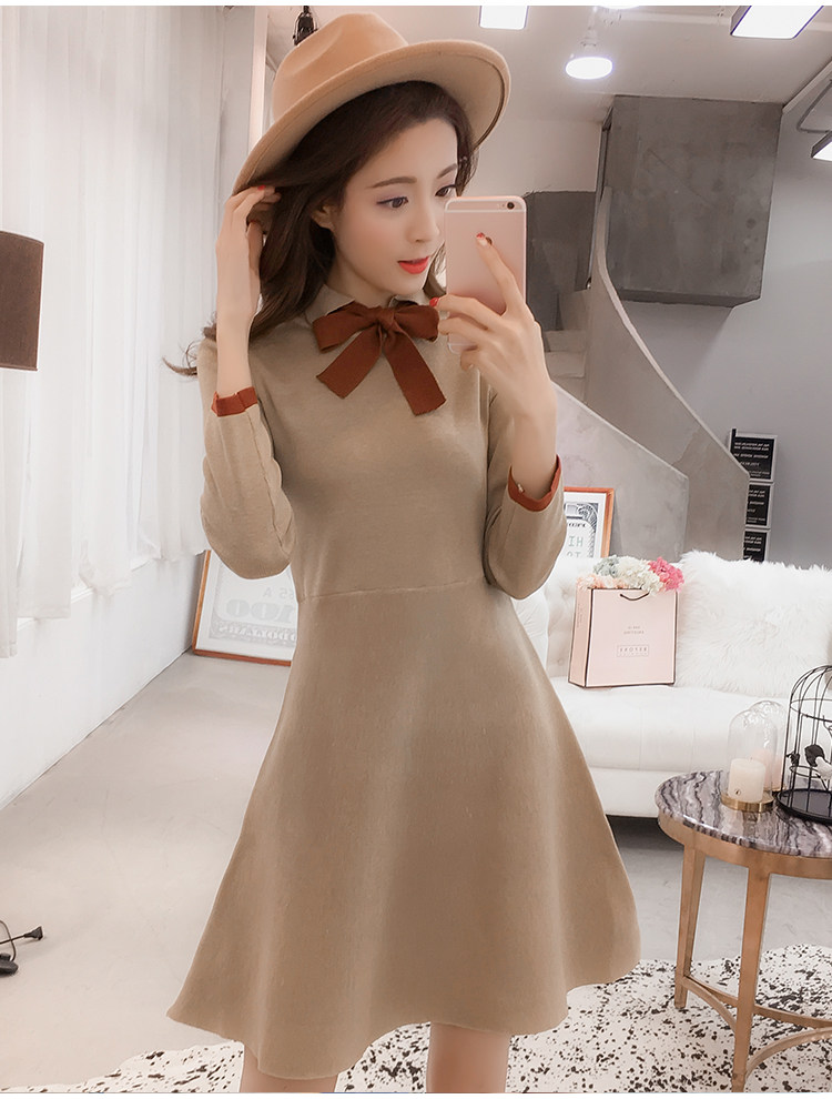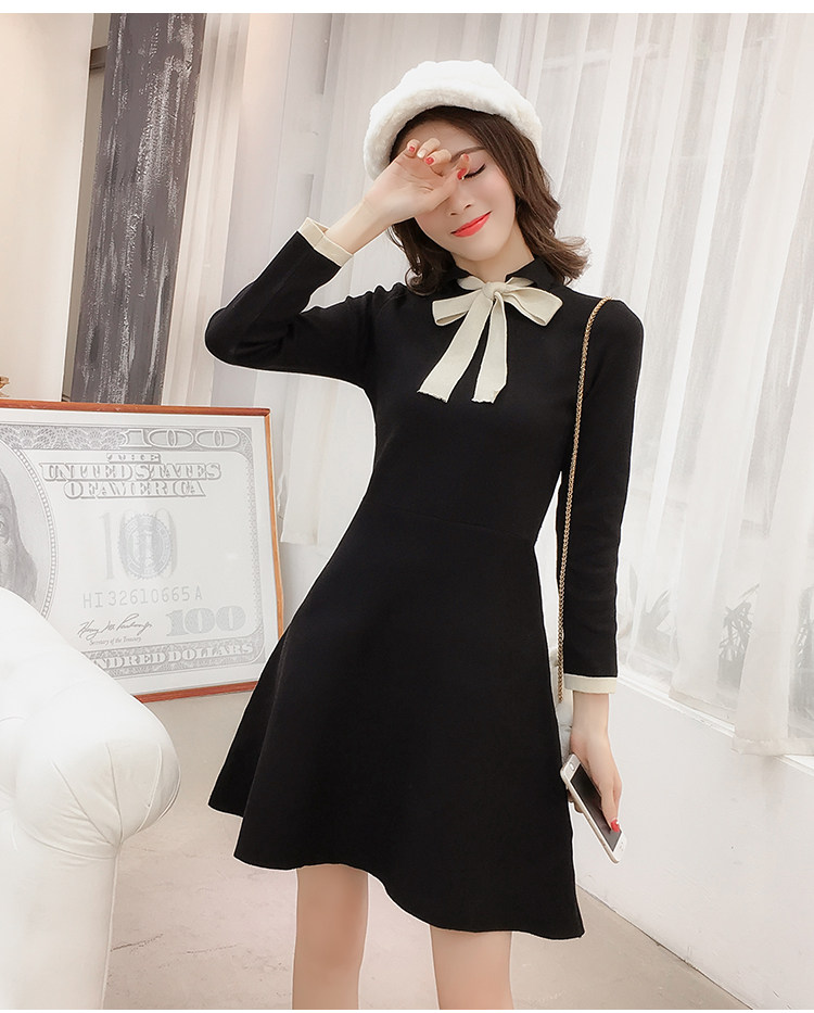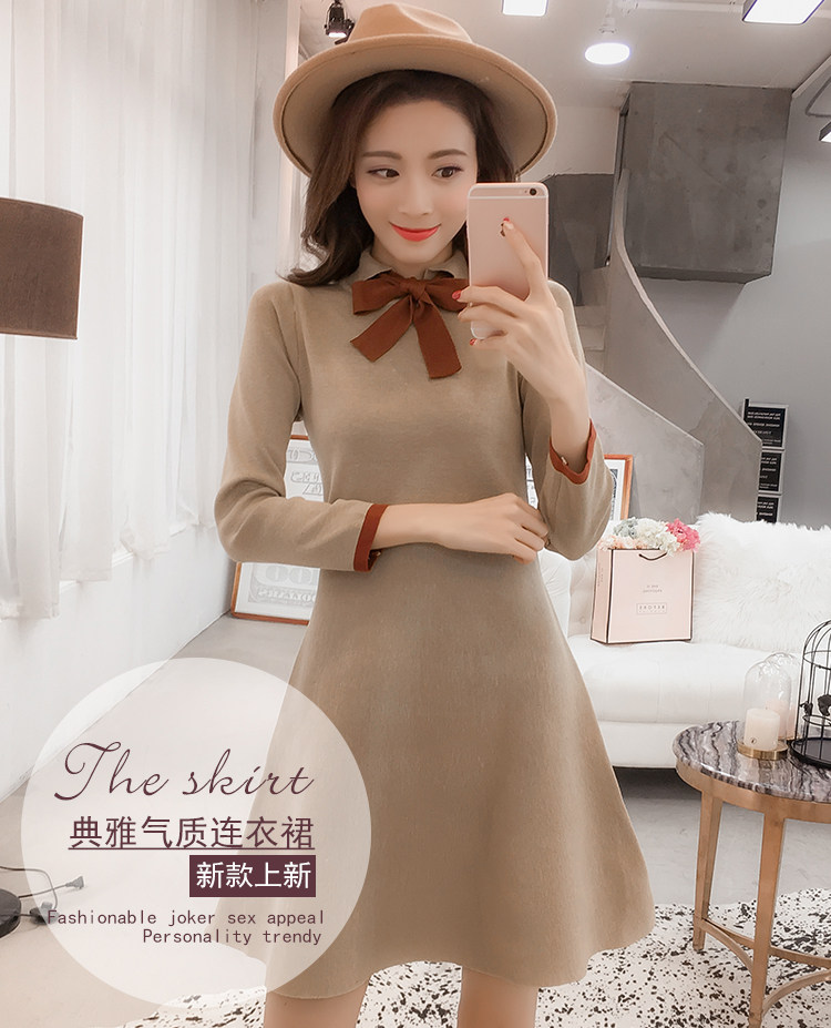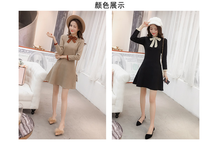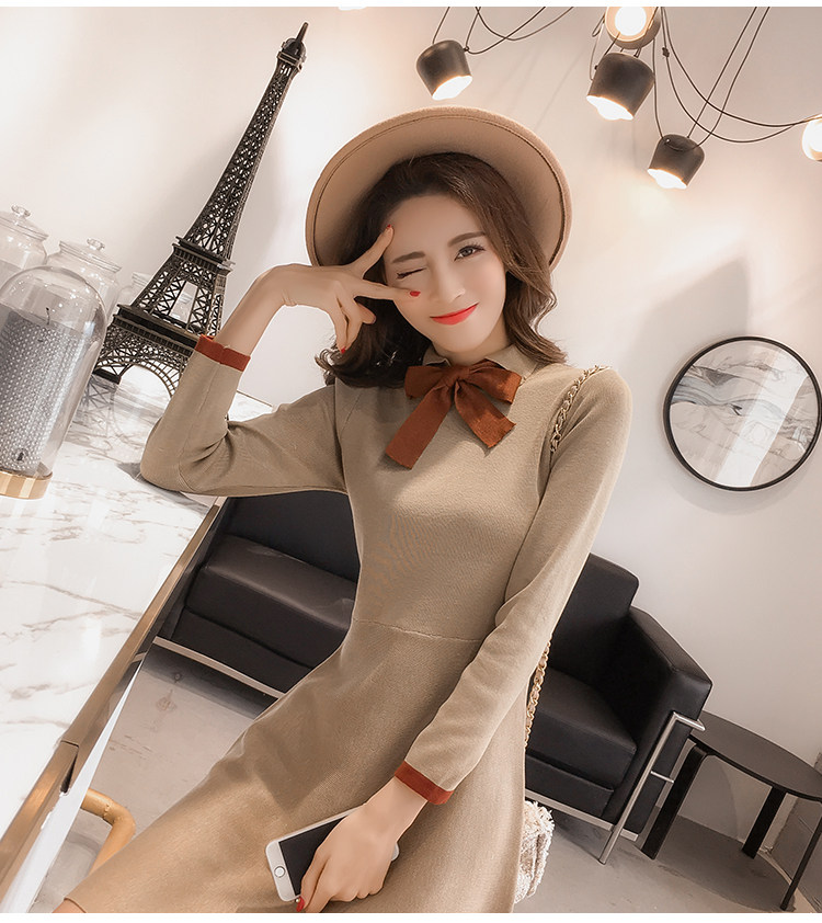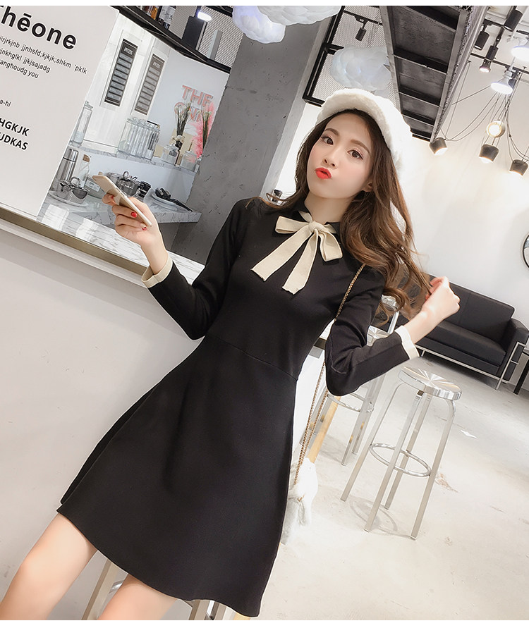>> 新款韓版長袖拼色修身內搭針織連衣裙打底a字裙