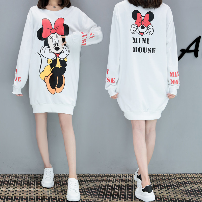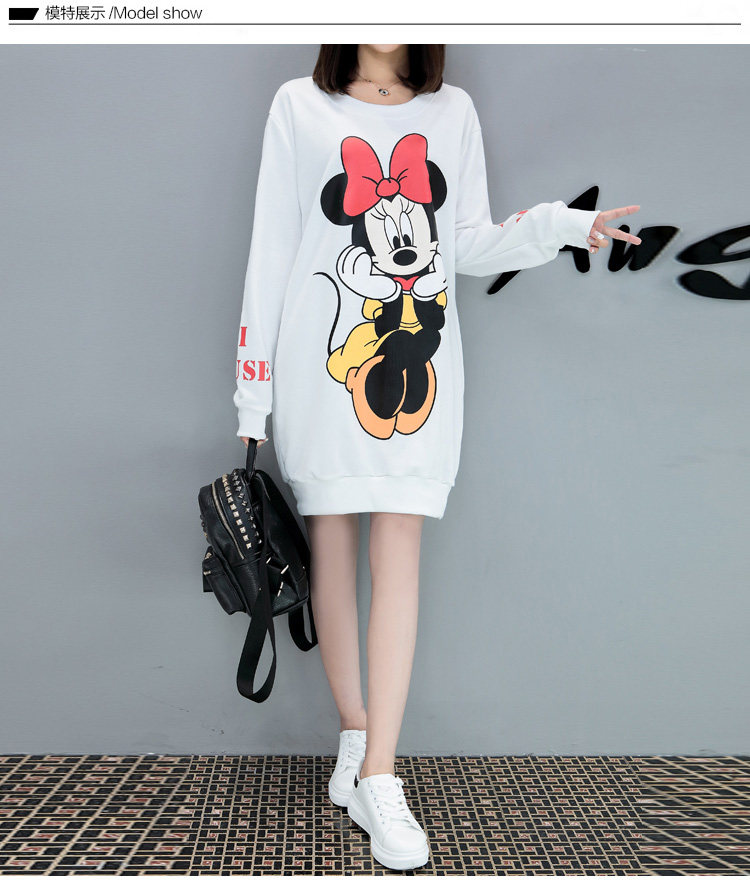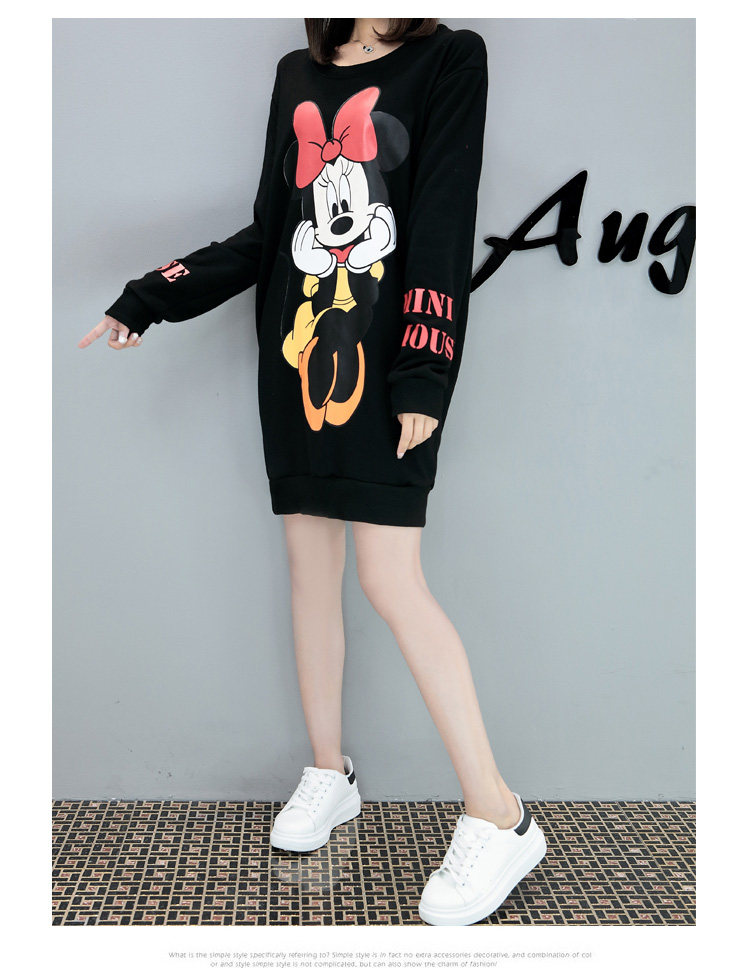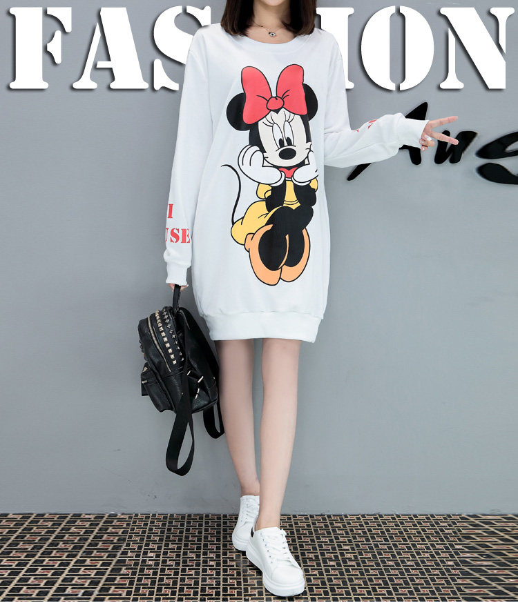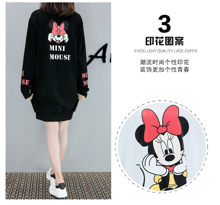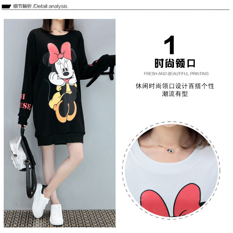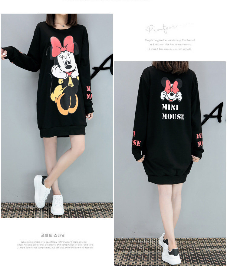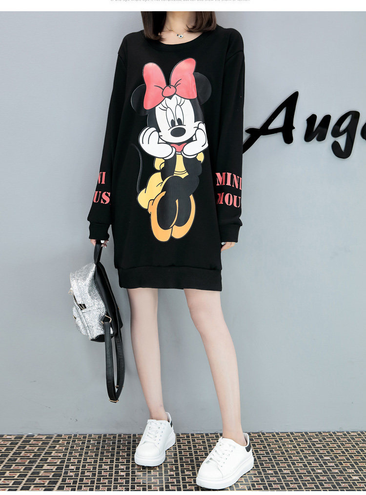 >> 實拍秋季新款韓版卡通米奇中長款純棉加絨長袖連衣裙女