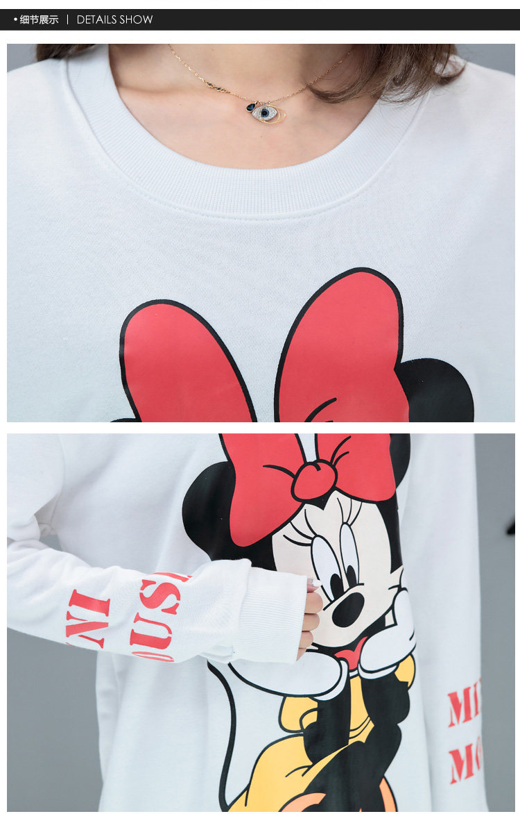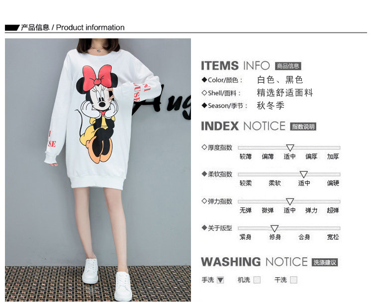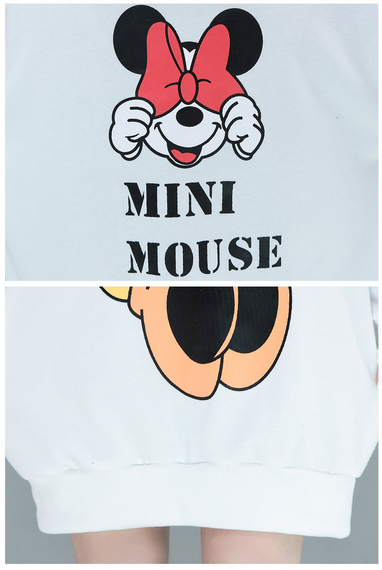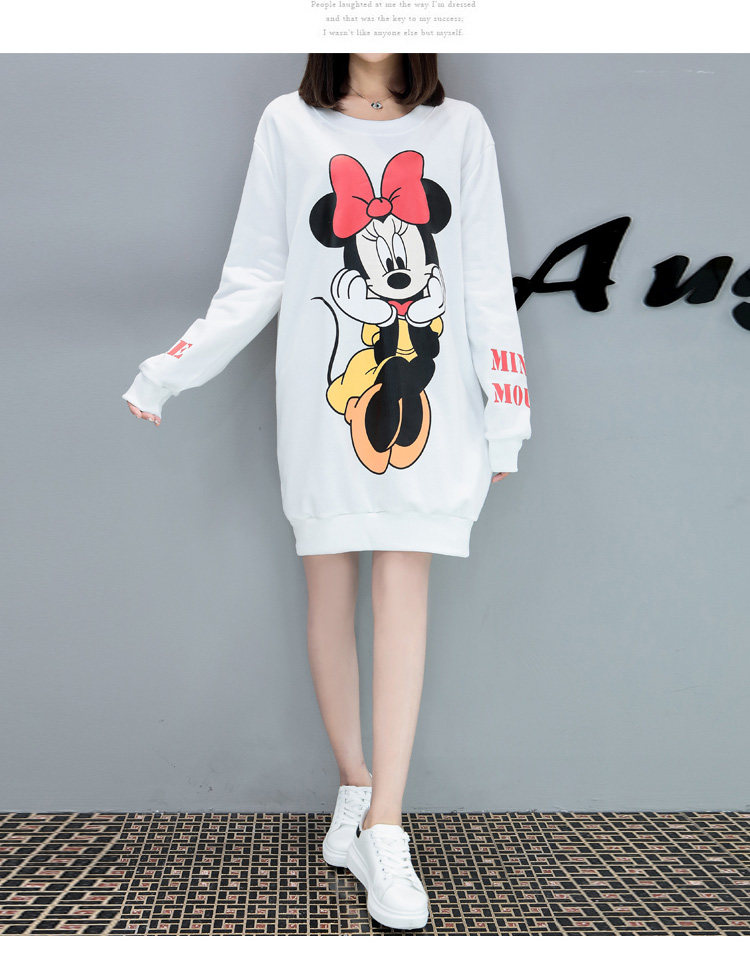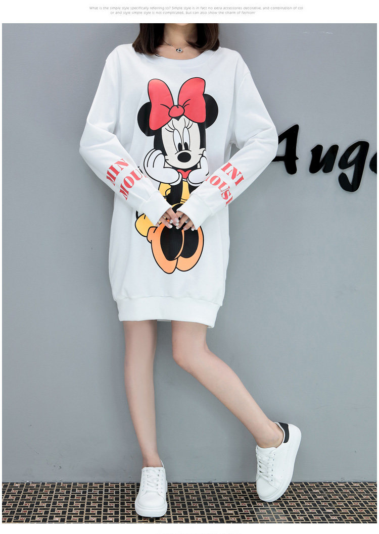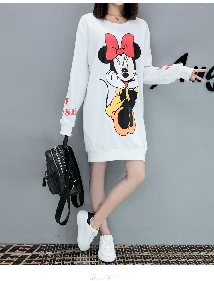 >> 實拍秋季新款韓版卡通米奇中長款純棉加絨長袖連衣裙女