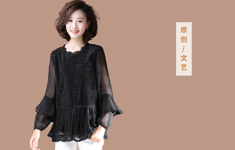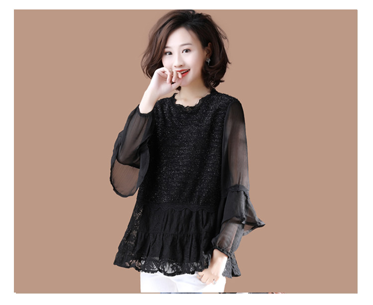 >> 大碼蕾絲拼接套頭襯衫女寬鬆休閒長袖上衣2019新款