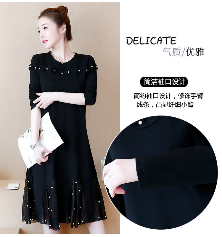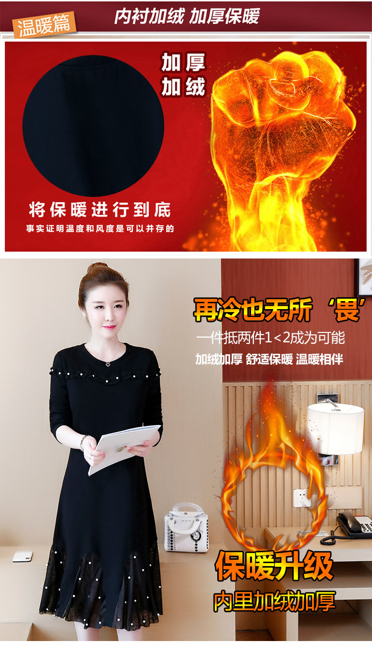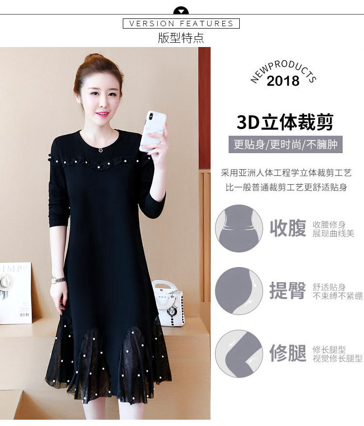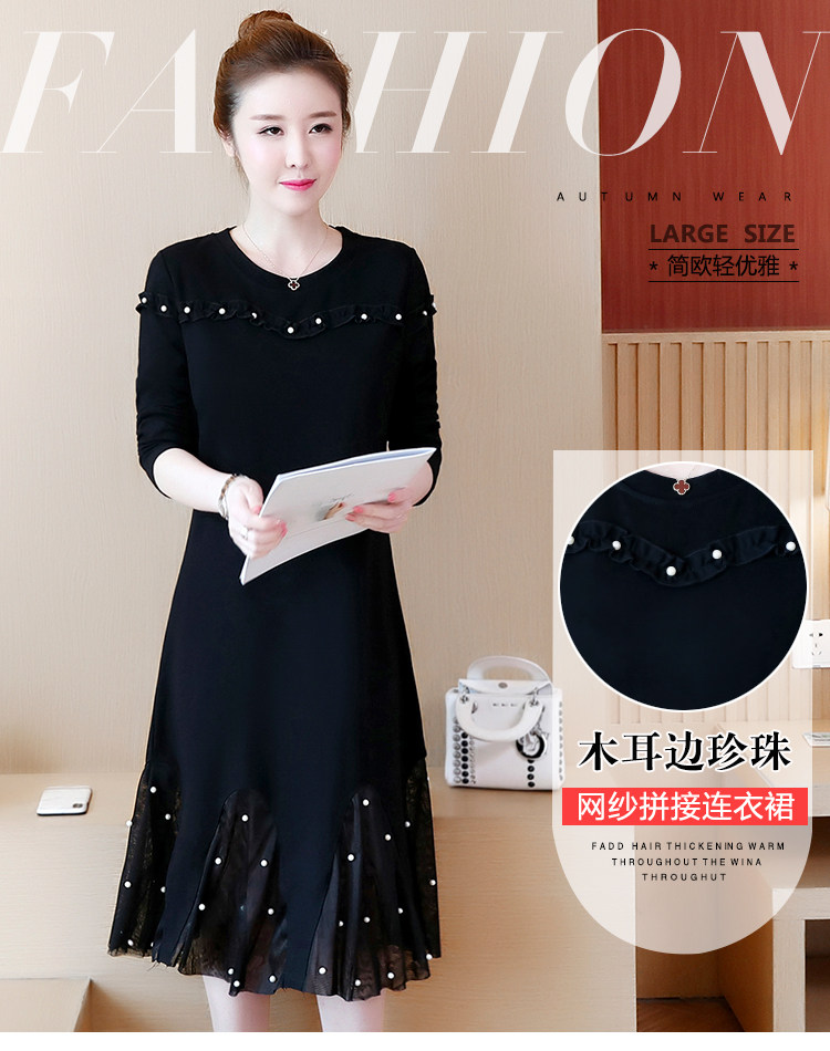 >> 大碼女裝2018新款加絨加厚連衣裙胖mm洋氣網紗拼接釘珠魚尾裙