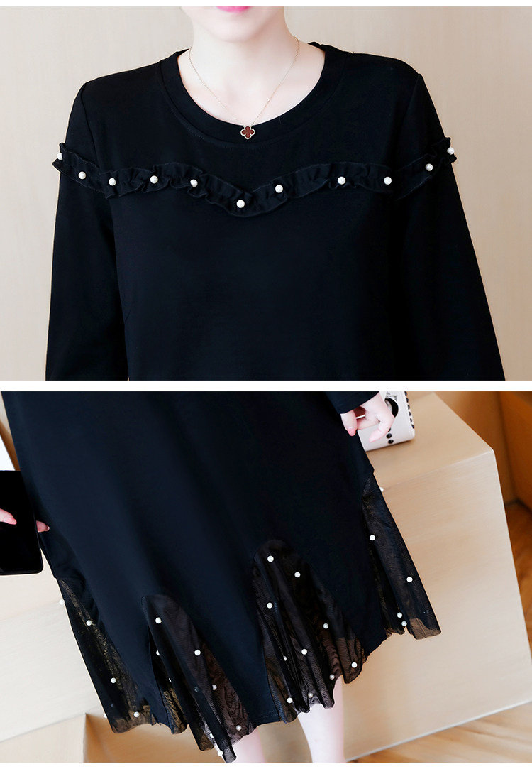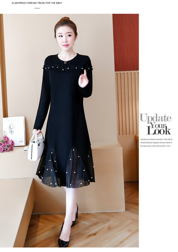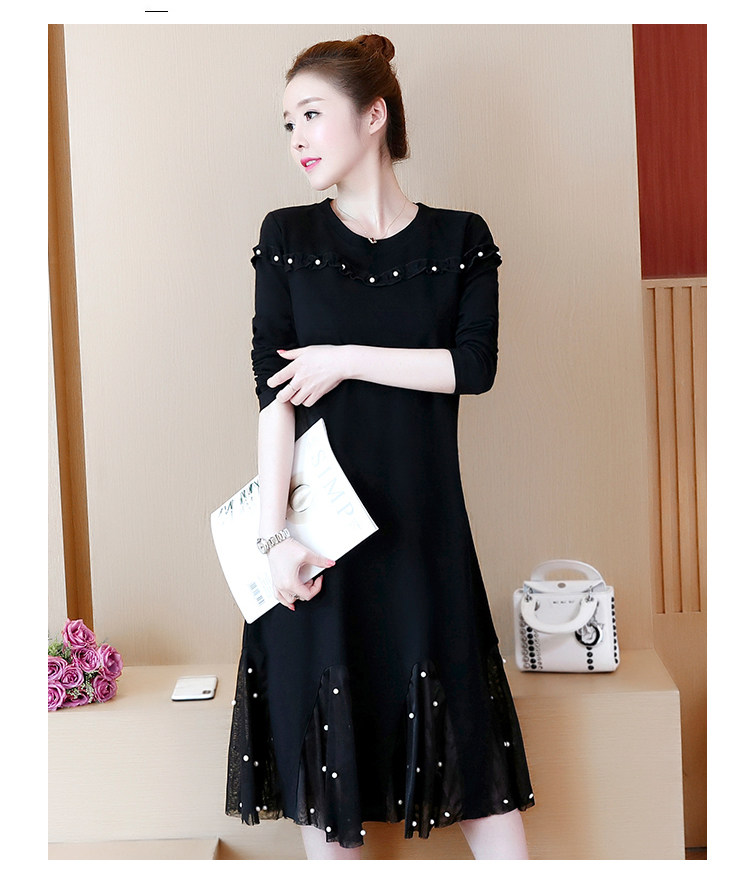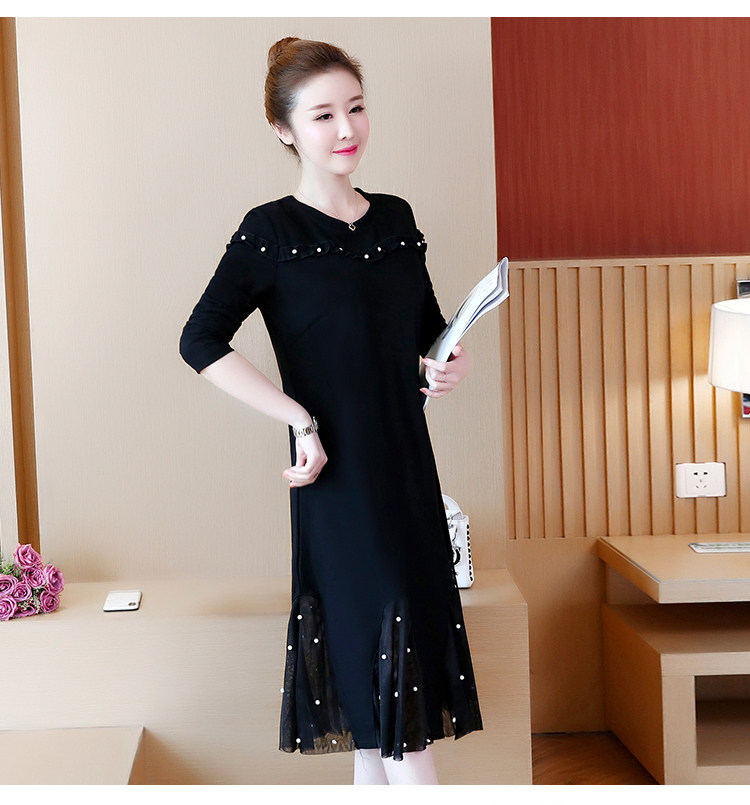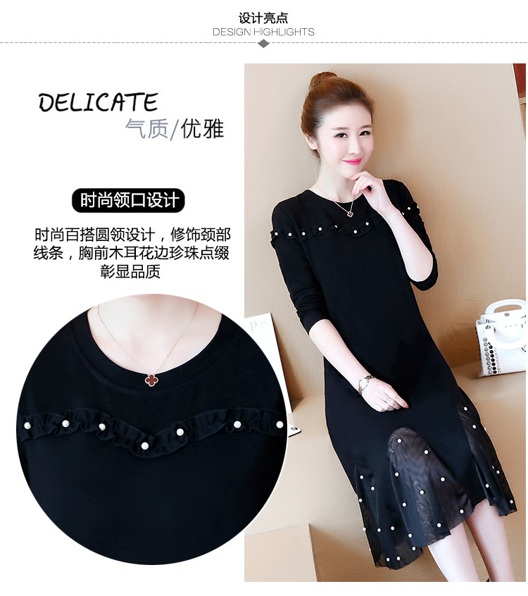 >> 大碼女裝2018新款加絨加厚連衣裙胖mm洋氣網紗拼接釘珠魚尾裙
