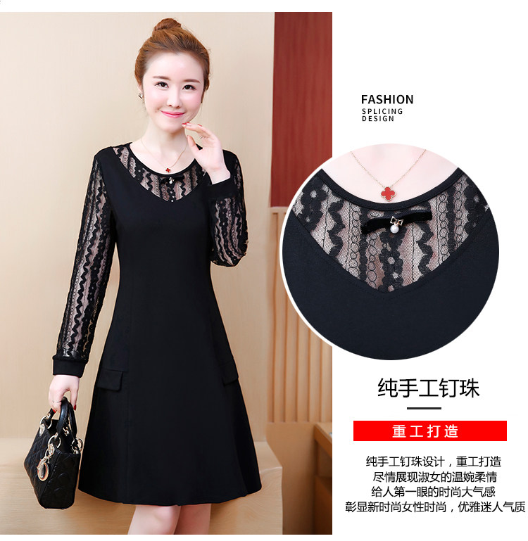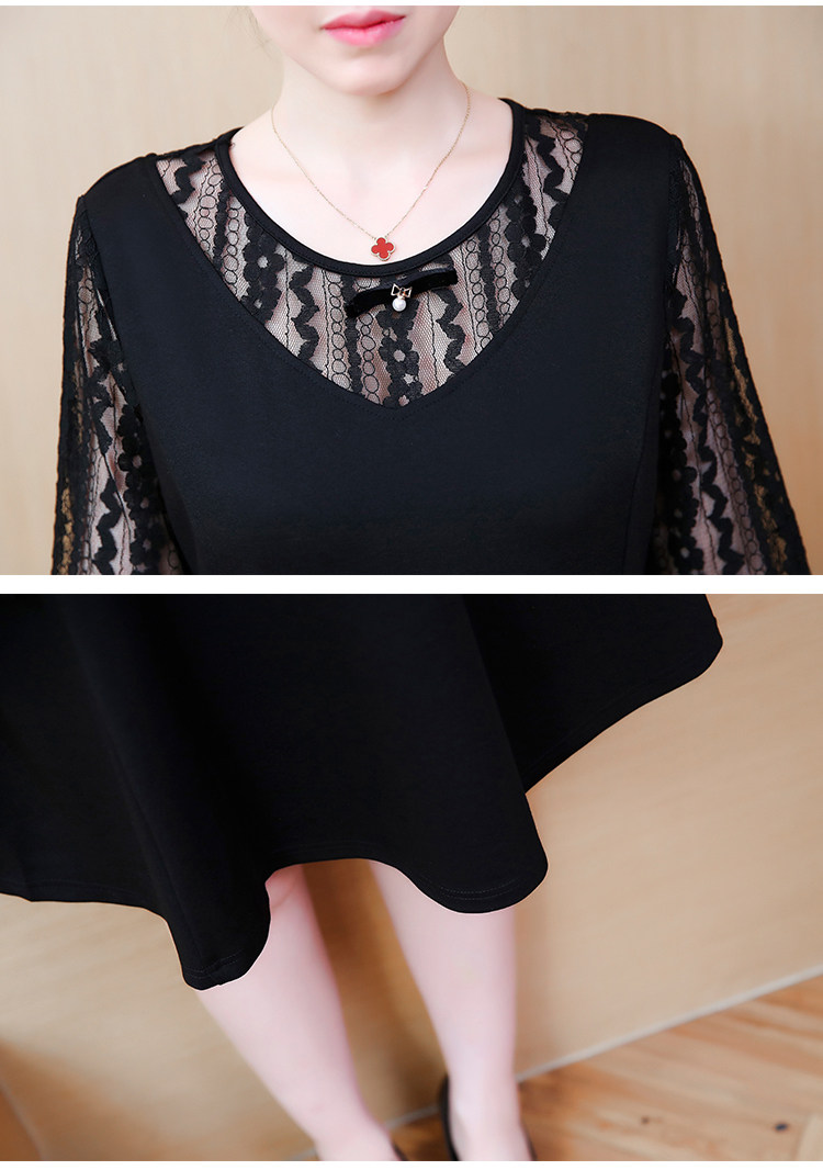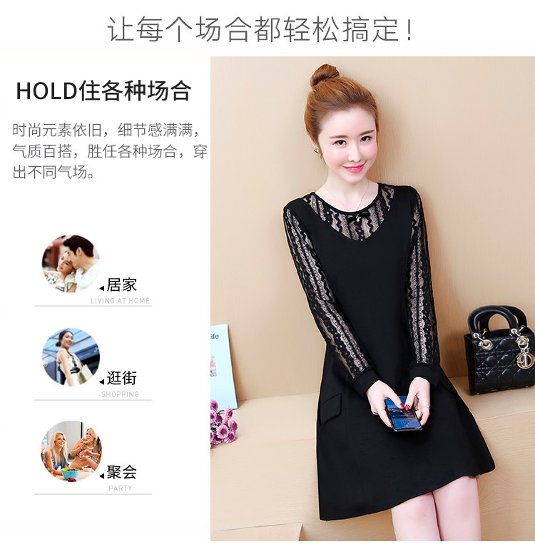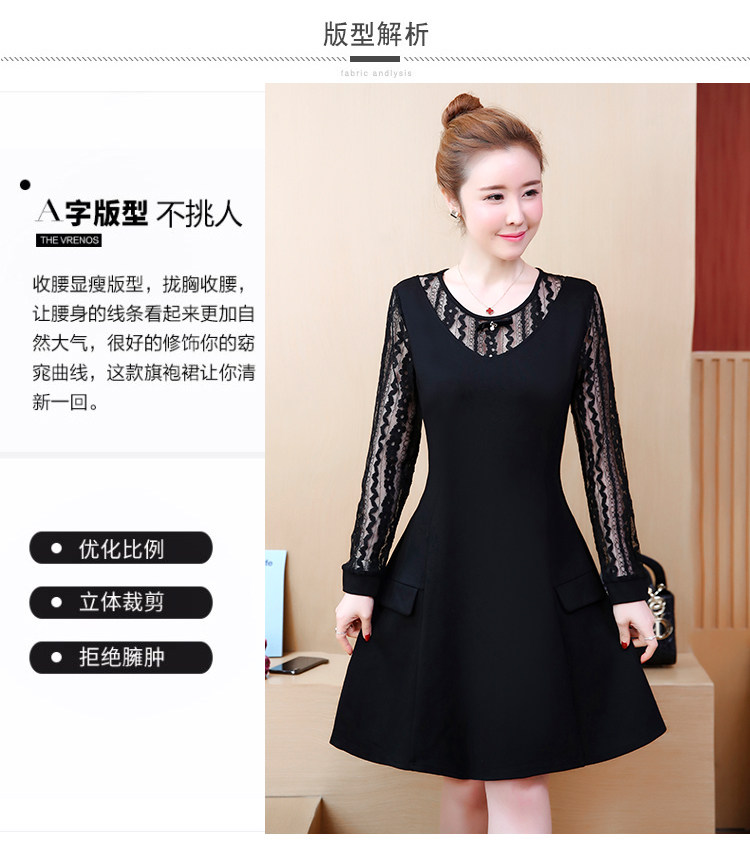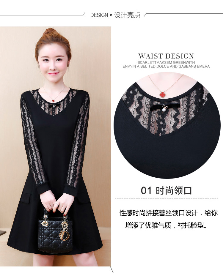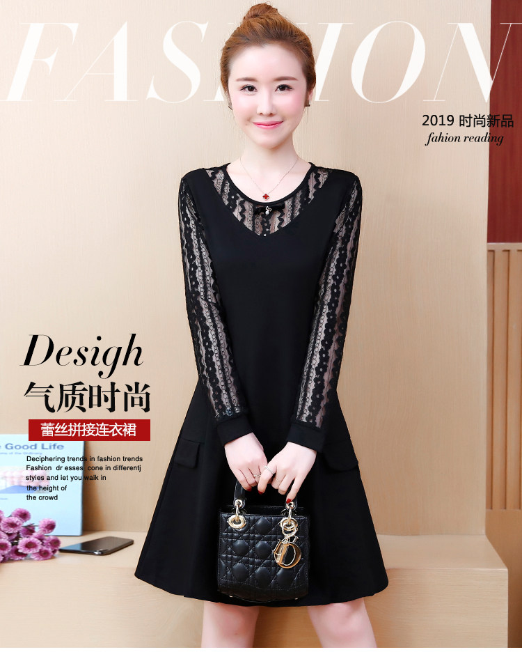 >> 實拍大碼女裝胖mm減齡連衣裙2019春裝新款遮肚子洋氣蕾絲拼接裙子