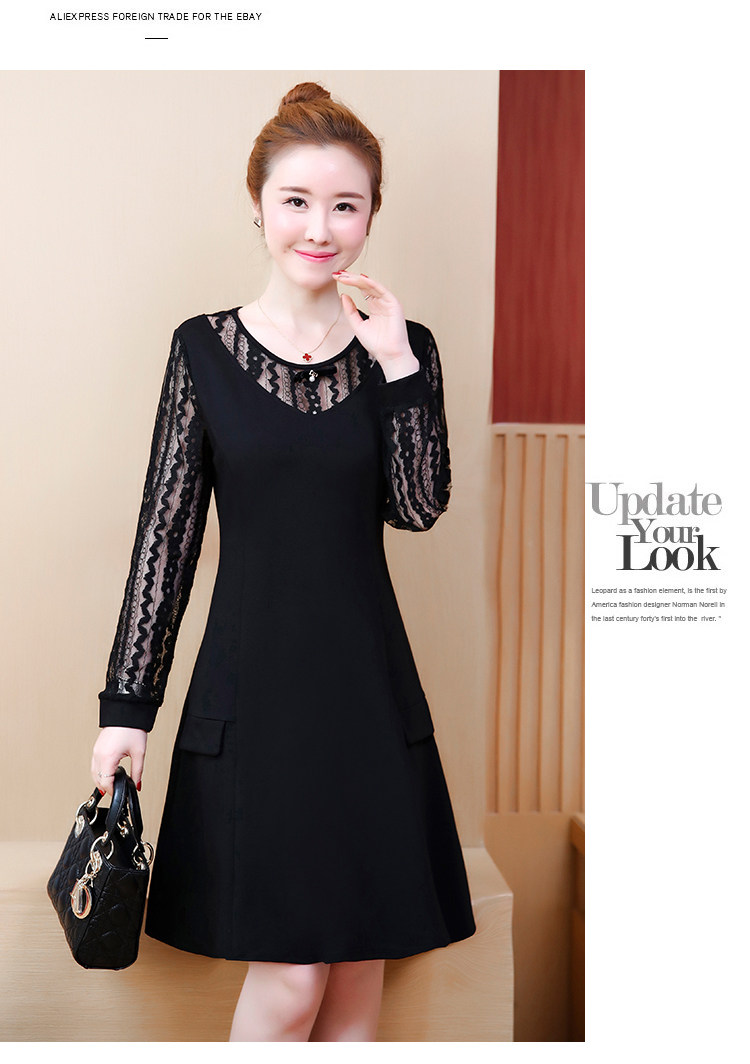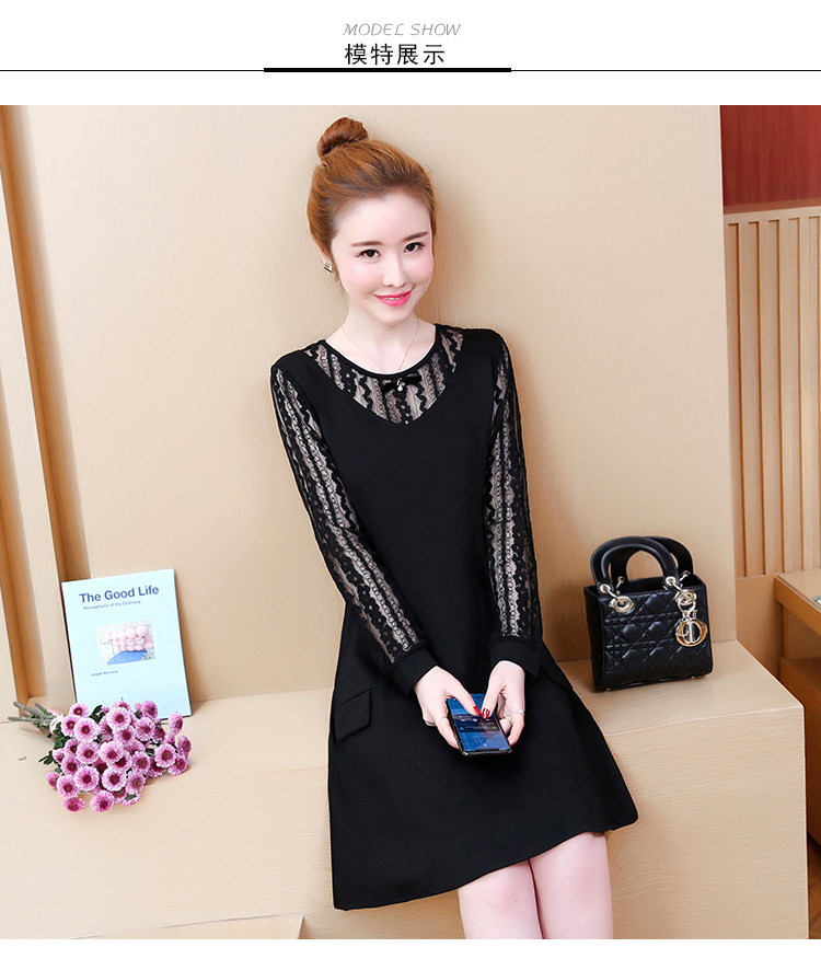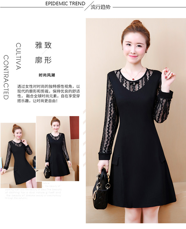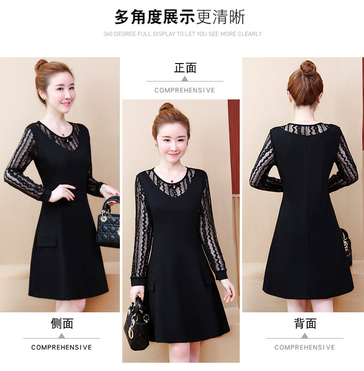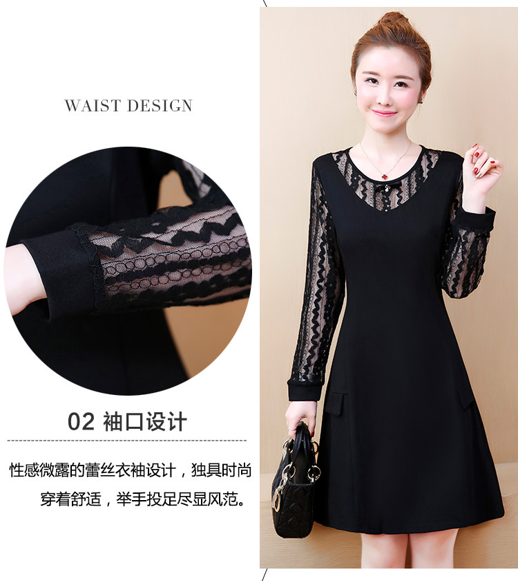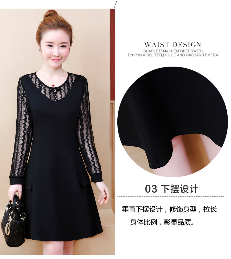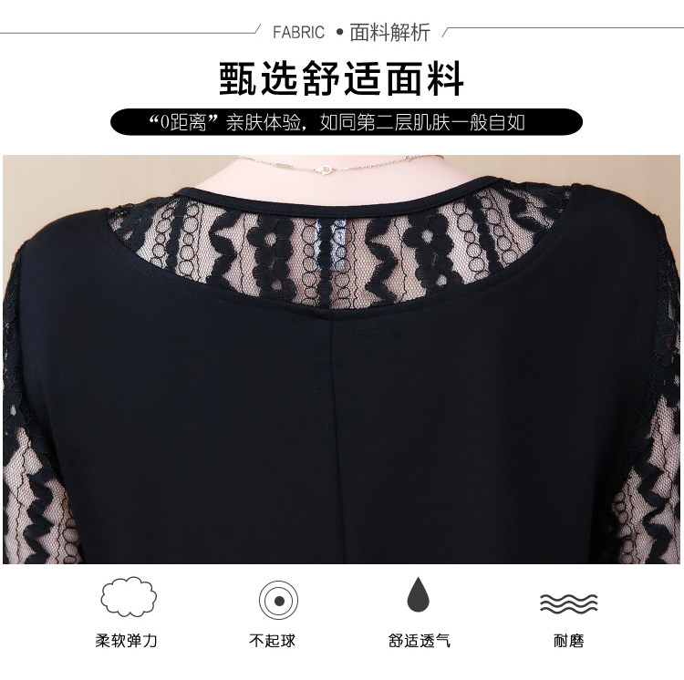 >> 實拍大碼女裝胖mm減齡連衣裙2019春裝新款遮肚子洋氣蕾絲拼接裙子