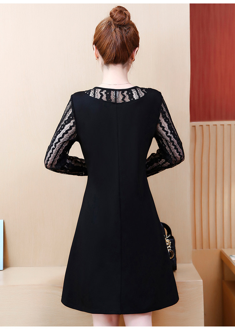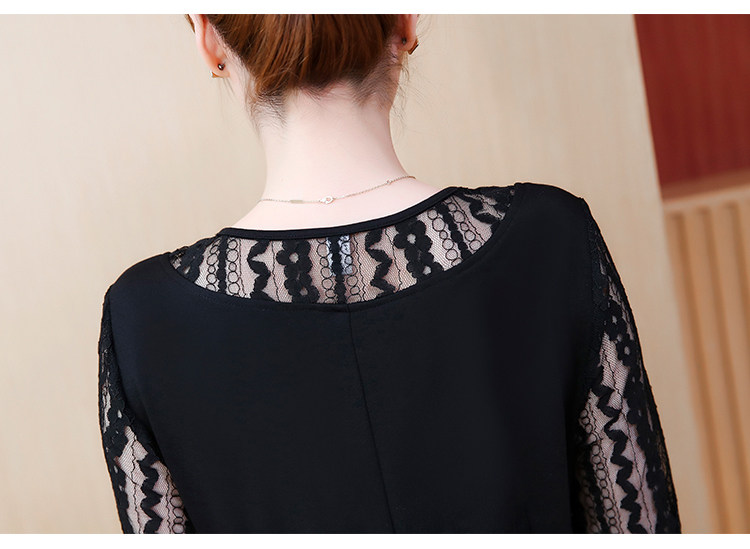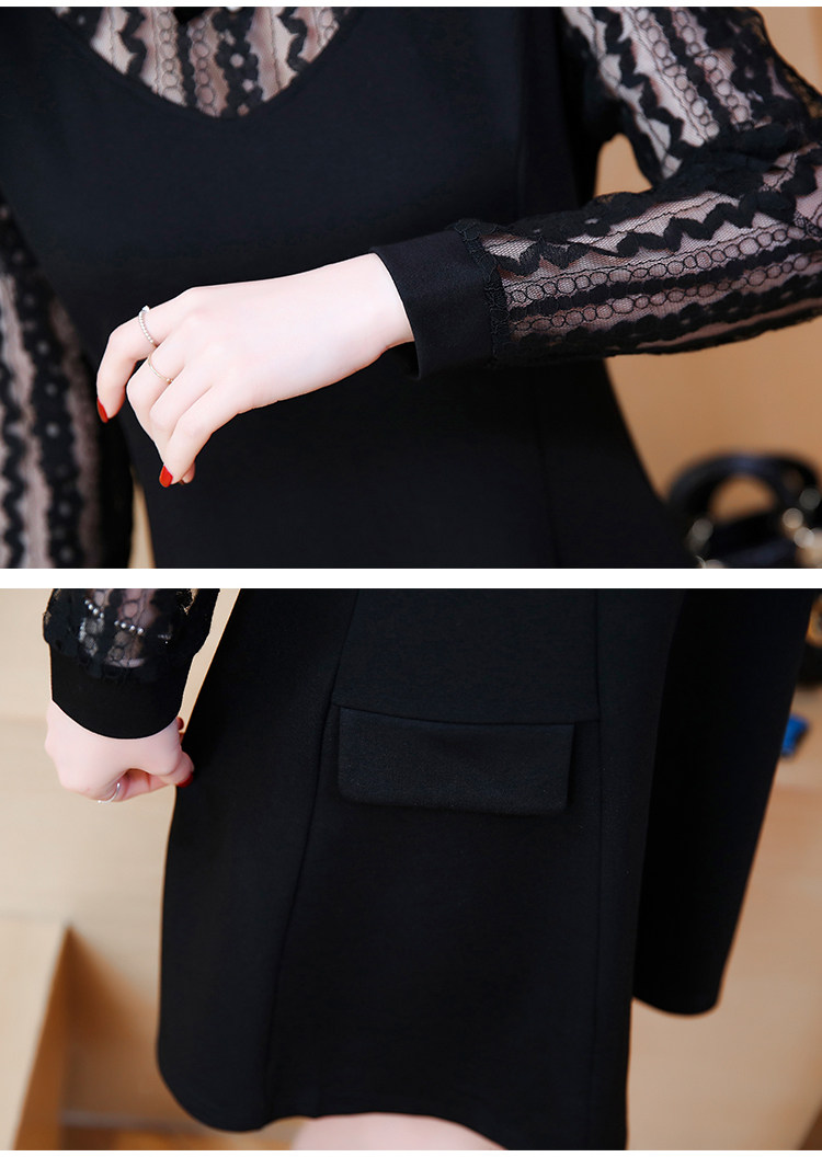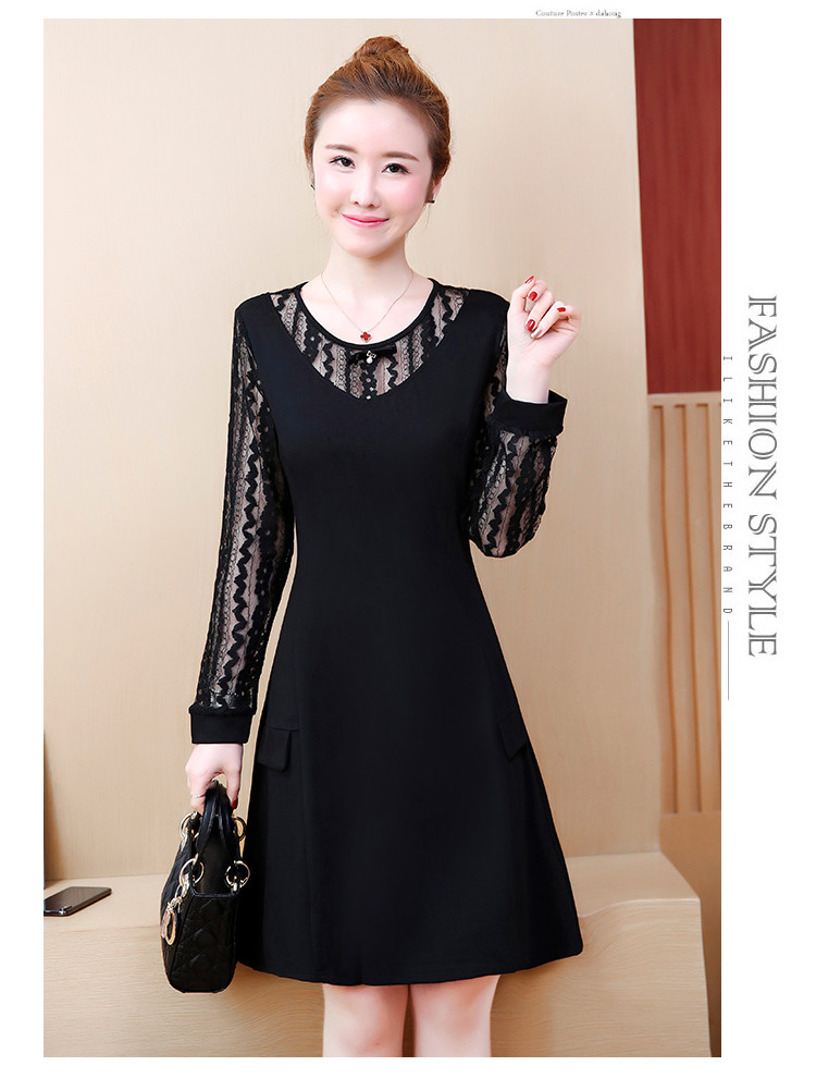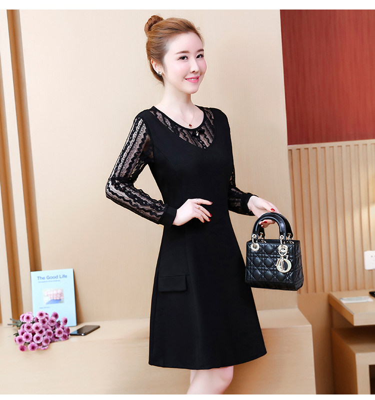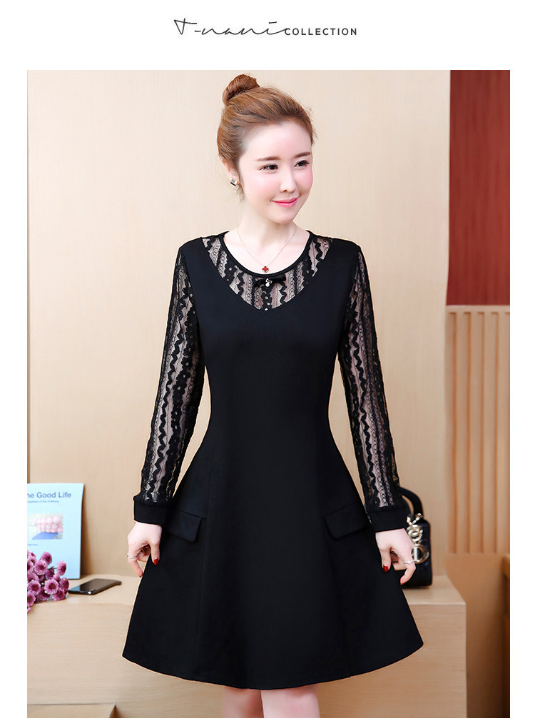 >> 實拍大碼女裝胖mm減齡連衣裙2019春裝新款遮肚子洋氣蕾絲拼接裙子
