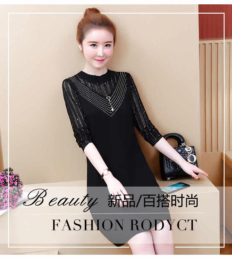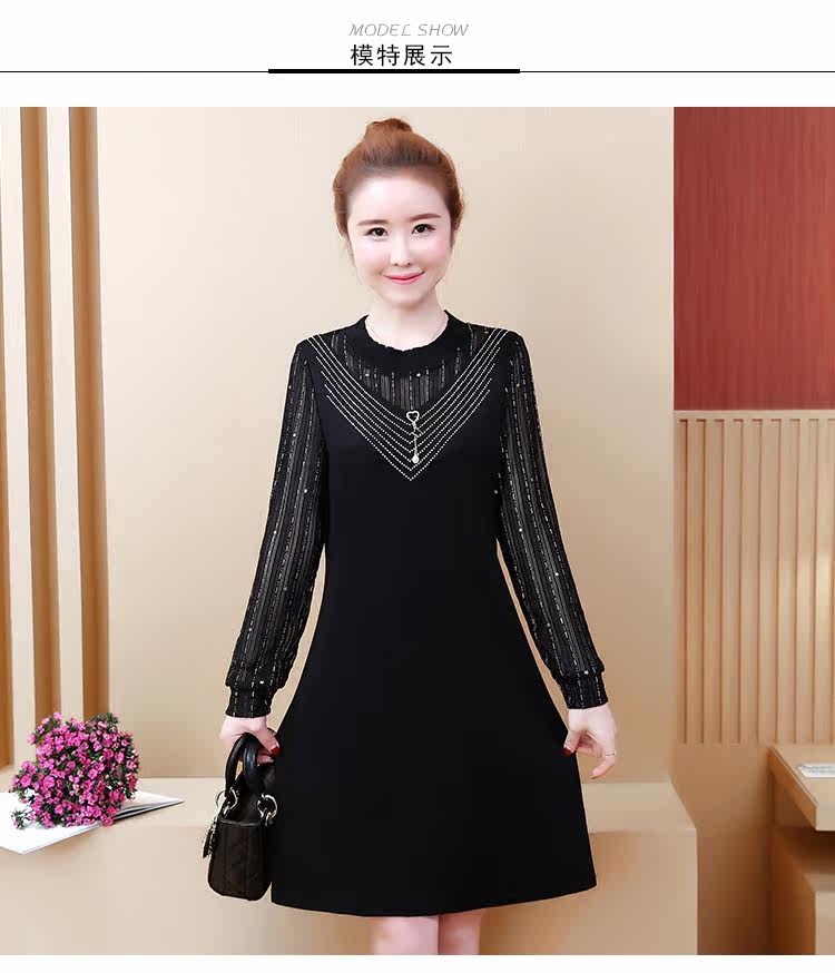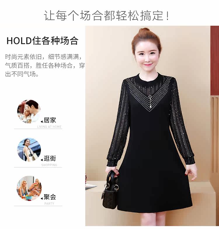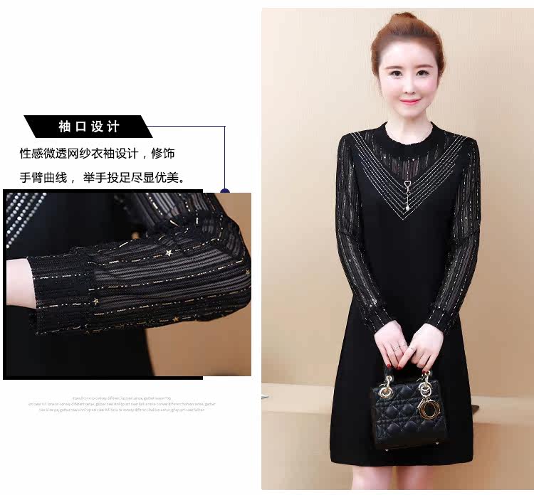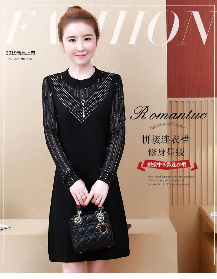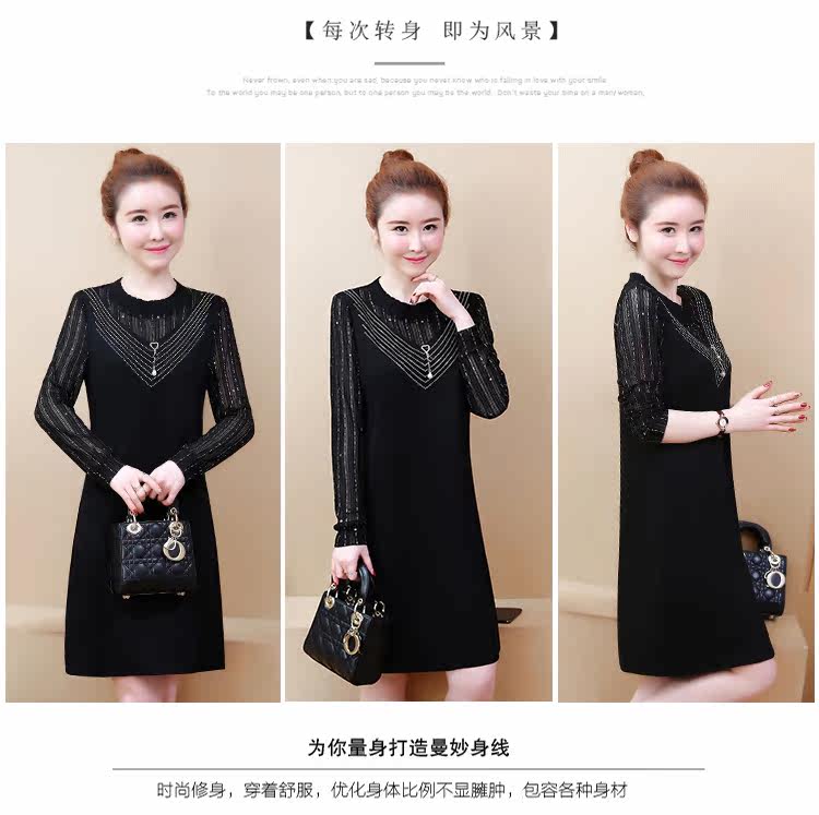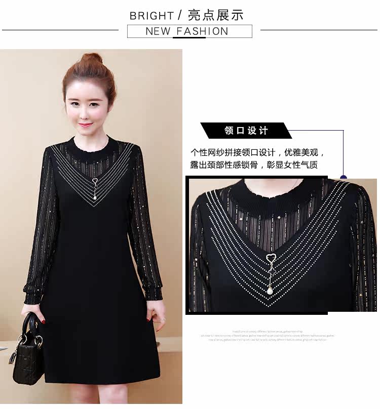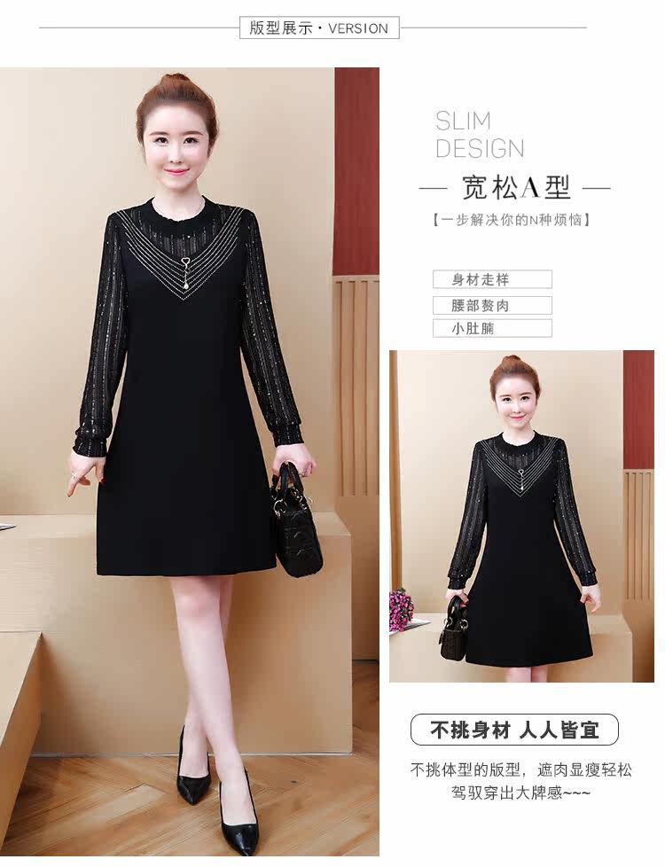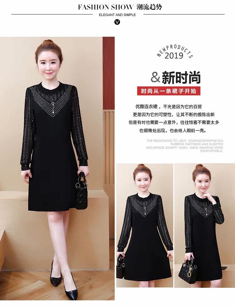 >> 2019春裝新款洋氣大碼女裝胖mm遮肚子連衣裙網紗拼接假兩件顯瘦