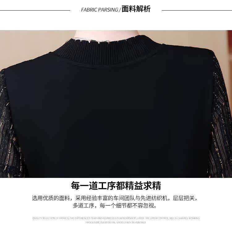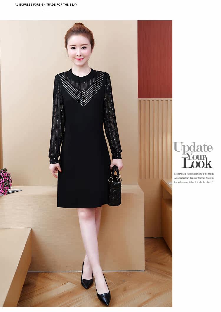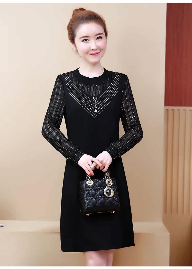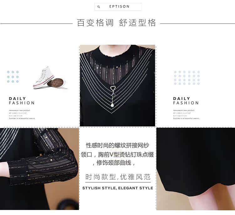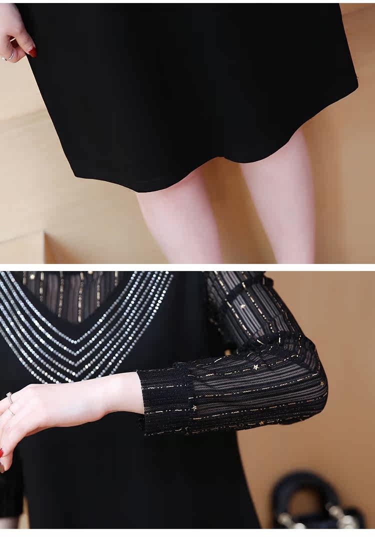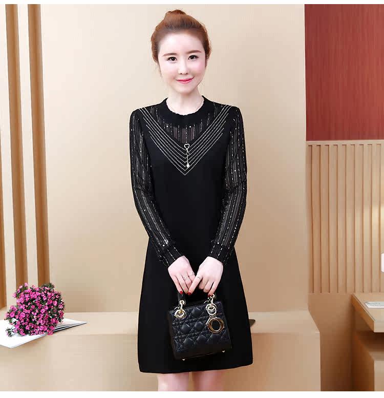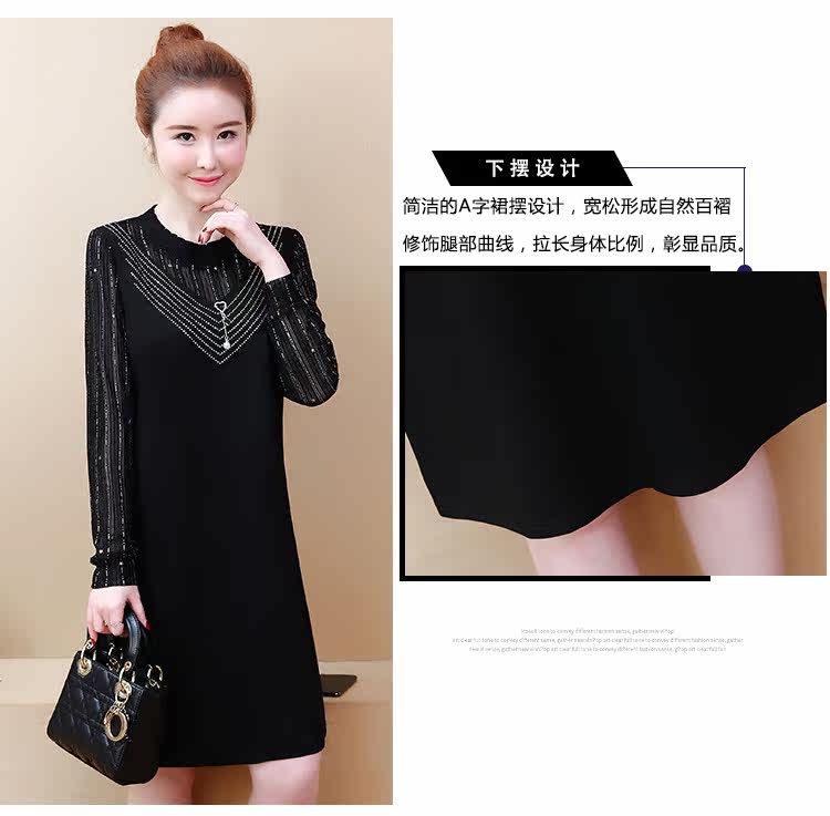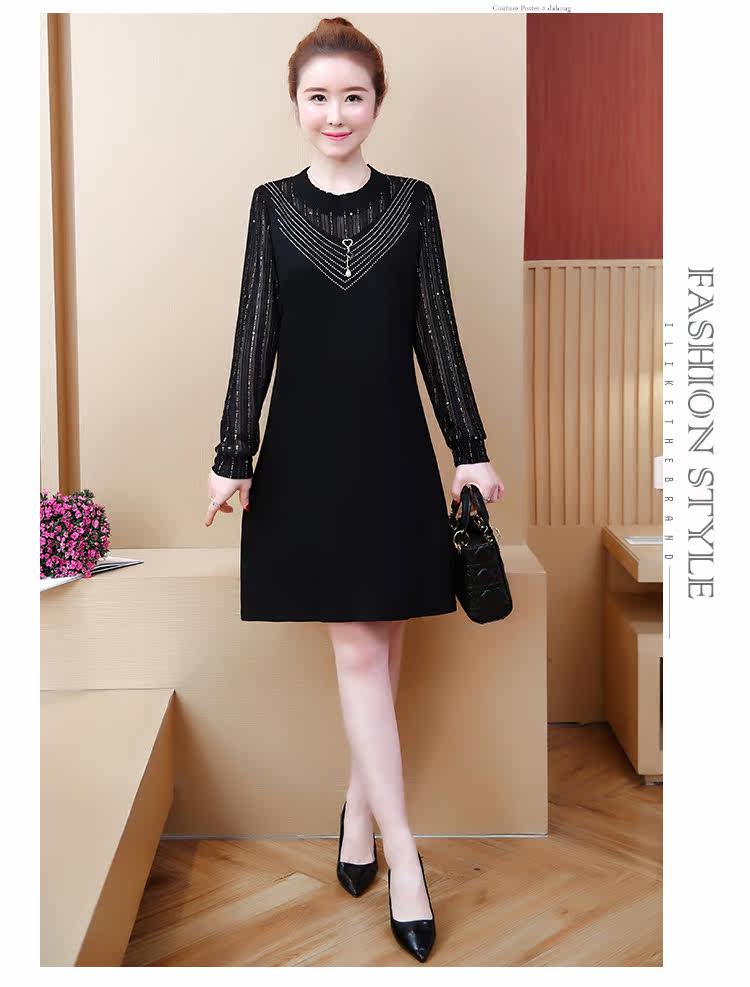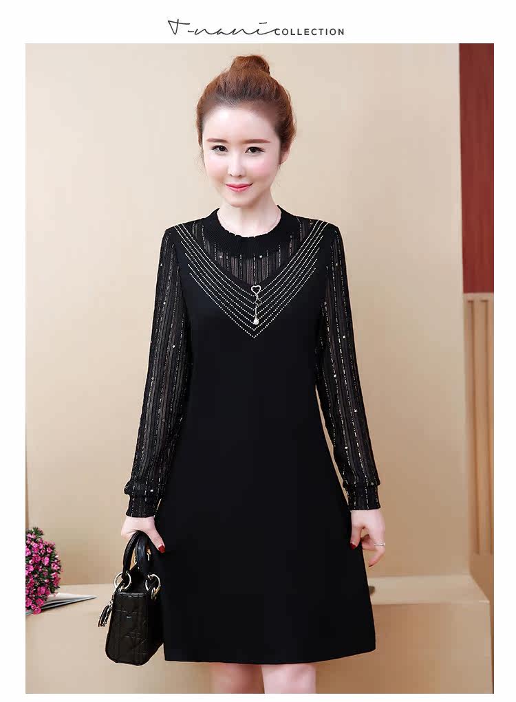 >> 2019春裝新款洋氣大碼女裝胖mm遮肚子連衣裙網紗拼接假兩件顯瘦