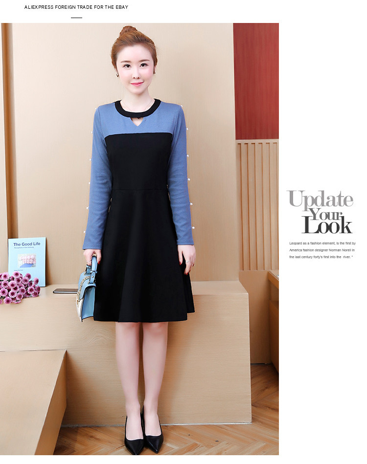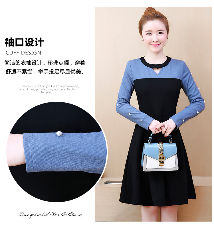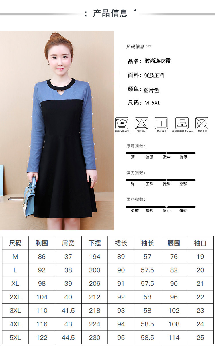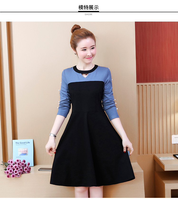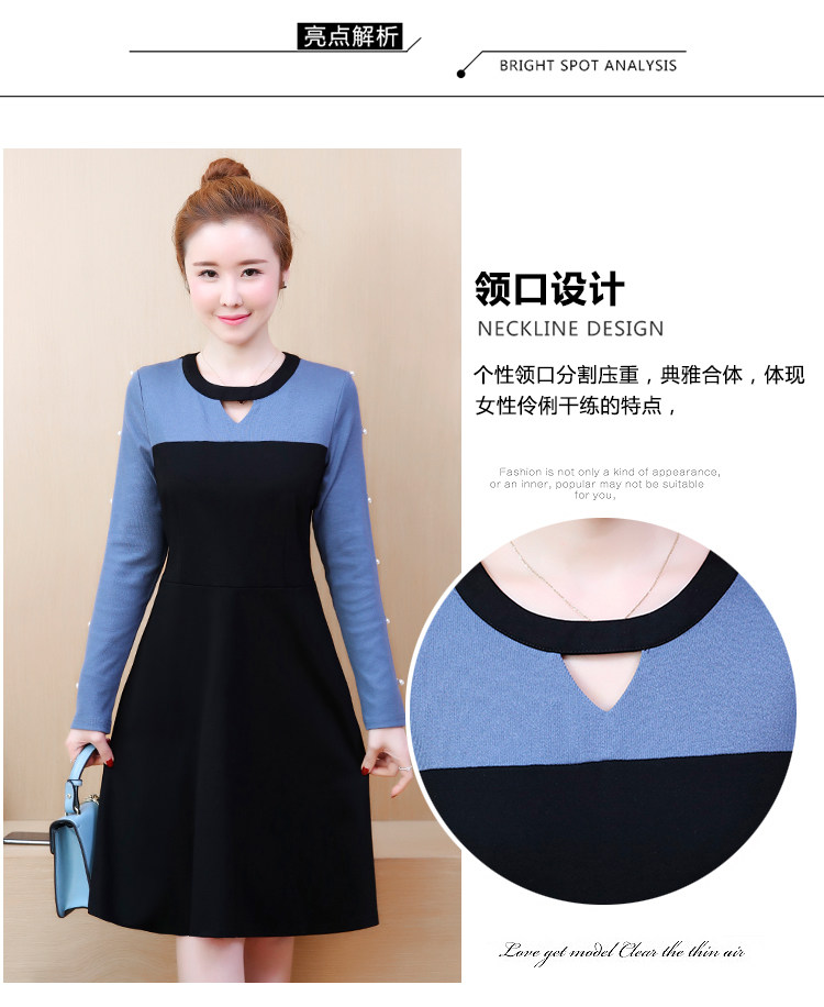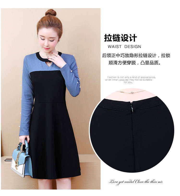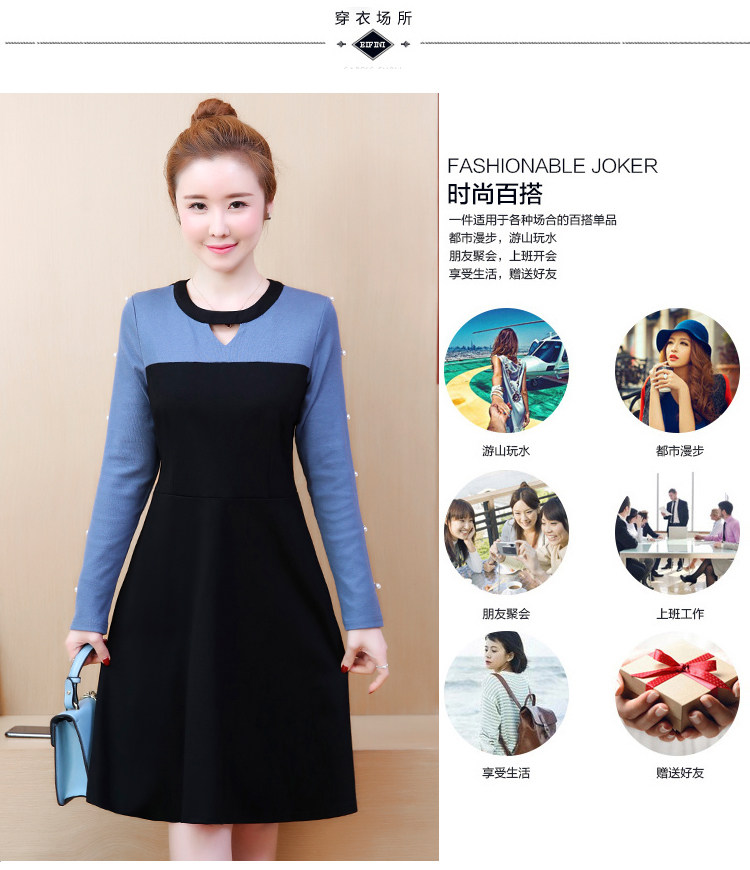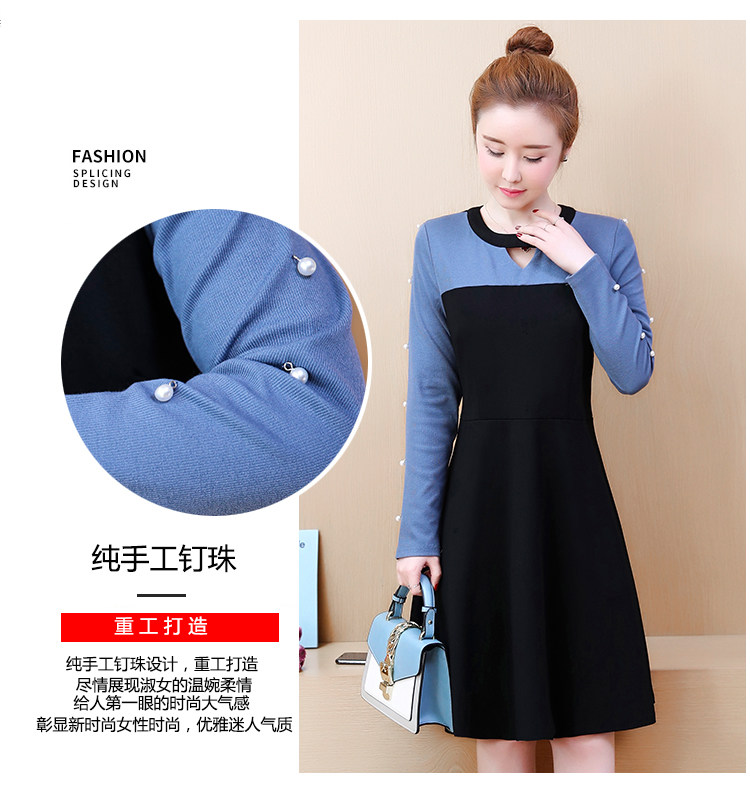 >> 實拍連衣裙長袖2019春裝新款大碼女裝休閒拼接撞色裙子A字連衣裙