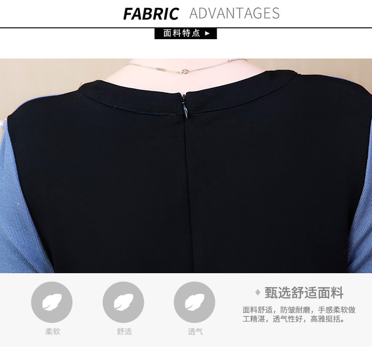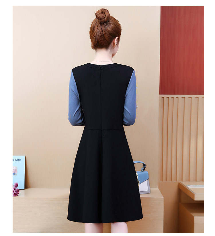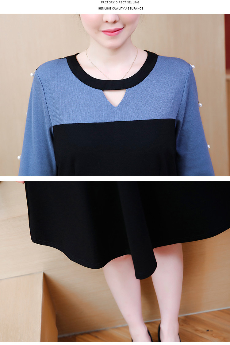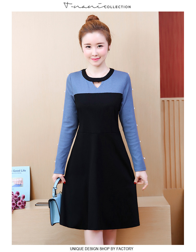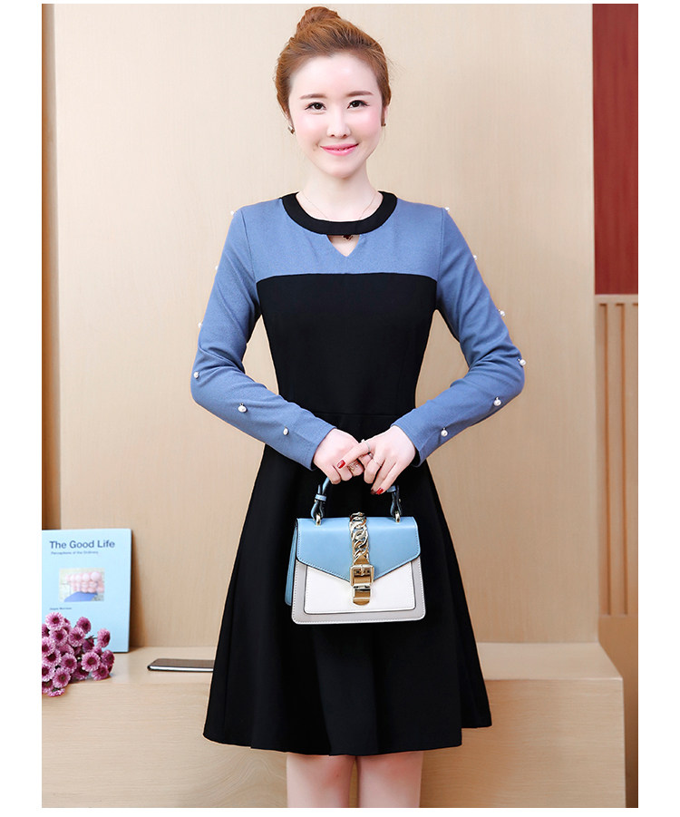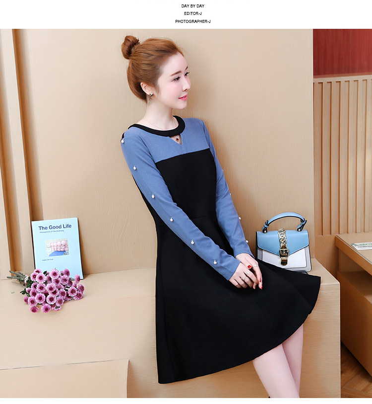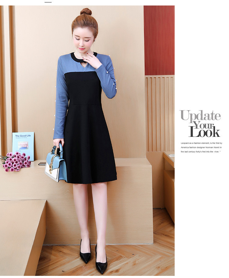 >> 實拍連衣裙長袖2019春裝新款大碼女裝休閒拼接撞色裙子A字連衣裙
