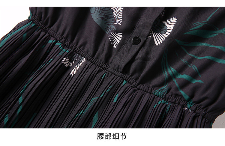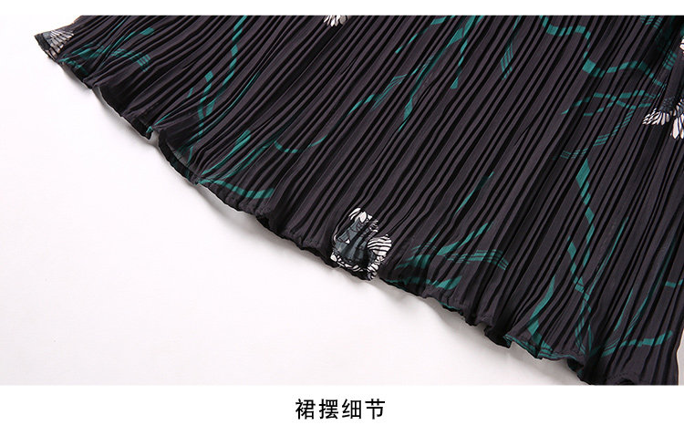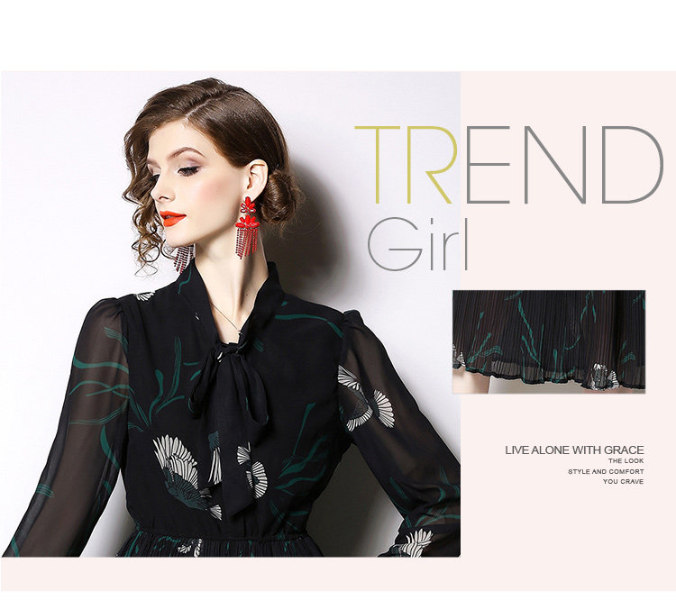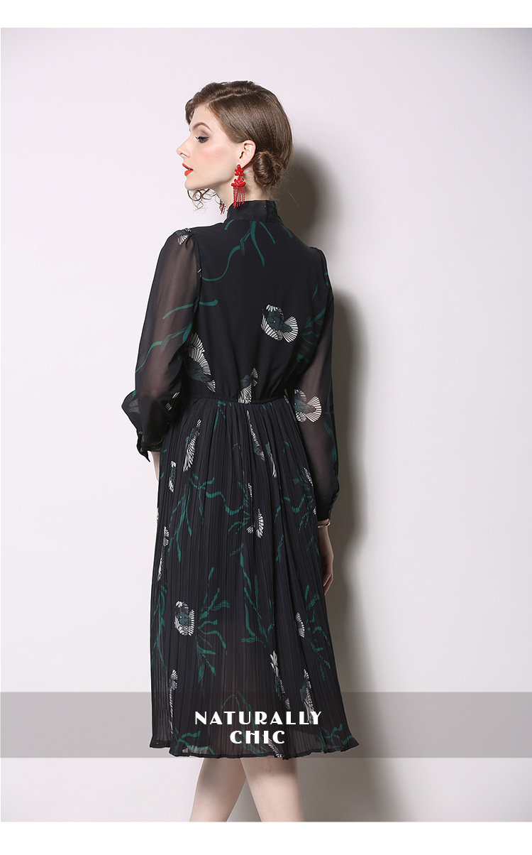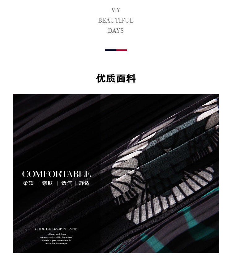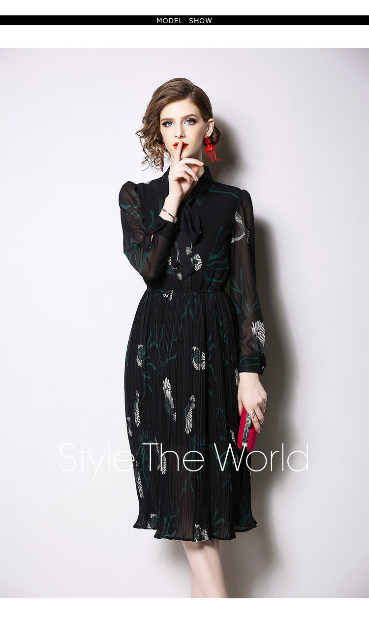 >> 歐洲站早春新款印花中長款連衣裙修身顯瘦打底裙