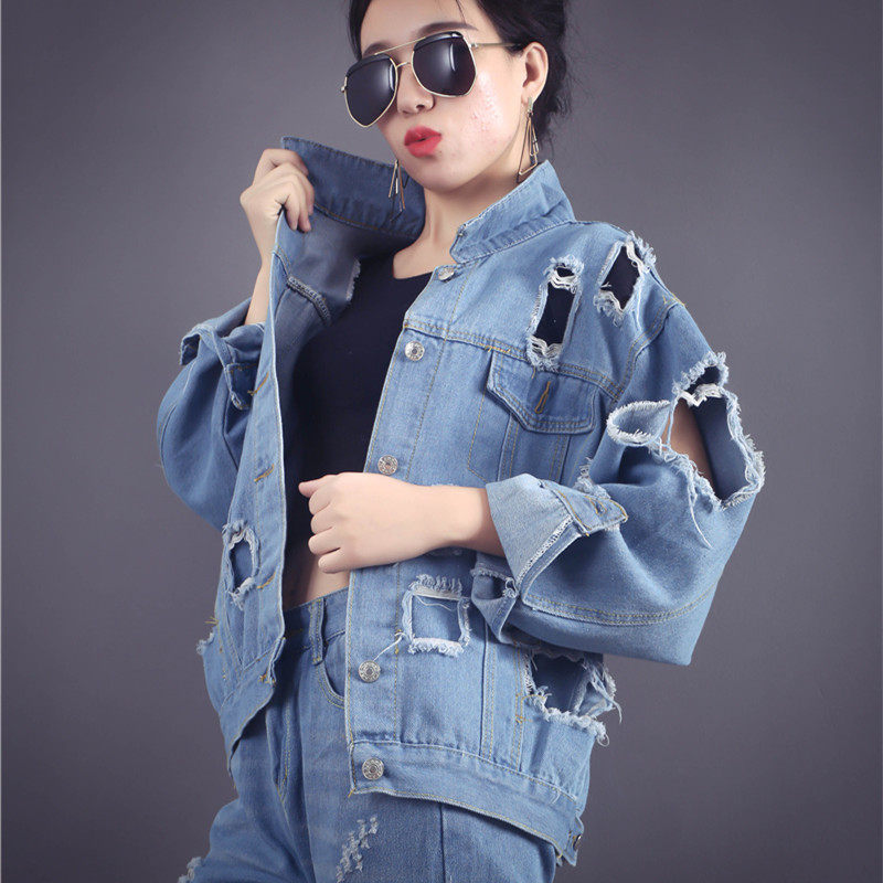 >> 2019新款牛仔外套女寬鬆韓版bf春秋休閒街頭超破洞牛仔衣潮
